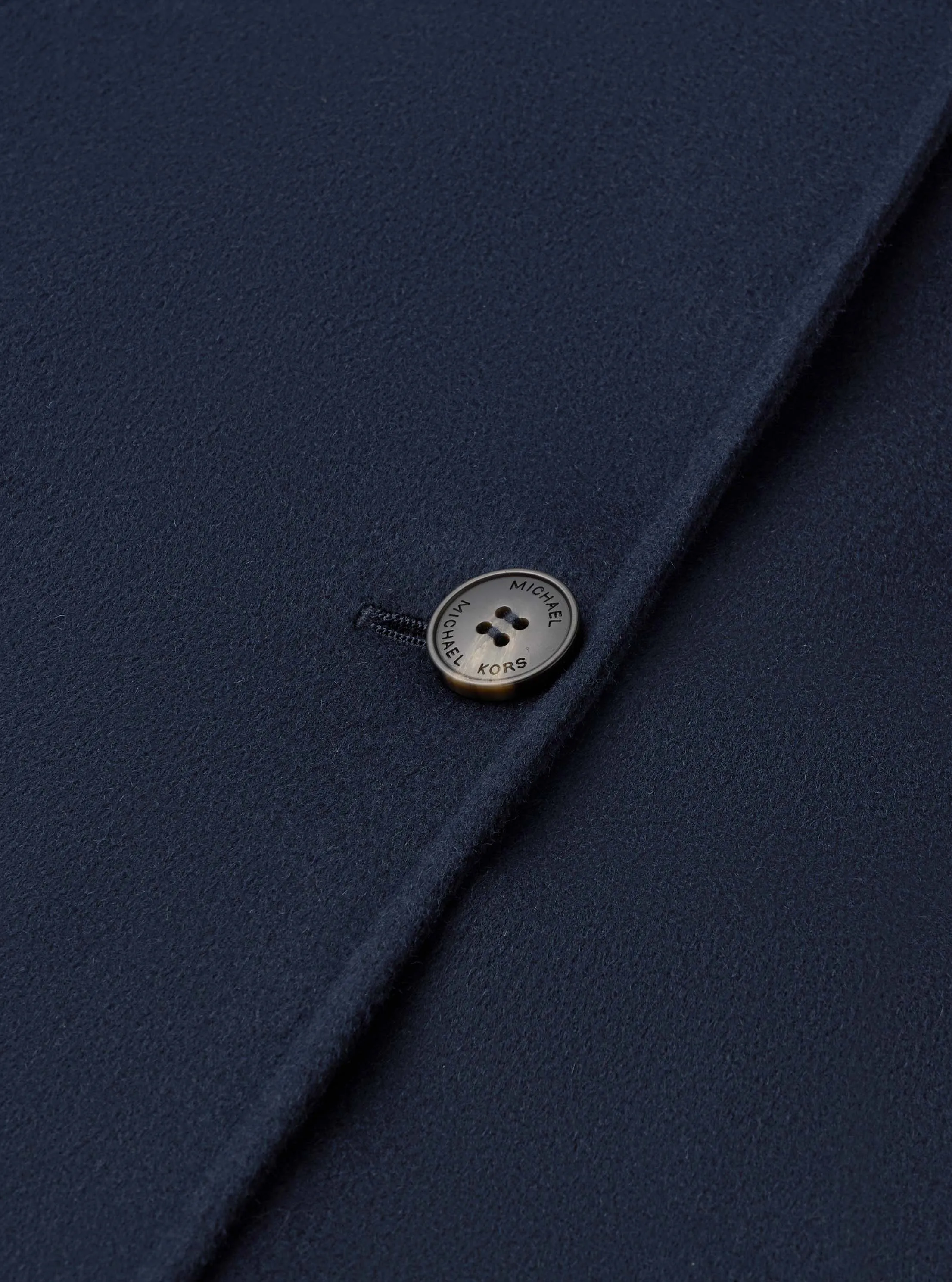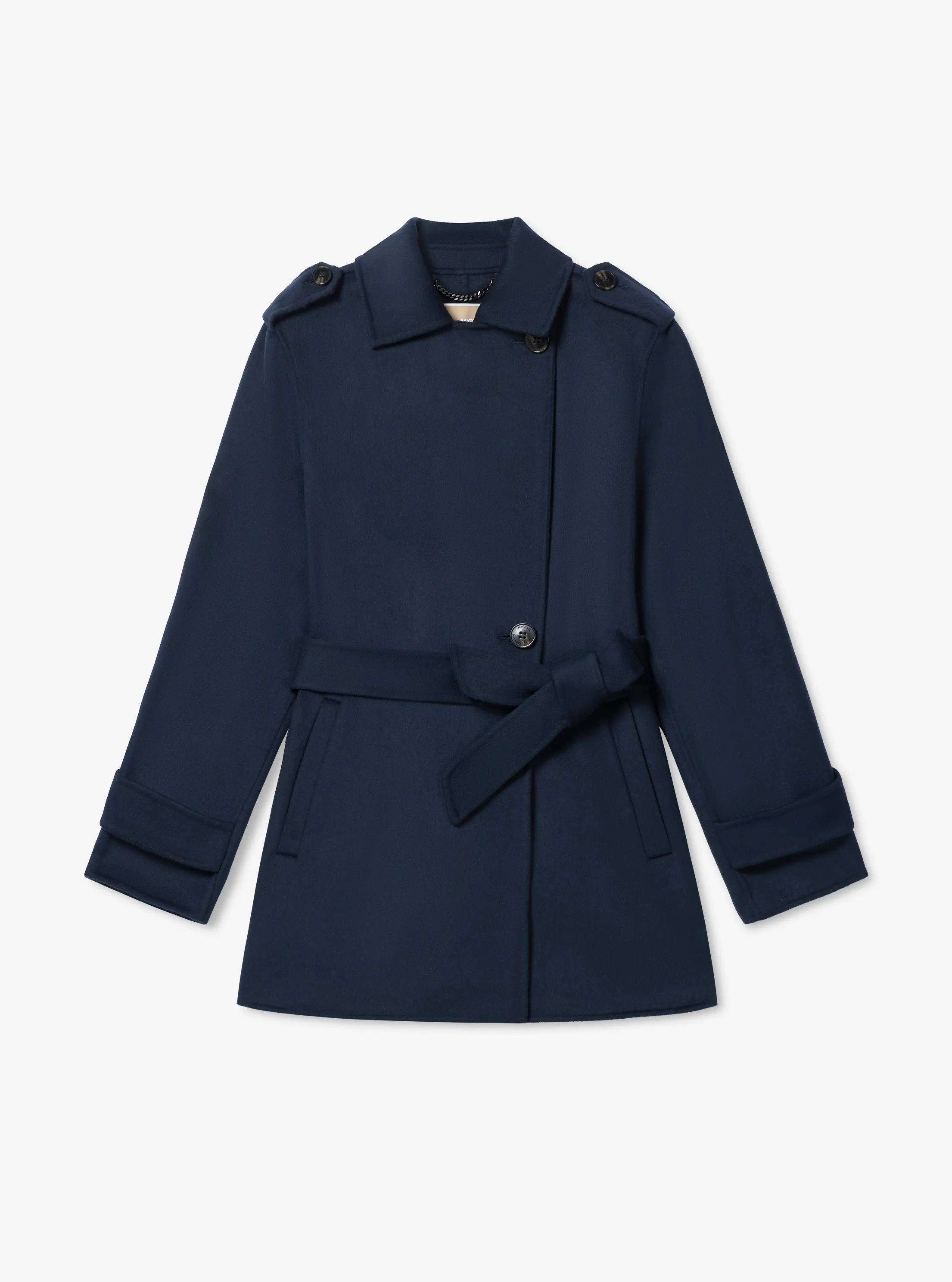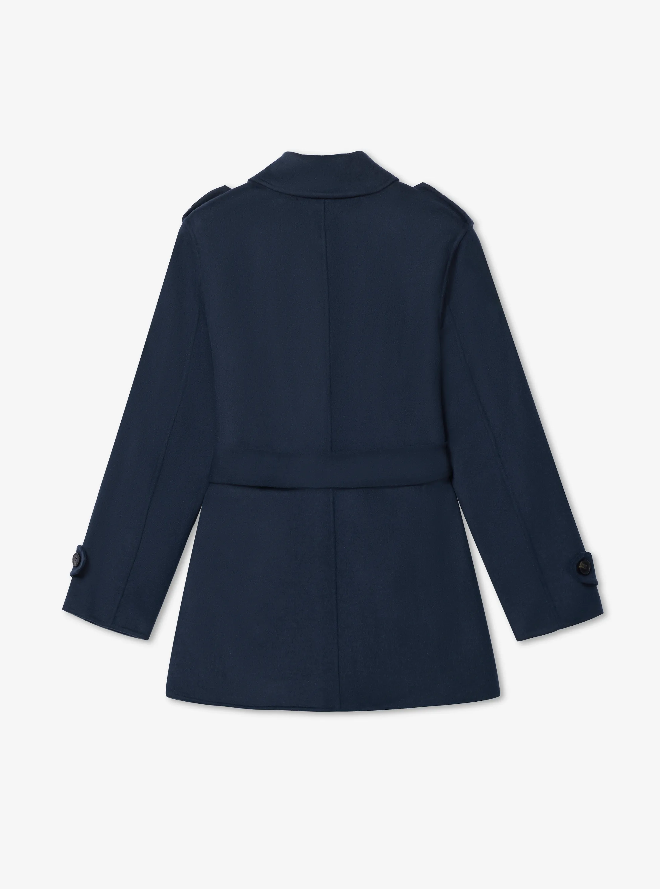 此款中短款束腰羊毛大衣,采用藏蓝色面料打造,让您的秋冬造型焕然一新。中短款设计,翻领造型,防风的同时带来温暖的穿着体验。单品配有腰带,系于腰间,勾勒您的曼妙身姿,优雅有型。衣身两侧设有插袋,增添实用性。不妨搭配本季新款高领毛衣和手袋,打造柔美通勤造型。