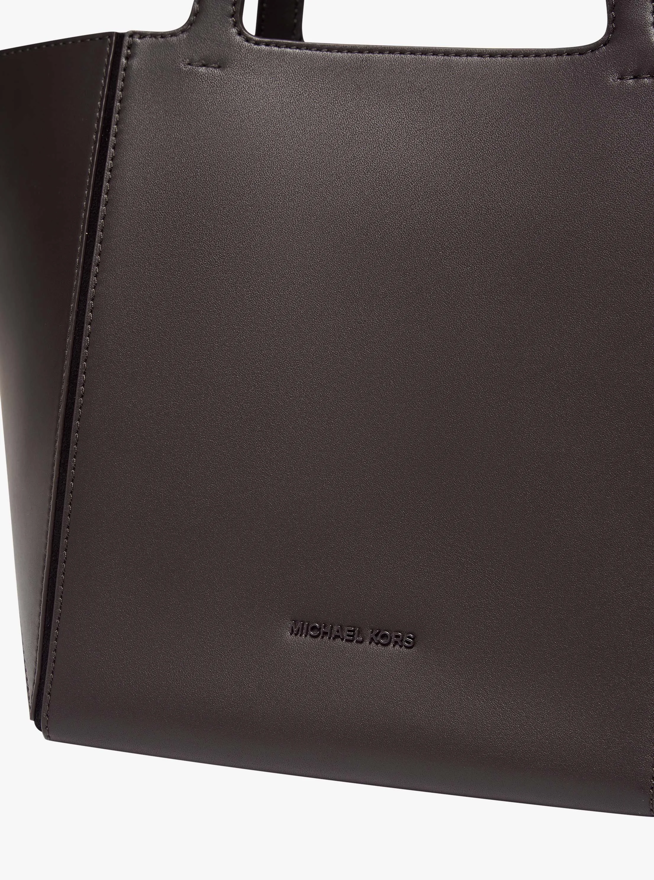 此款 Jordi 中号皮质托特包,包身采用巧克力色材质打造大方简约的外形,打破黑色沉闷的同时,而又不失深色优雅。包面上缀同色系 MICHAEL KORS Logo 装饰,细节处彰显品牌质感。设有手提柄,方便手提使用。实用的大空间设计,可以轻松收纳您的随身物品。不妨带上它,轻松通勤。