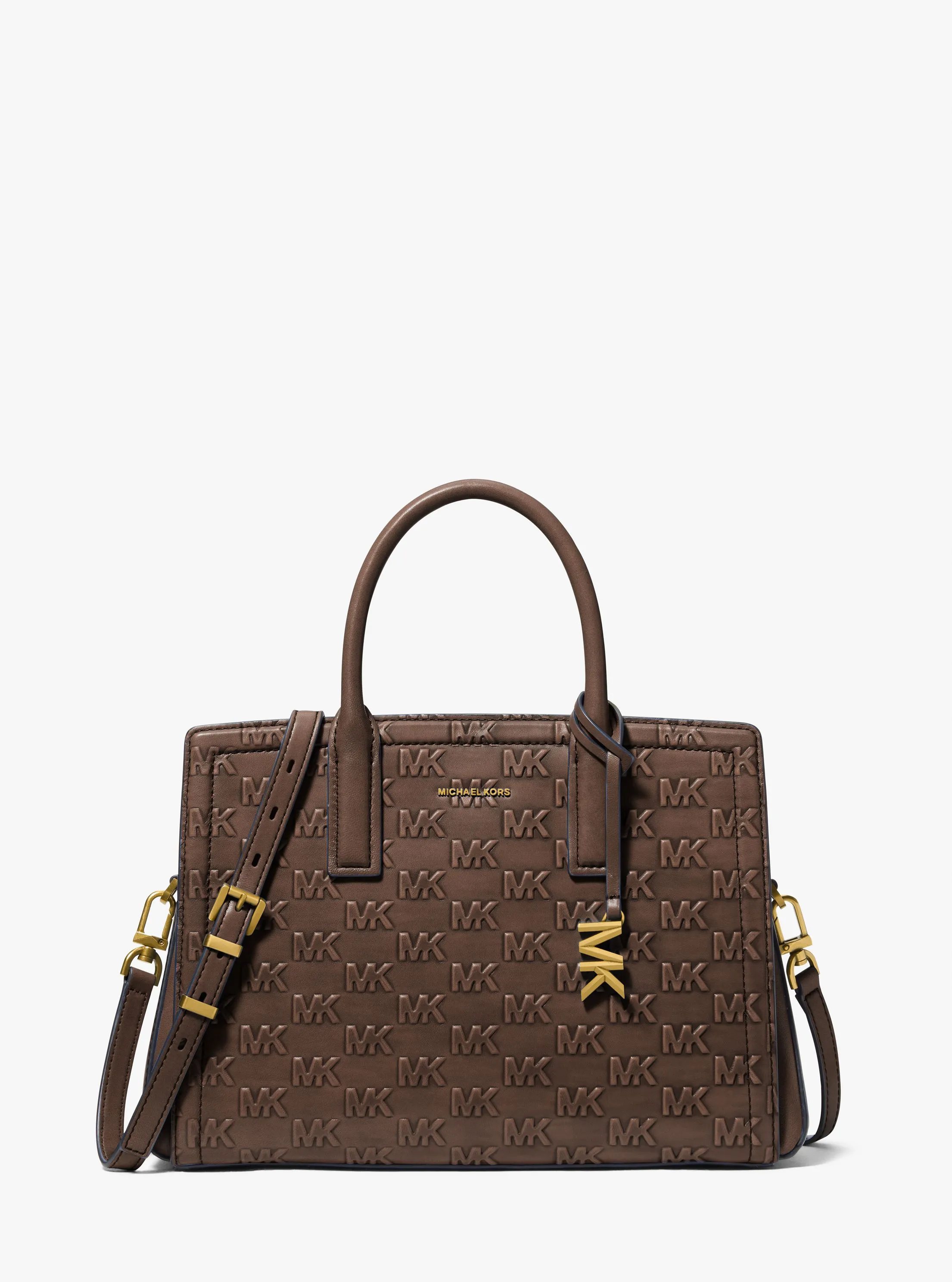 此款 Laila 中号皮质手提包,选用巧克力色材质打造简约包身,在经典包型的基础上做减法,流线型外观搭配结构感顶部手柄和可调节长肩带,增加了单品使用多样性,便于随心切换携带方式。内部空间充裕,可以轻松收纳您的随身物品。MK Logo 挂饰增添灵动质感。不妨搭配本季新款连衣裙,打造优雅通勤造型。