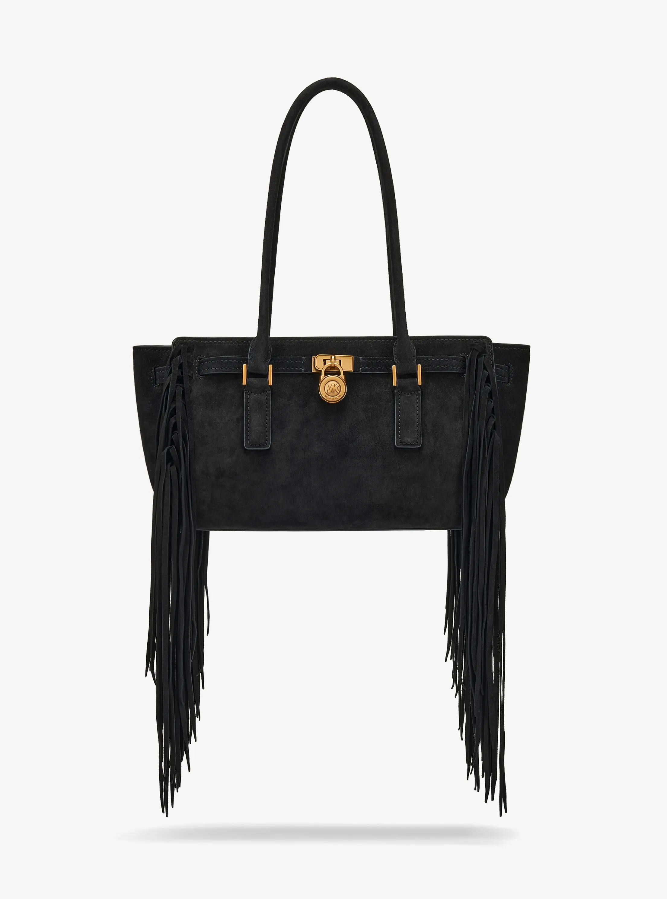 此款 Hamilton Moderne 小号单肩包,采用经典黑色材质打造而成,包型立体挺括,包面上缀同色饰带和精美品牌 Logo 金属件,两侧别出心裁地设有流苏,是您打造派对造型的亮眼之选。包袋内部空间合理,可轻松收纳您的口红、钱夹和纸巾等随身物品。设有手提柄和可调节长肩带,不妨手拎或轻轻背在肩上,随心切换携带方式,散发您的独特气质。