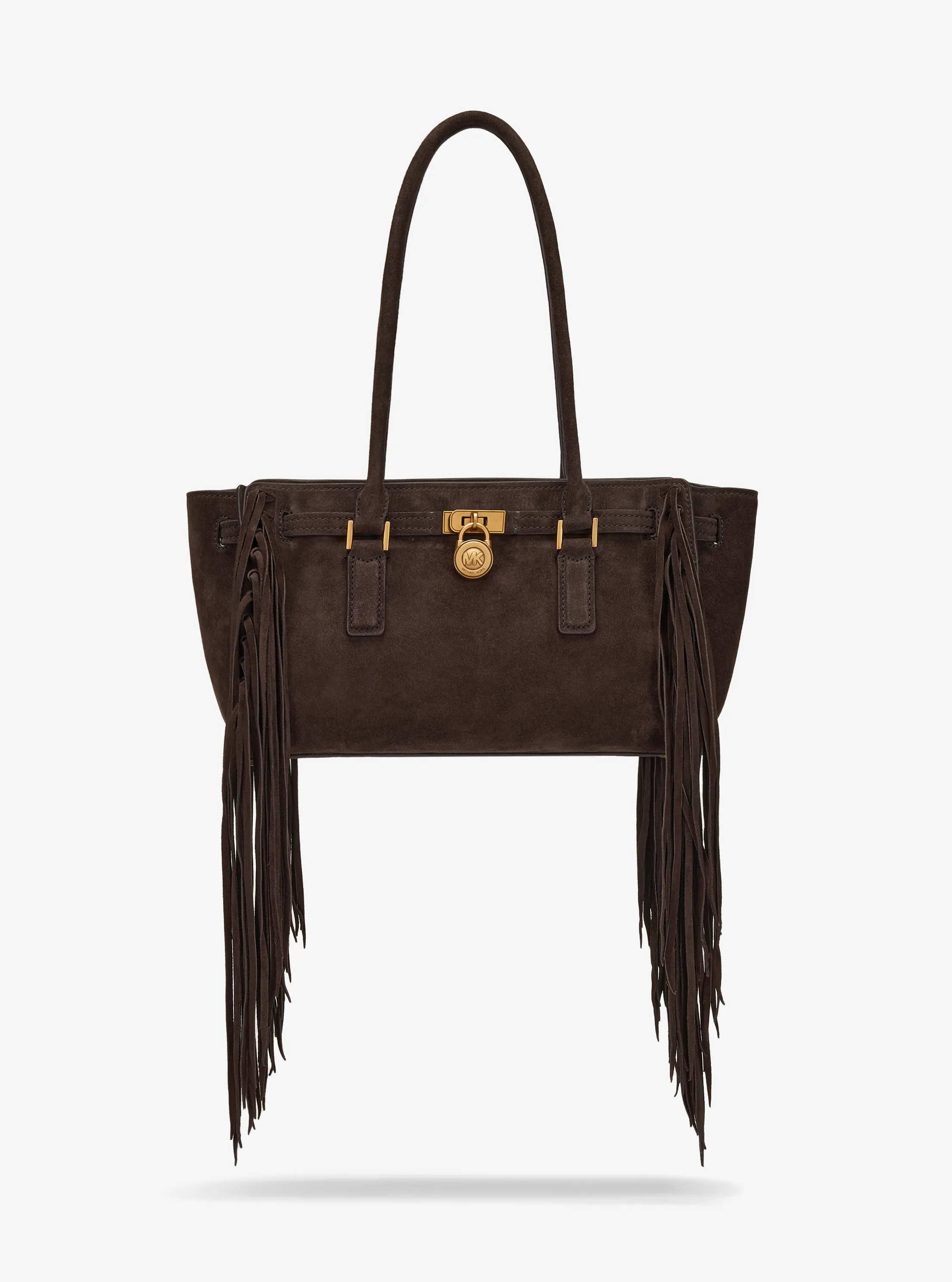 此款 Hamilton Moderne 小号单肩包,采用巧克力色材质打造而成,包型立体挺括,包面上缀同色饰带和精美品牌 Logo 金属件,两侧别出心裁地设有流苏,是您打造派对造型的亮眼之选。包袋内部空间合理,可轻松收纳您的口红、钱夹和纸巾等随身物品。设有手提柄和可调节长肩带,不妨手拎或轻轻背在肩上,随心切换携带方式,散发您的独特气质。
