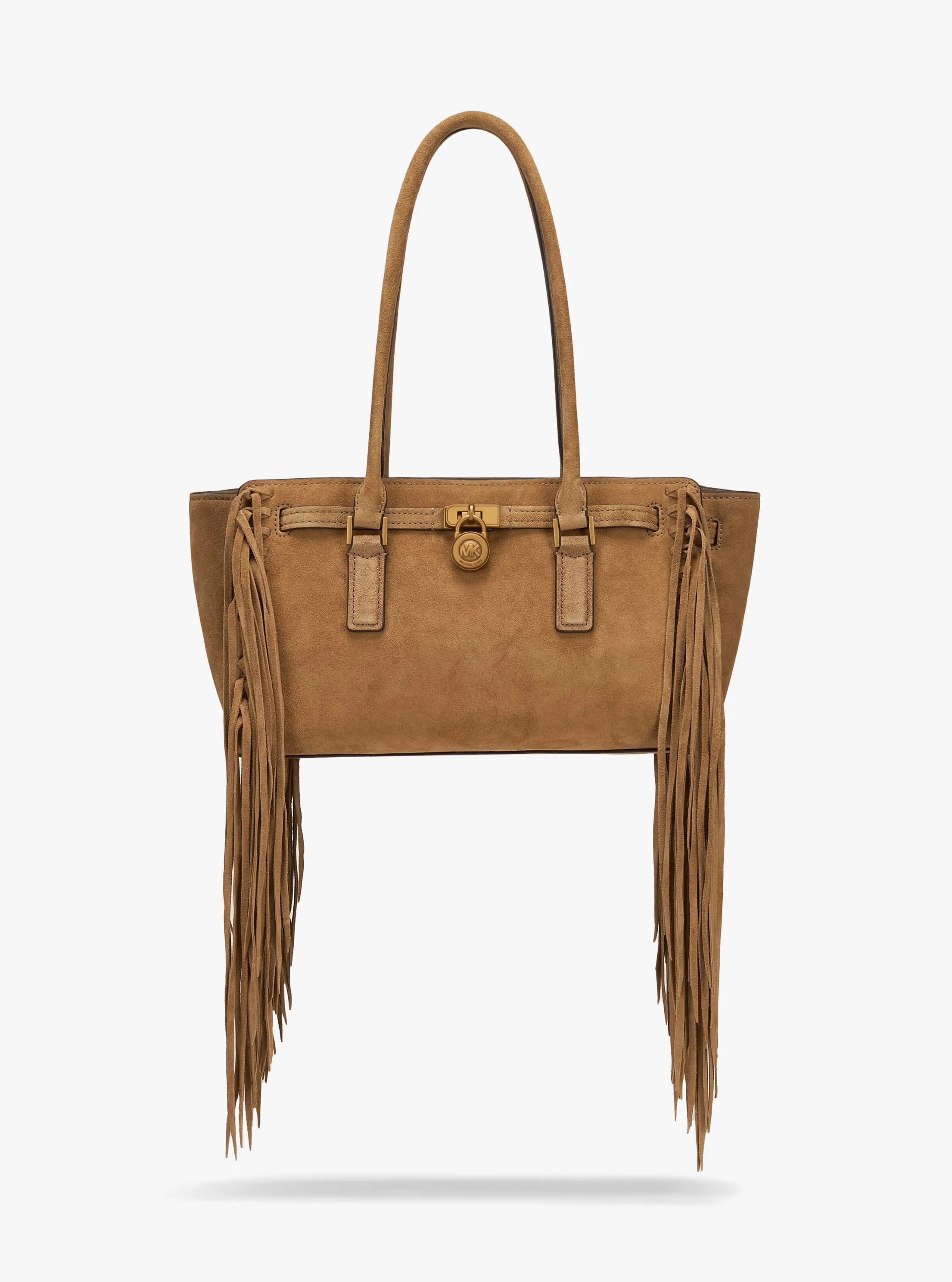 此款 Hamilton Moderne 小号单肩包,采用驼色材质打造而成,包型立体挺括,包面上缀同色饰带和精美品牌 Logo 金属件,两侧别出心裁地设有流苏,是您打造派对造型的亮眼之选。包袋内部空间合理,可轻松收纳您的口红、钱夹和纸巾等随身物品。设有手提柄和可调节长肩带,不妨手拎或轻轻背在肩上,随心切换携带方式,散发您的独特气质。