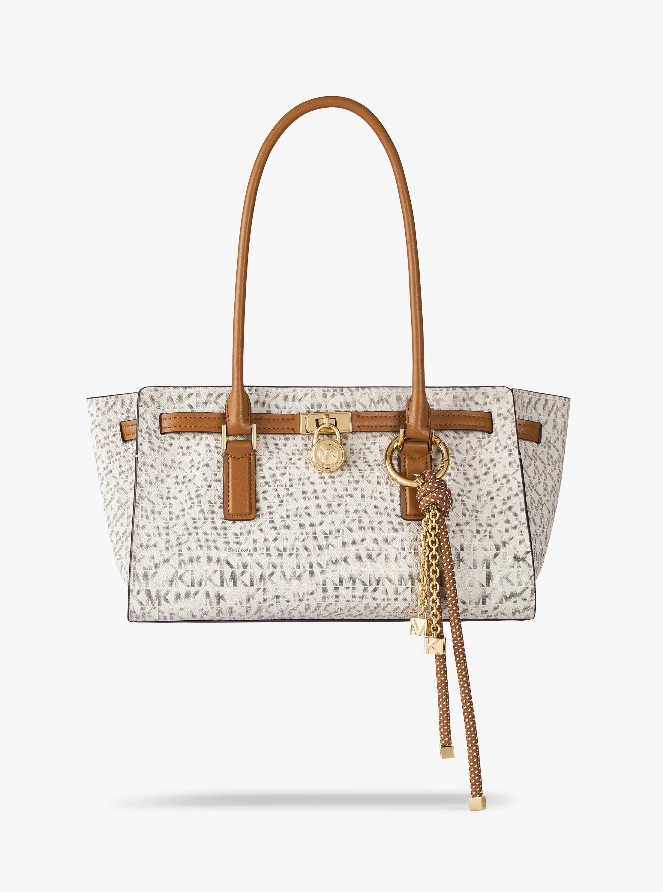 此款 Hamilton Moderne 小号老花斜挎包,采用香草白色品牌标志性 Logo 印花材质打造包身,上缀橡果棕色袢带和金属包挂点缀,柔美而不失个性气息。搭配长手提柄和可调节肩带,便于随心切换携带方式。内部空间充裕,可以轻松容纳您的随身物品。不妨搭配本季新款连衣裙,打造优雅通勤造型。