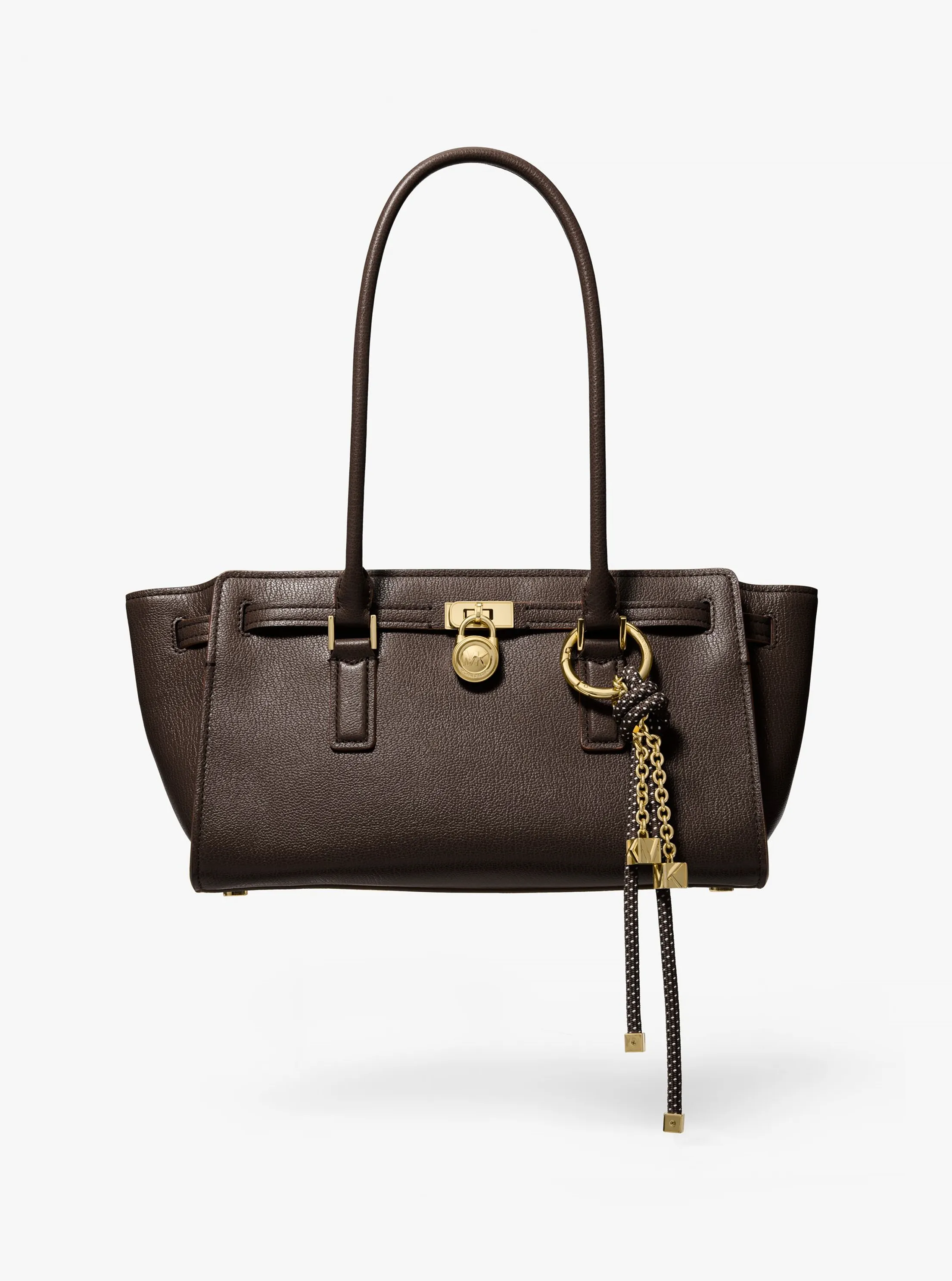 此款 Hamilton Moderne 小号斜挎包,采用巧克力色材质打造包身,上缀橡果棕色袢带和金属包挂点缀,柔美而不失个性气息。搭配长手提柄和可调节肩带,便于随心切换携带方式。内部空间充裕,可以轻松容纳您的随身物品。不妨搭配本季新款连衣裙,打造优雅通勤造型。