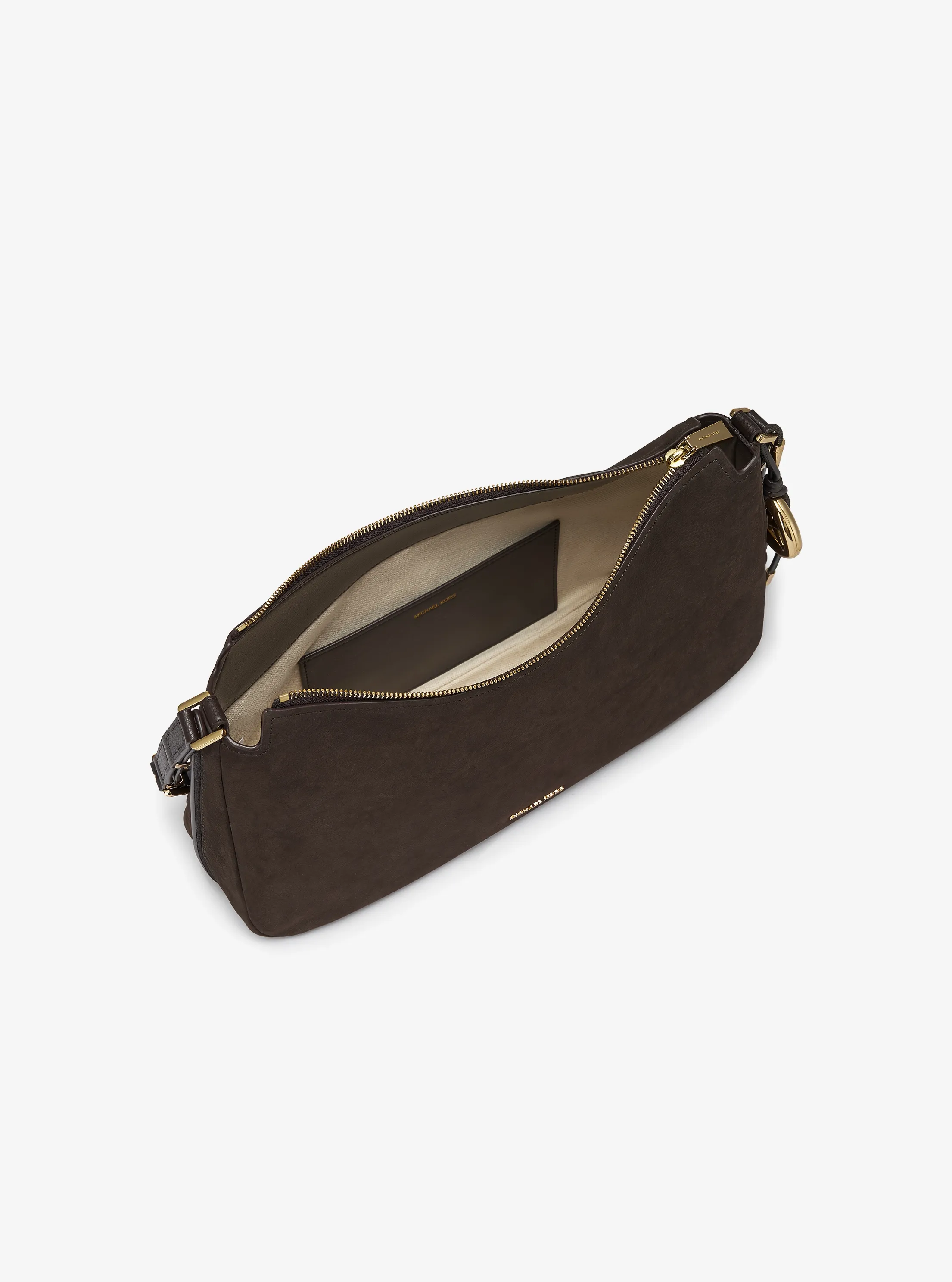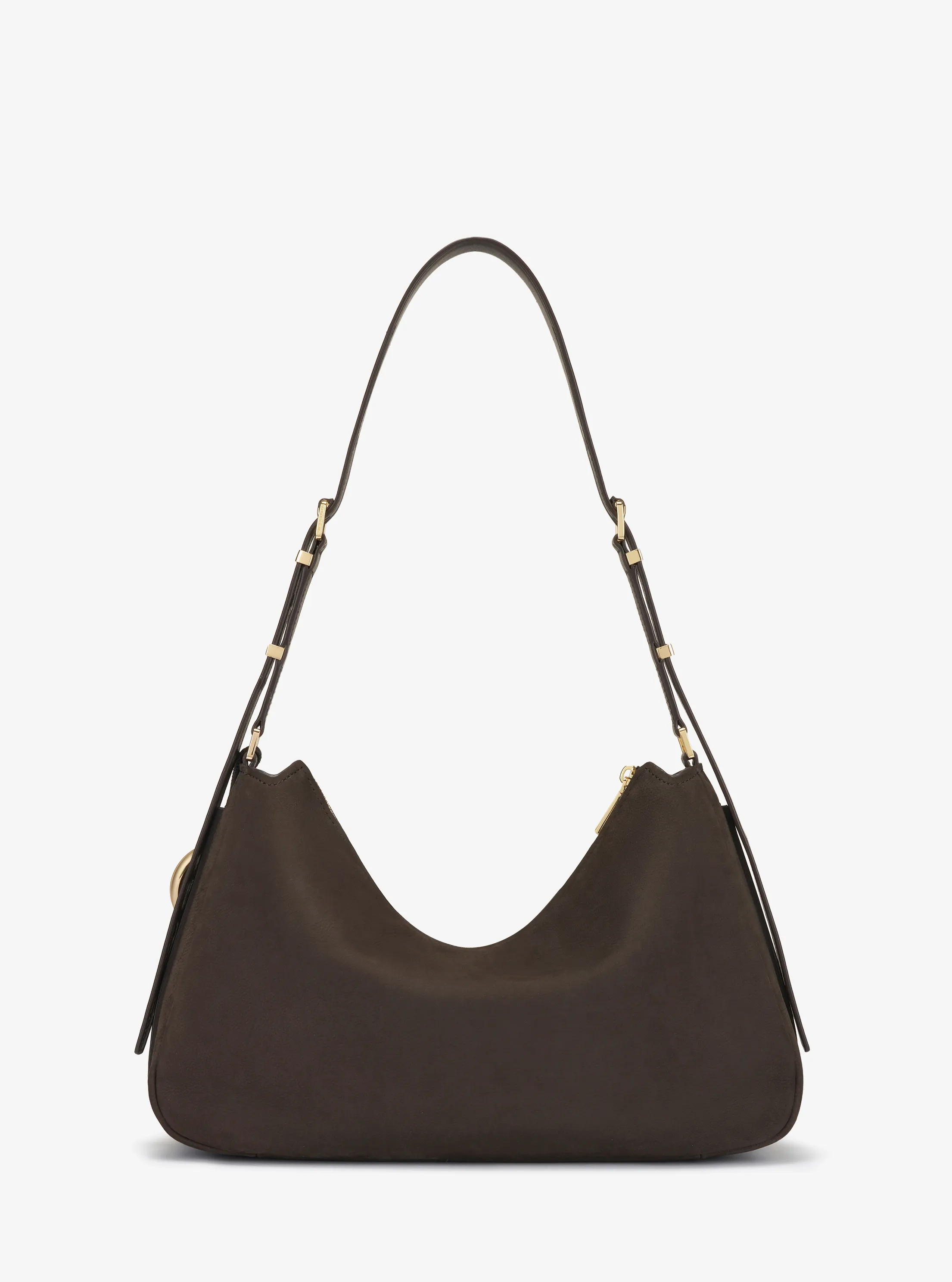 此款 Nolita 中号单肩包,采用经典巧克力色材质打造时下流行的慵懒随性造型,复古而不失潮流感,拉链开合,集便利与实用为一体。包身上缀低调 MICHAEL KORS Logo 金属件,设有圆形 MK 挂饰,细节处彰显品牌质感。不妨搭配本季新款连衣裙,打造优雅通勤造型。