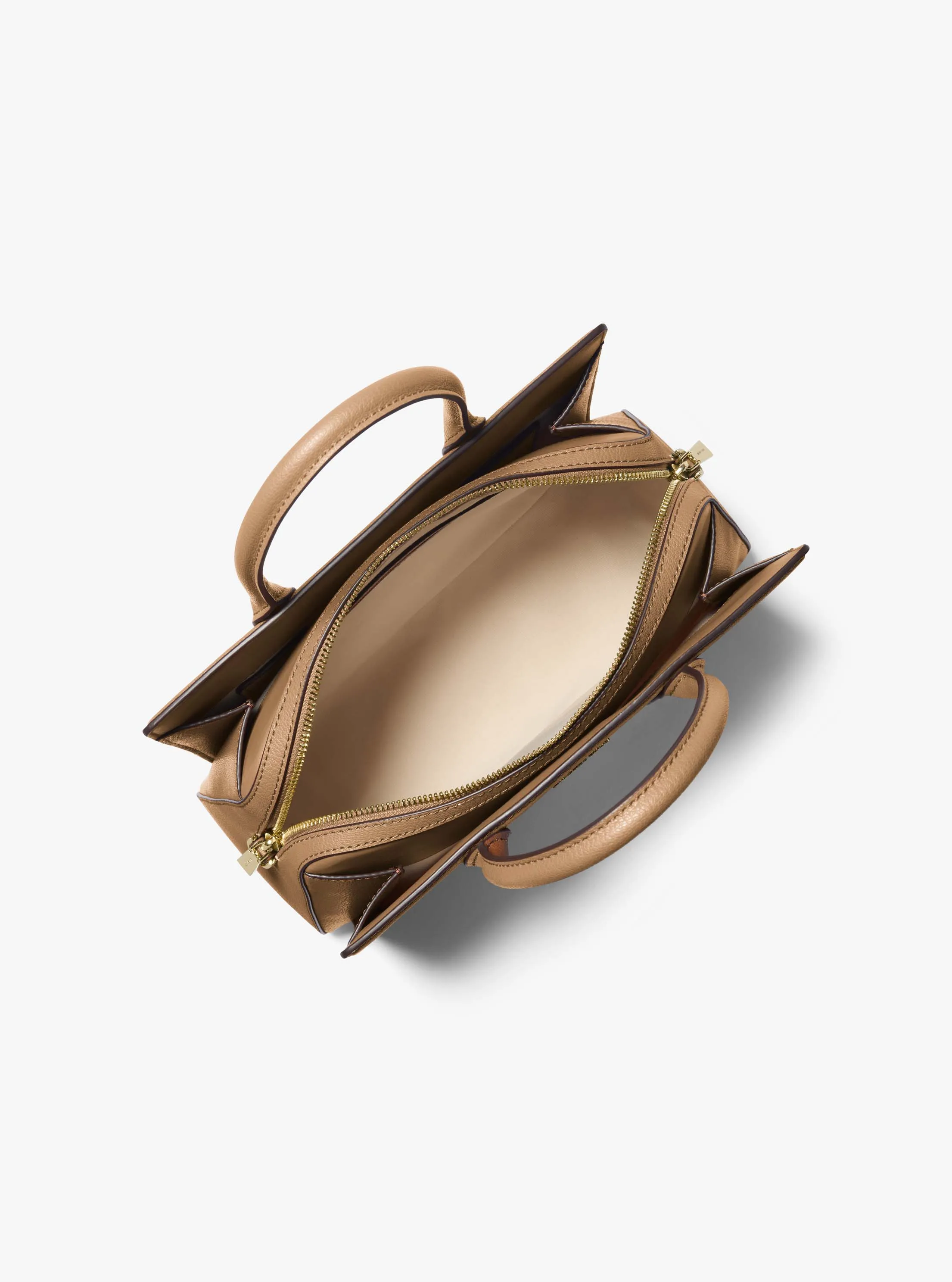 此款 Laila 中号手提包,选用驼色材质打造简约包身,在经典包型的基础上做减法,流线型外观搭配结构感顶部手柄和可调节长肩带,增加了单品使用多样性,便于随心切换携带方式。内部空间充裕,可以轻松收纳您的随身物品。MK Logo 挂饰增添灵动质感。不妨搭配本季新款连衣裙,打造优雅通勤造型。
