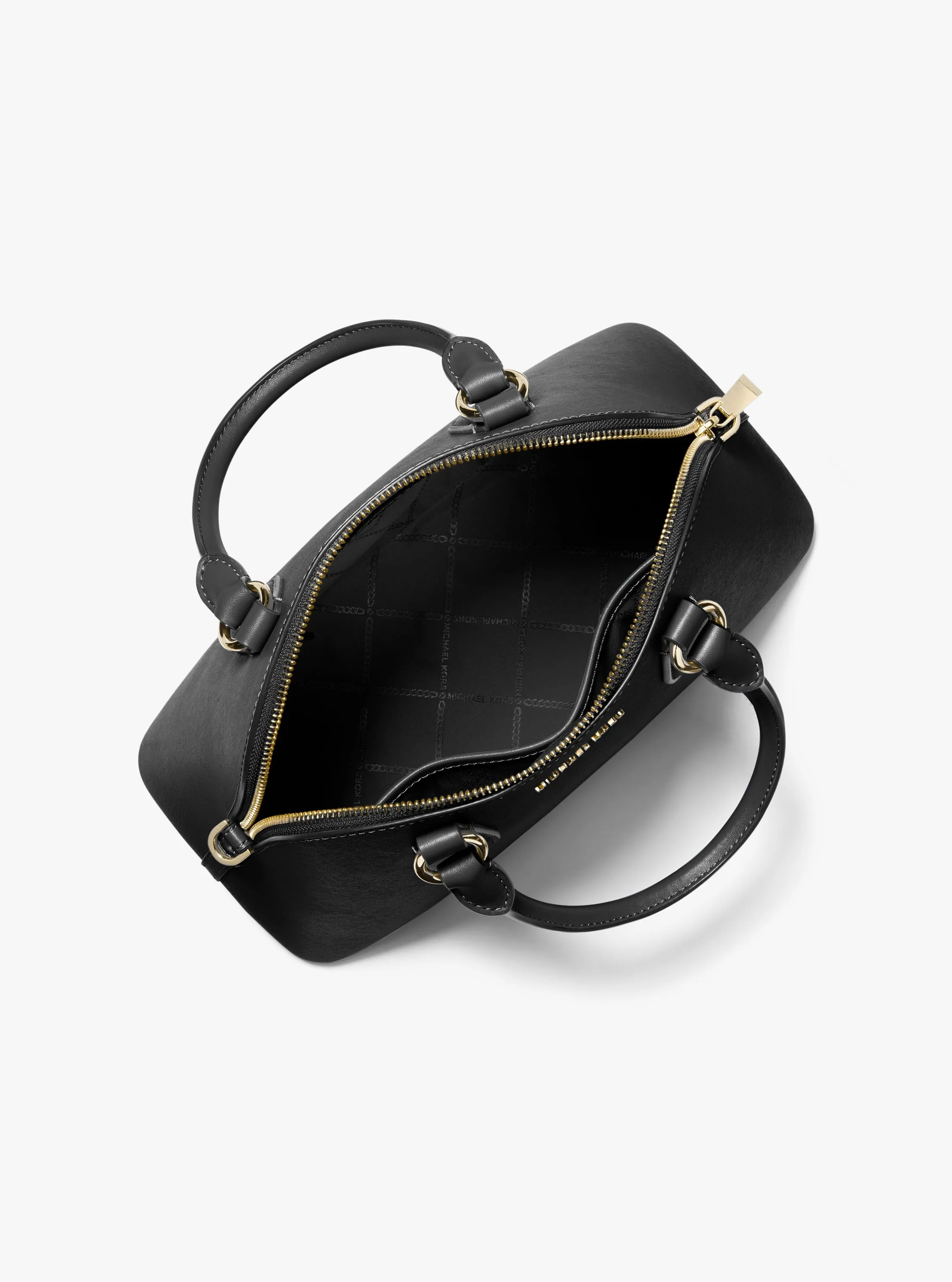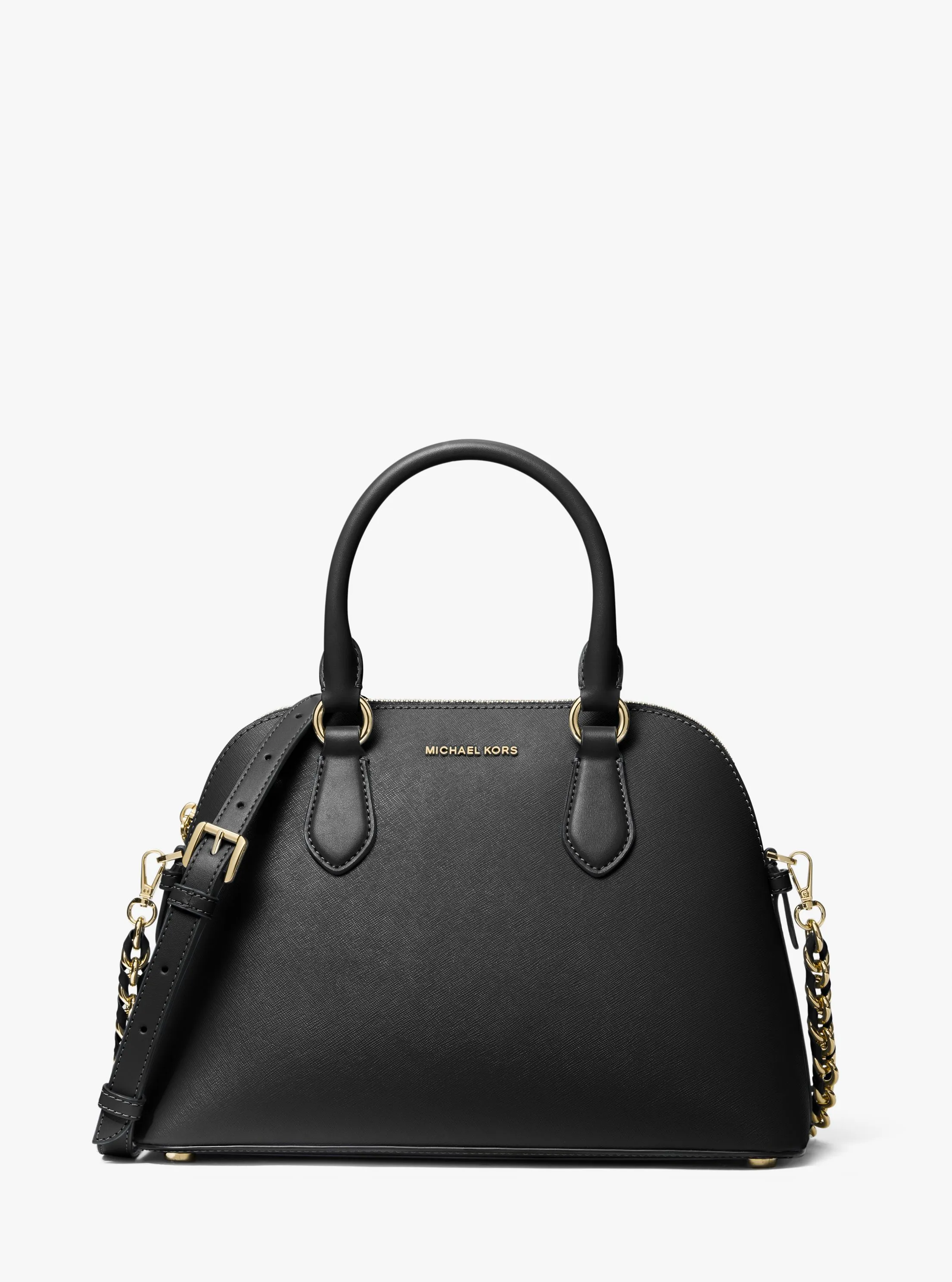 此款 Veronica 中号手提包,大气简约,采用经典黑色材质打造贝壳造型包身,将优雅与高贵收入囊中,第一眼便让人心生好感。设有同色手提柄和可调节肩带,拉链开合,可以轻松装下您的手机、钥匙和口红等随身物品。在轻便出游的日子里或是繁忙的工作日,都可以搭配您的不同造型。