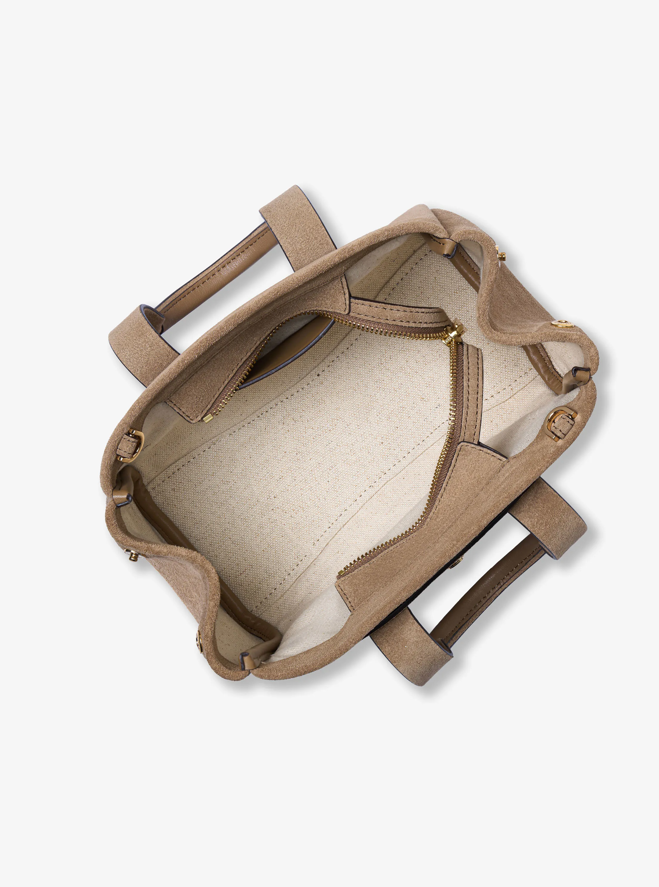 此款 Romee 超小号斜挎包,采用驼色材质打造小巧横向包型,搭配 MK Logo 字母挂饰,包身饰带点缀,与手提柄相连,流畅简约。设有可调节长肩带,设计优雅别致,纤巧的肩带可拆卸取下,既可斜挎在身,亦可将它作为手提包,轻松出游。不妨搭配本季新款连衣裙,用璀璨的配饰点亮你的出行装束。