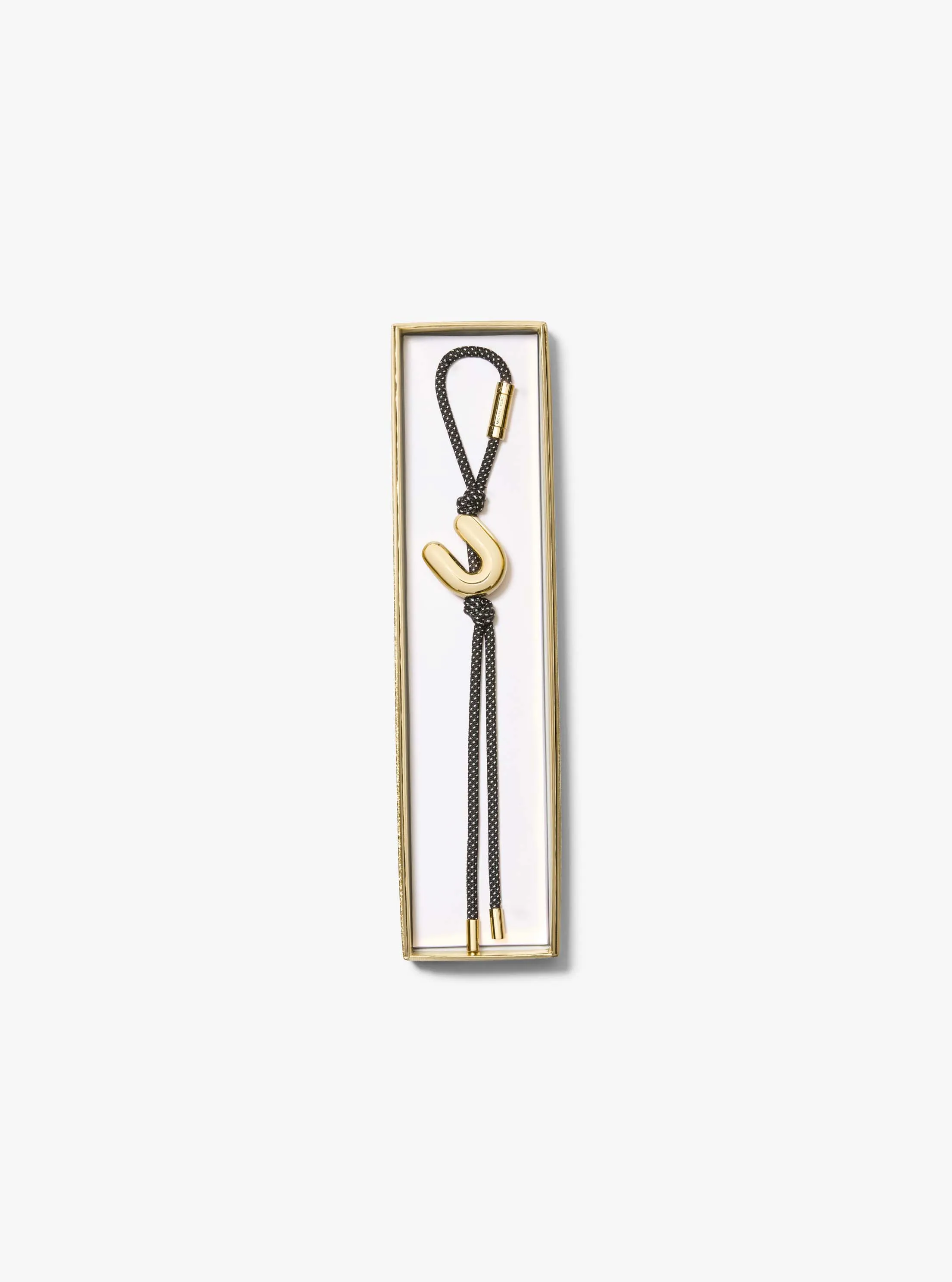 此款字母编织包挂,采用黑白波点挂绳,搭配金色字母 U 造型金属件,简约而不失个性。无论是作为礼物或是自用,都是您的上佳之选。可与各式手袋搭配,增添灵动气息。