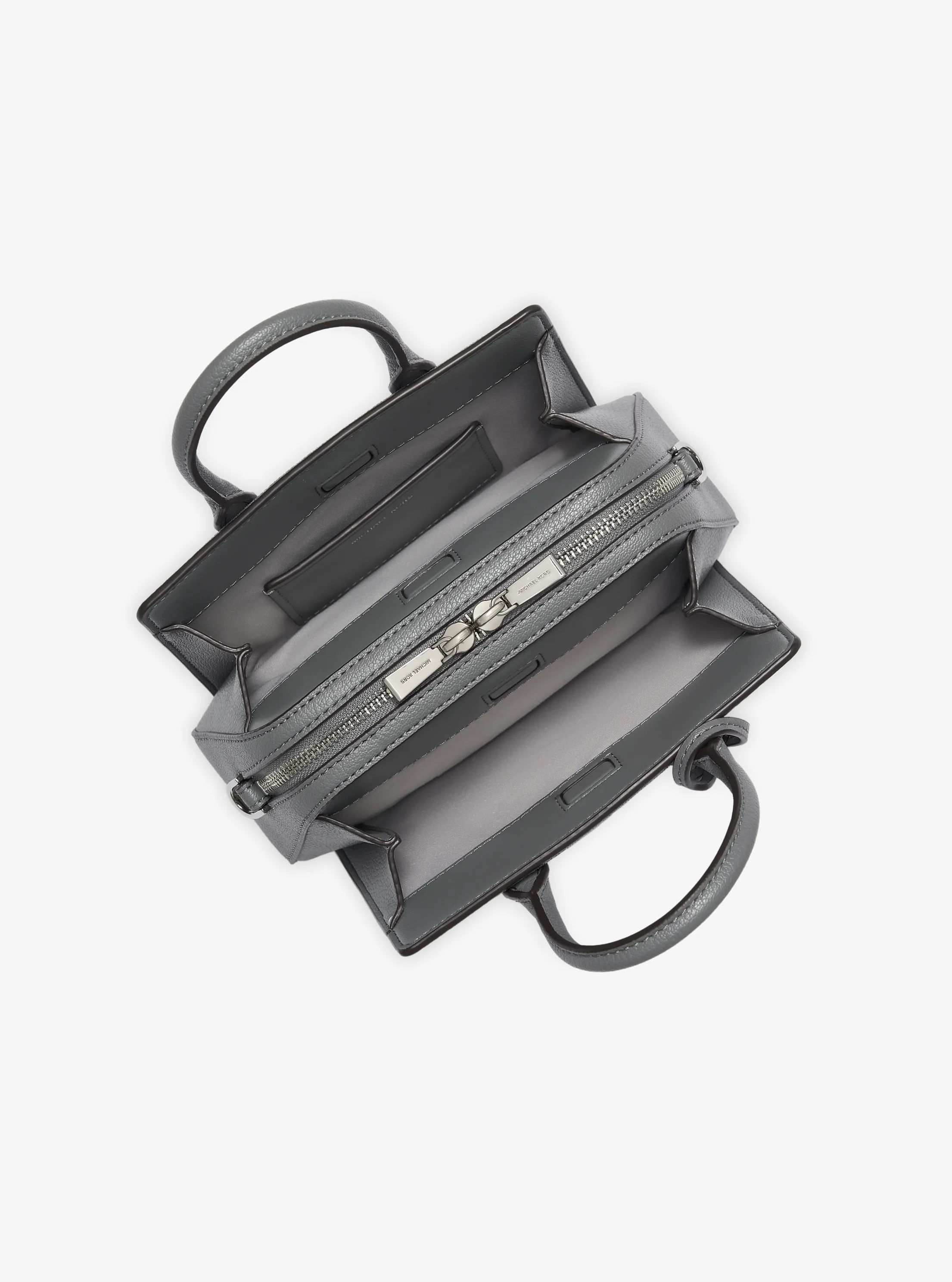 此款 Laila 超小号皮质斜挎包,选用石灰色材质打造简约小巧包身,在经典包型的基础上做减法,流线型外观搭配结构感顶部手柄和可调节长肩带,增加了单品使用多样性,便于随心切换携带方式。内部空间充裕,可以轻松收纳您的随身小物。MK Logo 挂饰增添灵动质感。不妨搭配本季新款连衣裙,打造优雅通勤造型。