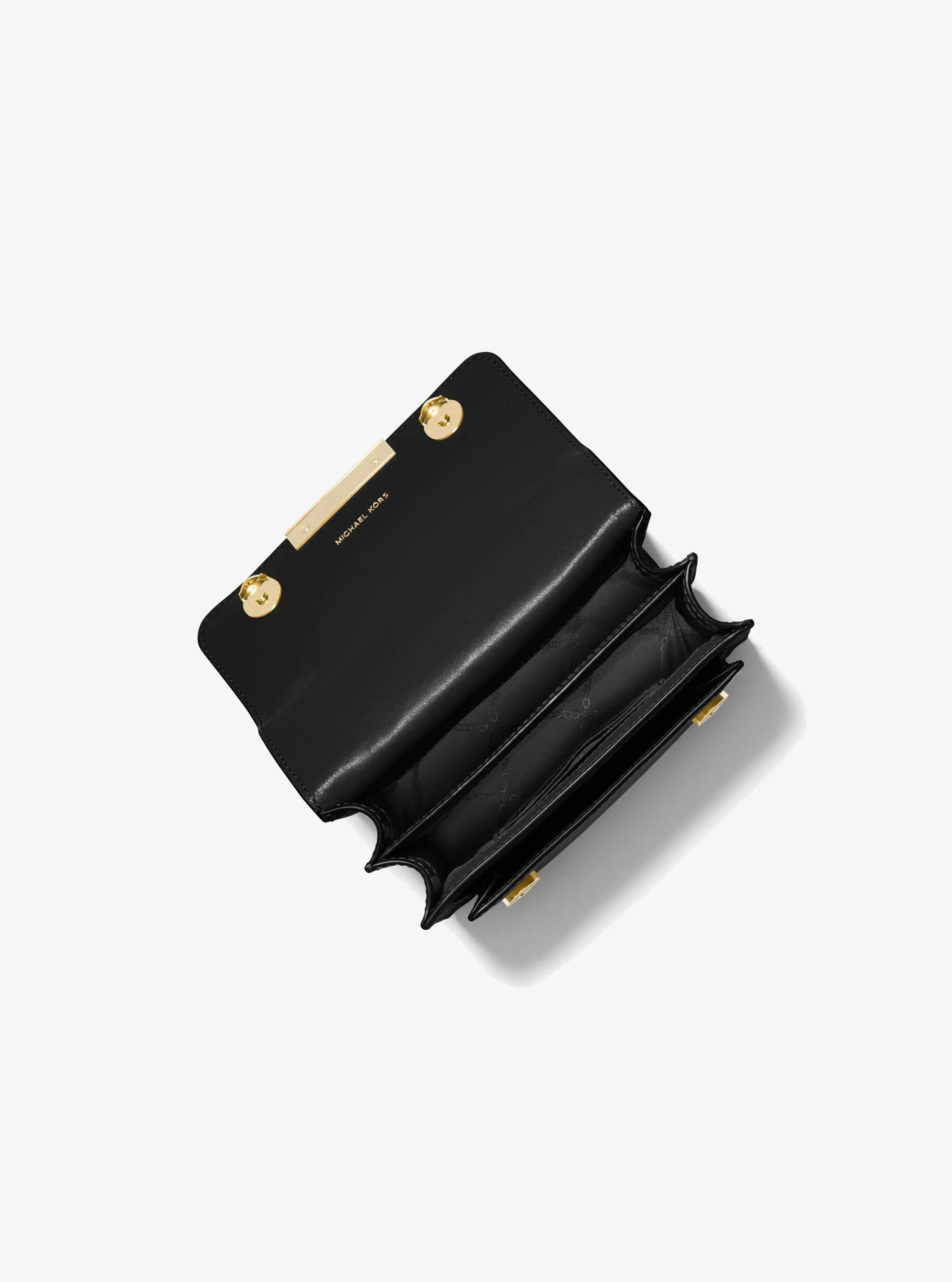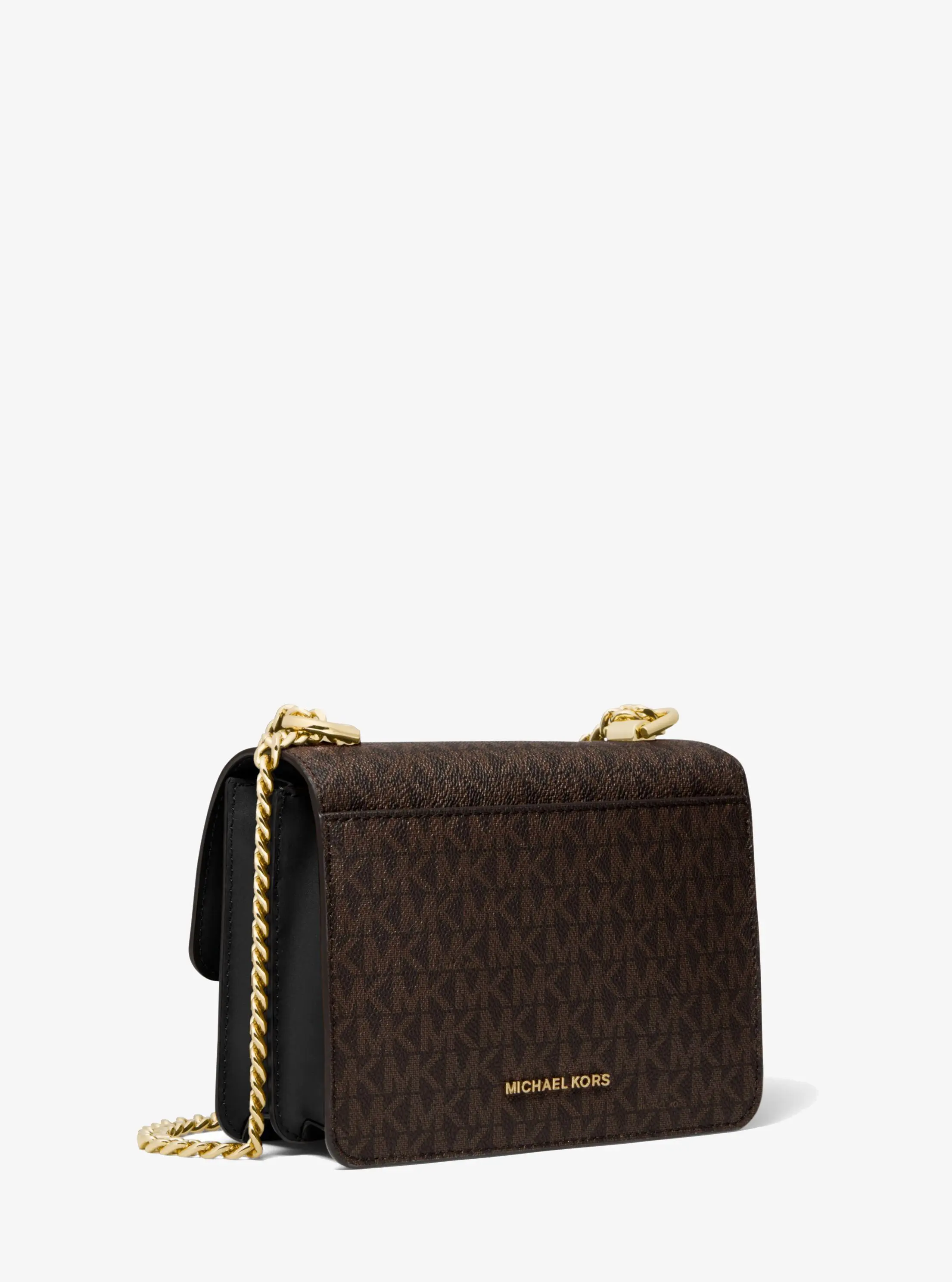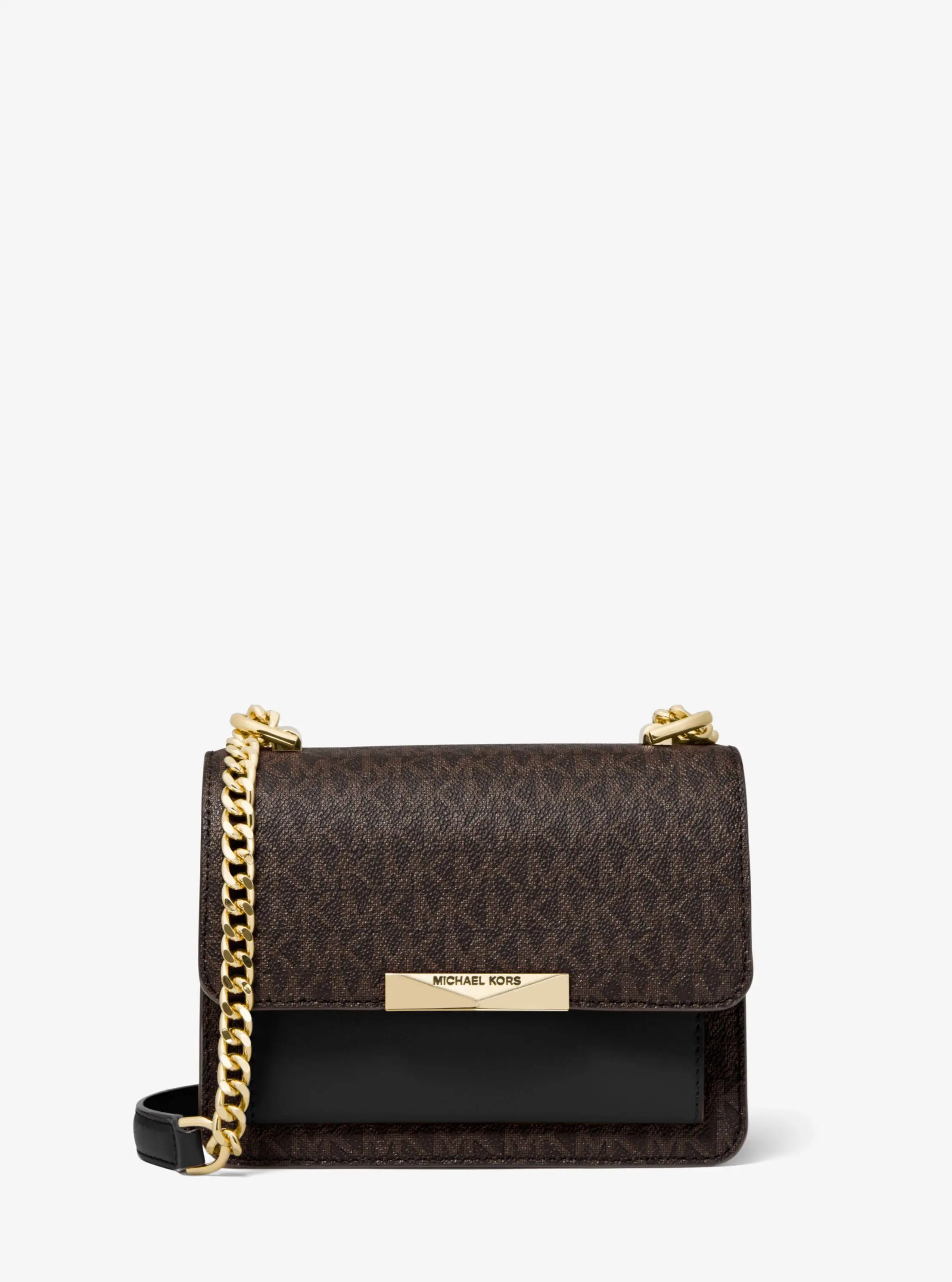 此款 Jade 斜挎包以标志性的 Logo 印花面料打造,挺括小巧。皮革元素和多面夹扣演绎大气奢华。正面和背面的狭缝口袋增加储物空间。
