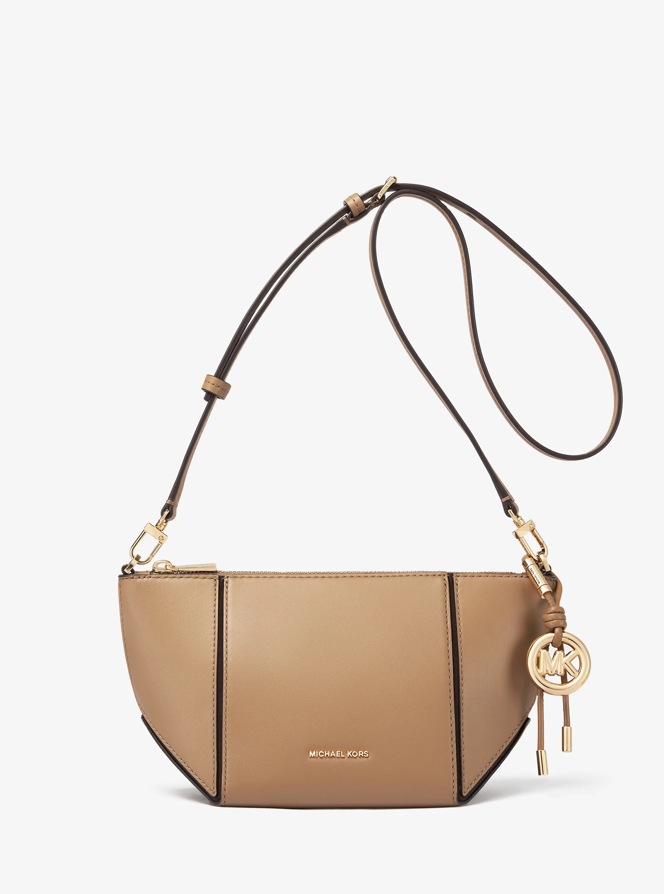 此款 Jordi 小号皮质斜挎包是一款个性的奢华之选。采用驼色材质打造包身,设有小巧的MICHAEL KORS Logo 金属件和圆形 MK 挂饰装饰,低调而不失品牌质感。拉链开合,设有可调节长肩带,为单品增添实用性。精致外形为您的整体造型增添优雅摩登气息。