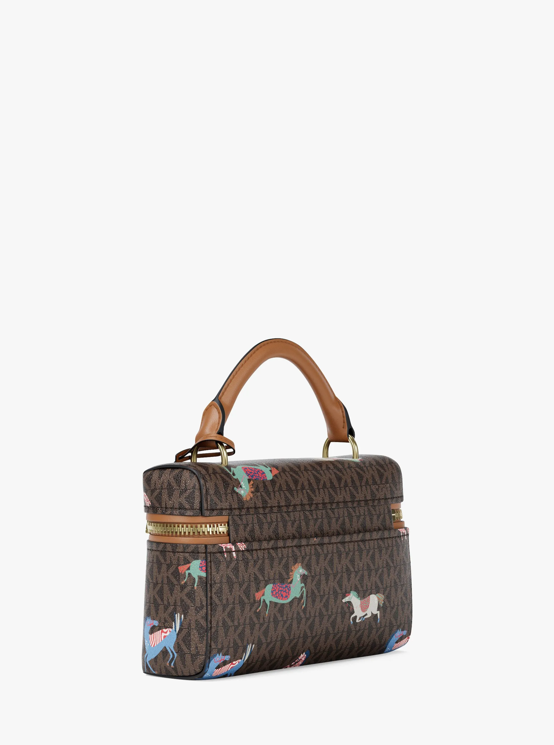 此款 Jana 超小号斜挎包,选用深棕色品牌标志性 Logo 印花材质为底色打造立体几何包型,上缀马年图案印花,硬挺时髦。单品设有橡果棕色手提柄和可调节长肩带,复古大气,集潮流与实用为一体。翻盖拉链开合,上缀低调 Logo 金属件装饰和品牌标志性锁扣挂饰,细节处彰显品牌质感。内部空间充裕,可以轻松收纳您的随身小物,增添单品实用性。不妨搭配本季新款连衣裙,打造优雅通勤造型。