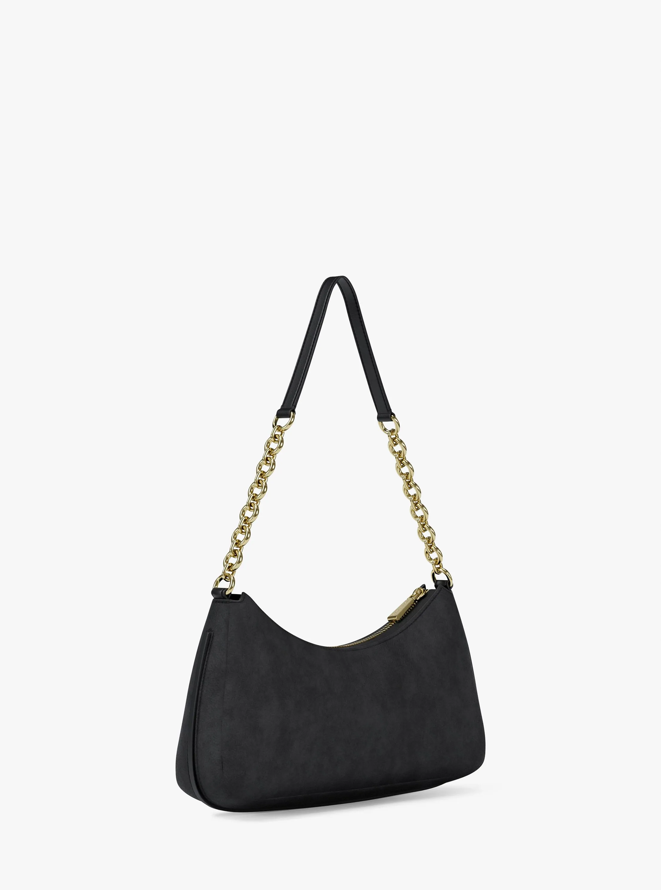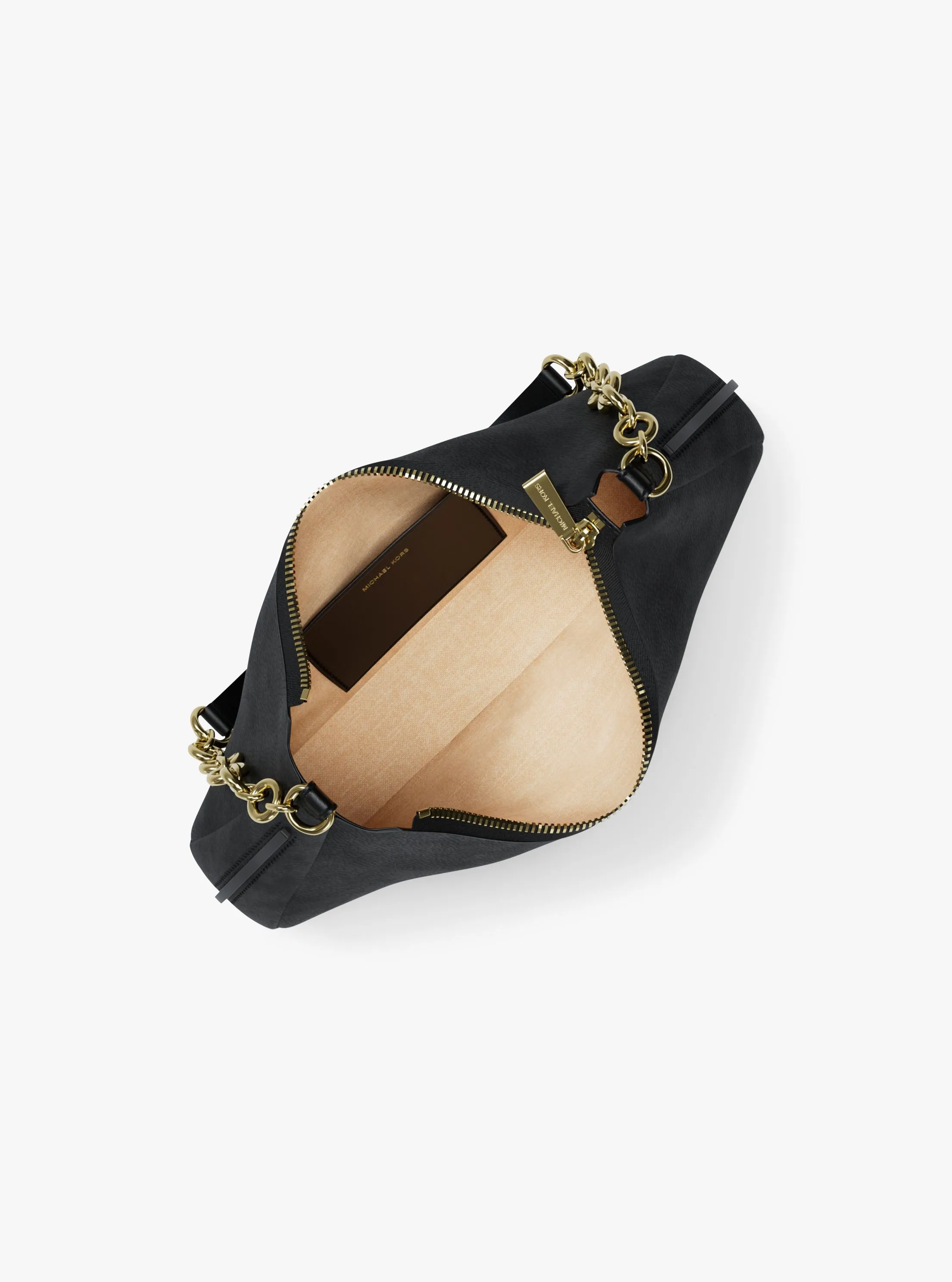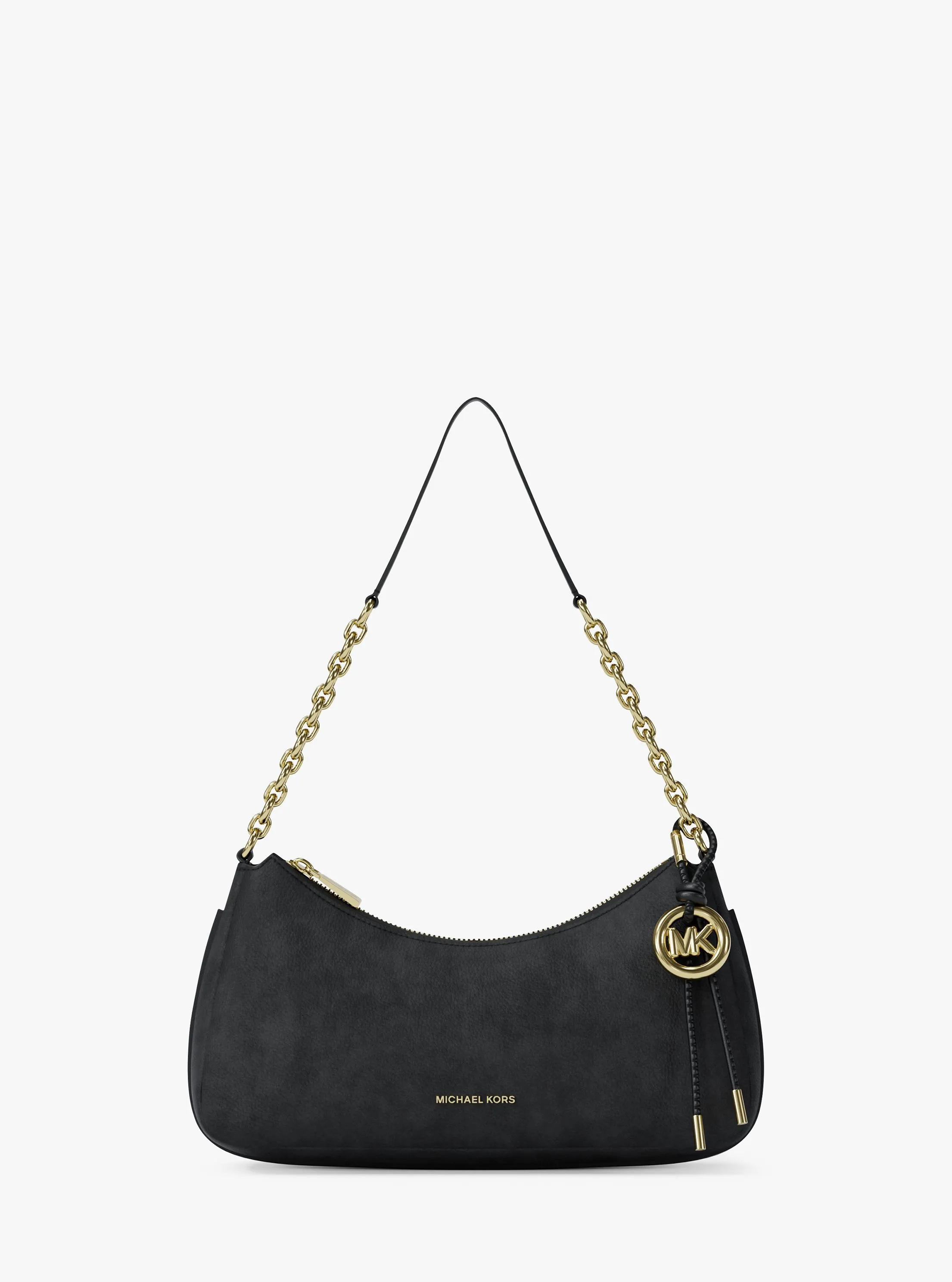 此款 Nolita 中号腋下包,采用绒面黑色材质打造时下流行的慵懒随性造型,复古韵味与当代潮流感巧妙相融。拉链开合,集便利与实用为一体。包身点缀低调的品牌 Logo 金属饰件,搭配标志性圆形 MK 挂饰,于细节处流露品牌专属的精致质感。无论是工作日的通勤时刻,还是周末的下午茶约会,只需搭配一条本季新款连衣裙,便能轻松打造出优雅又不失个性的造型,成为人群中亮眼的存在。