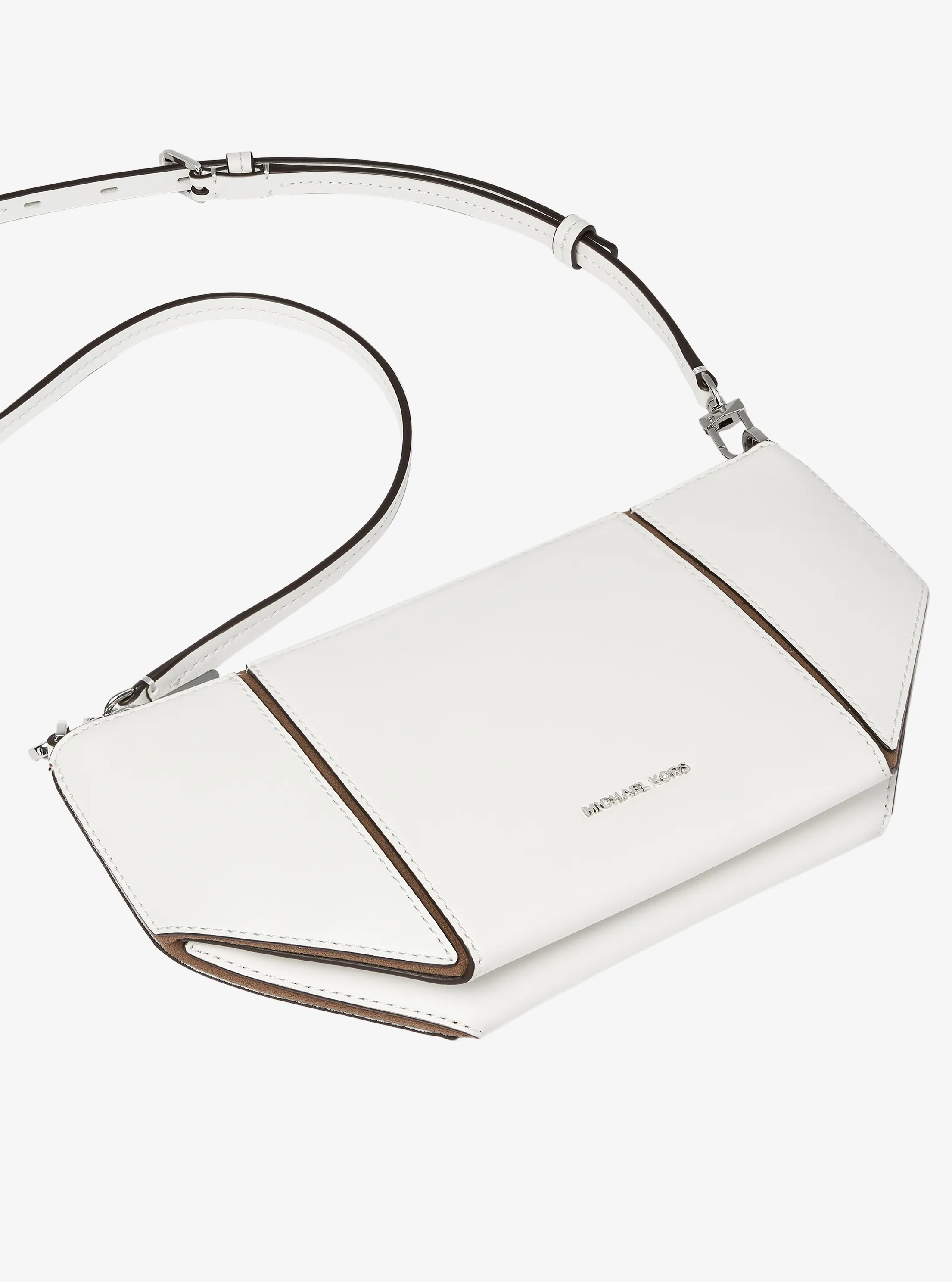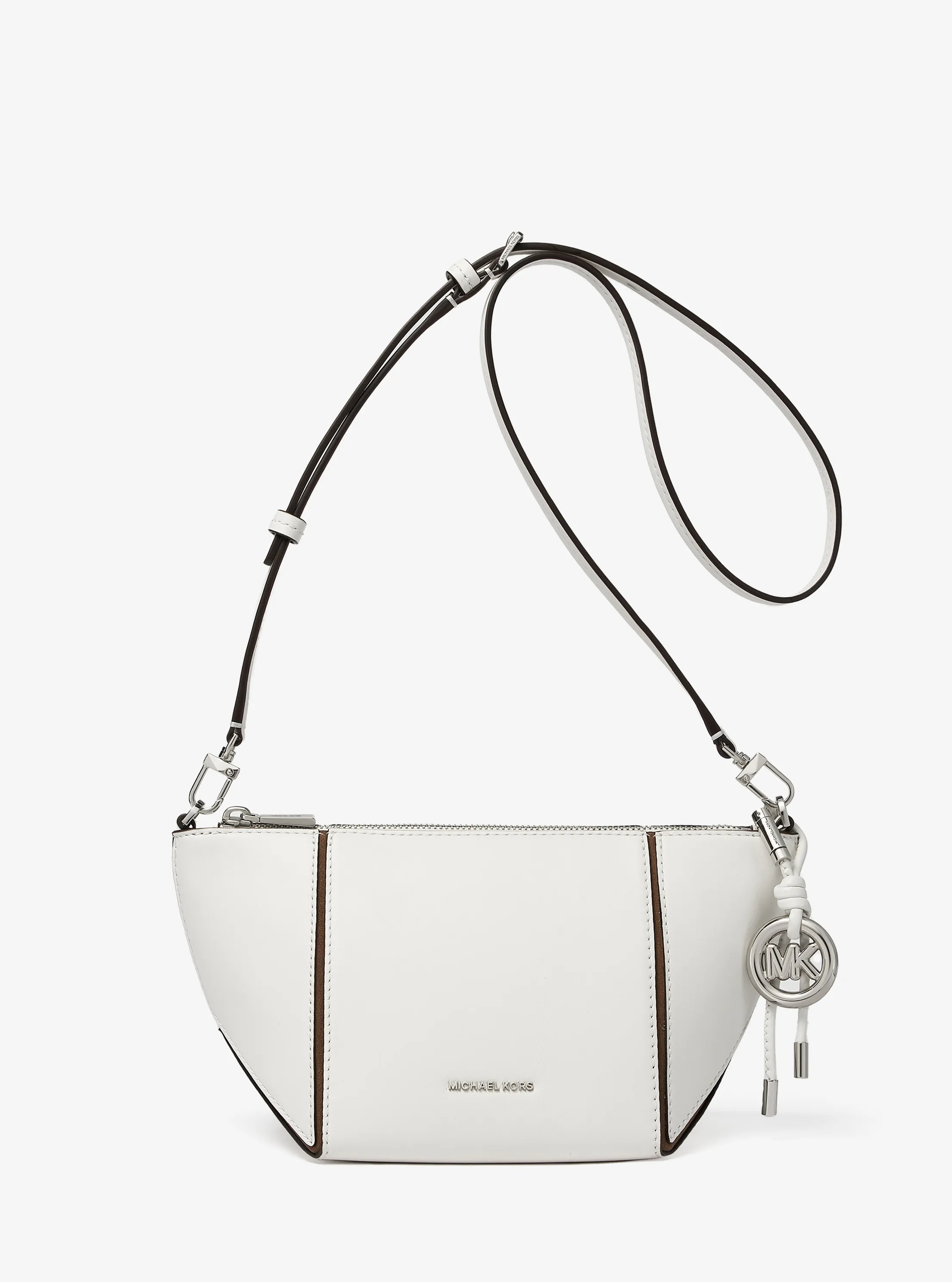 此款 Jordi 小号皮质斜挎包是一款个性的奢华之选。采用白色材质打造包身,设有小巧的MICHAEL KORS Logo 金属件和圆形 MK 挂饰装饰,低调而不失品牌质感。拉链开合,设有可调节长肩带,为单品增添实用性。精致外形为您的整体造型增添优雅摩登气息。