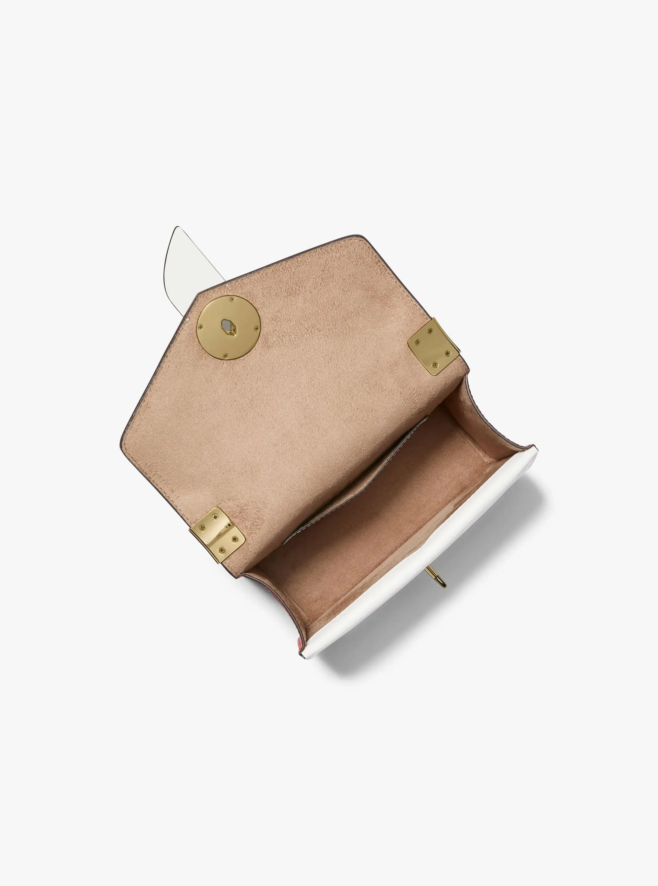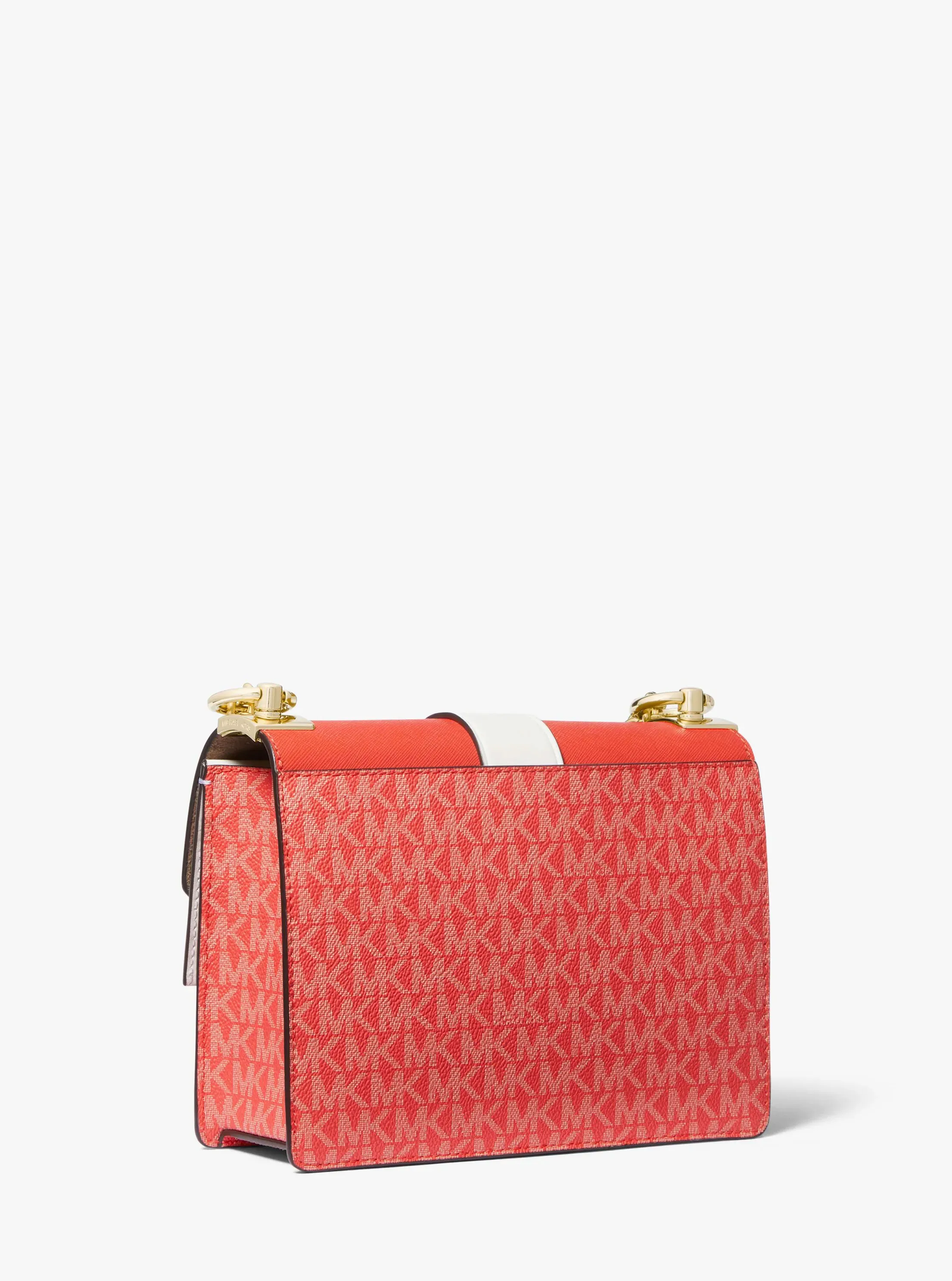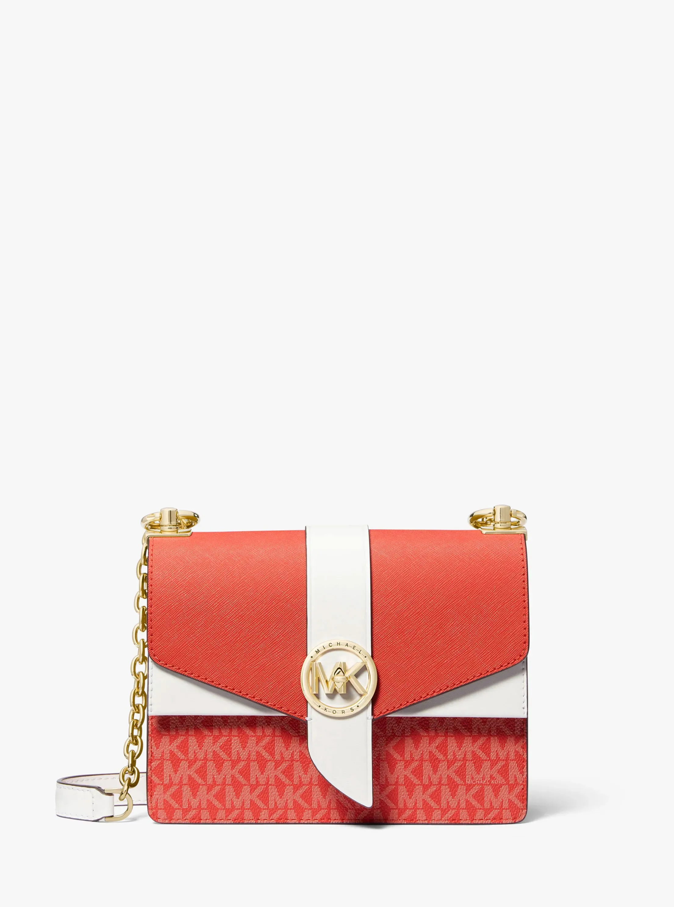此款 Greenwich 小号老花斜挎包,包身采用珊瑚红色品牌经典 Logo 印花材质打造。翻盖设计,包盖别出心裁地选用珊瑚红色和白色材质拼接,上缀 Logo 圆形金属件装饰,细节处彰显品质。内部空间充裕,可以轻松容纳您的随身物品。链条拼接肩带增添潮流个性。不妨搭配本季新款连衣裙,打造优雅造型。