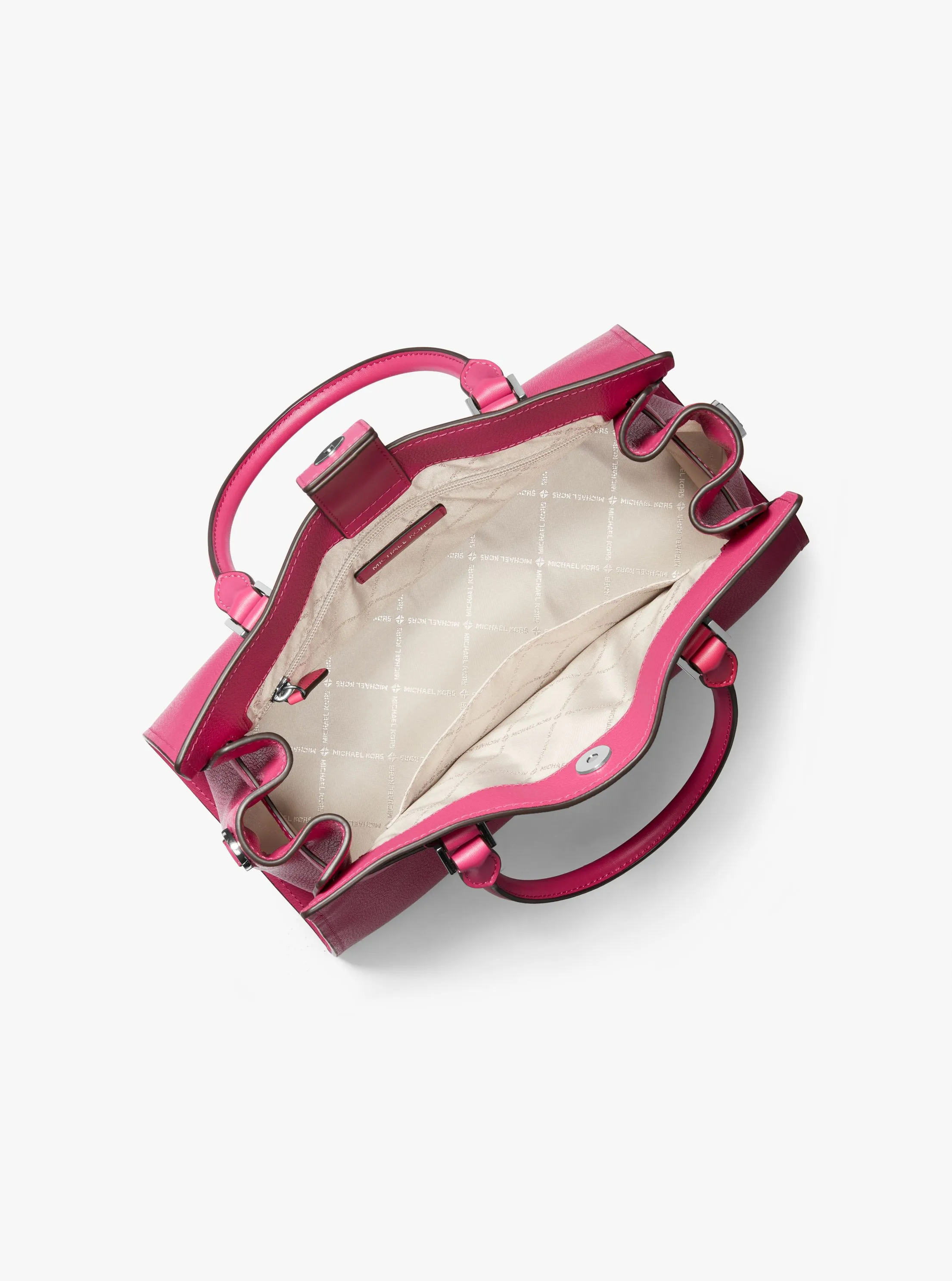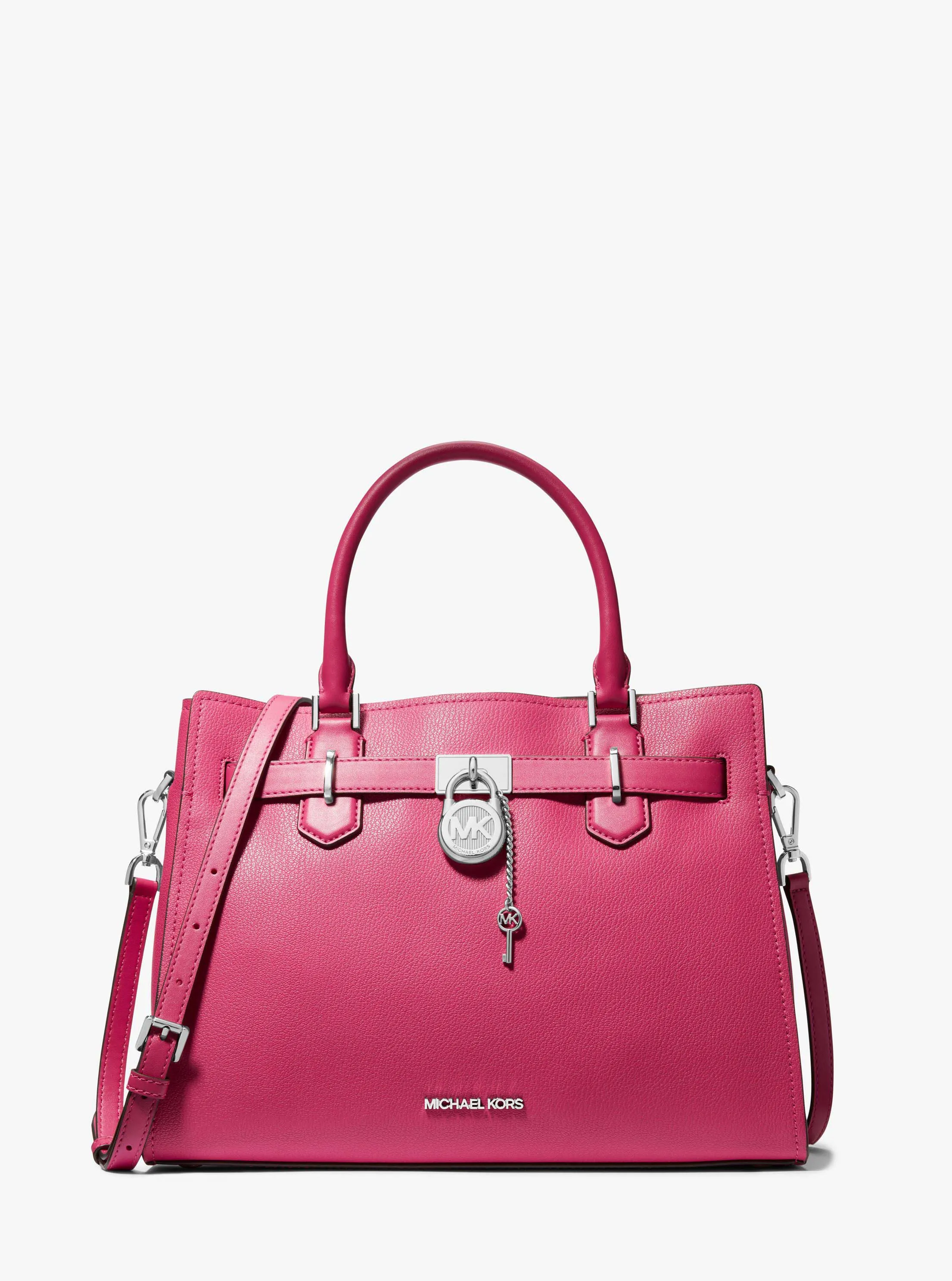 此款 Hamilton 中号手提包,经典造型时尚升级。采用洋红色材质匠心制作,包型立体,饰带与银色金属件点缀包身,为单品注入个性风采。内侧空间充裕,可以轻松收纳您的出行必需品;隔层空间井井有条,方便随时取用。配有手提柄和可调节长肩带,随心切换携带方式。不放搭配本季新款风衣和鞋履,打造气质造型。