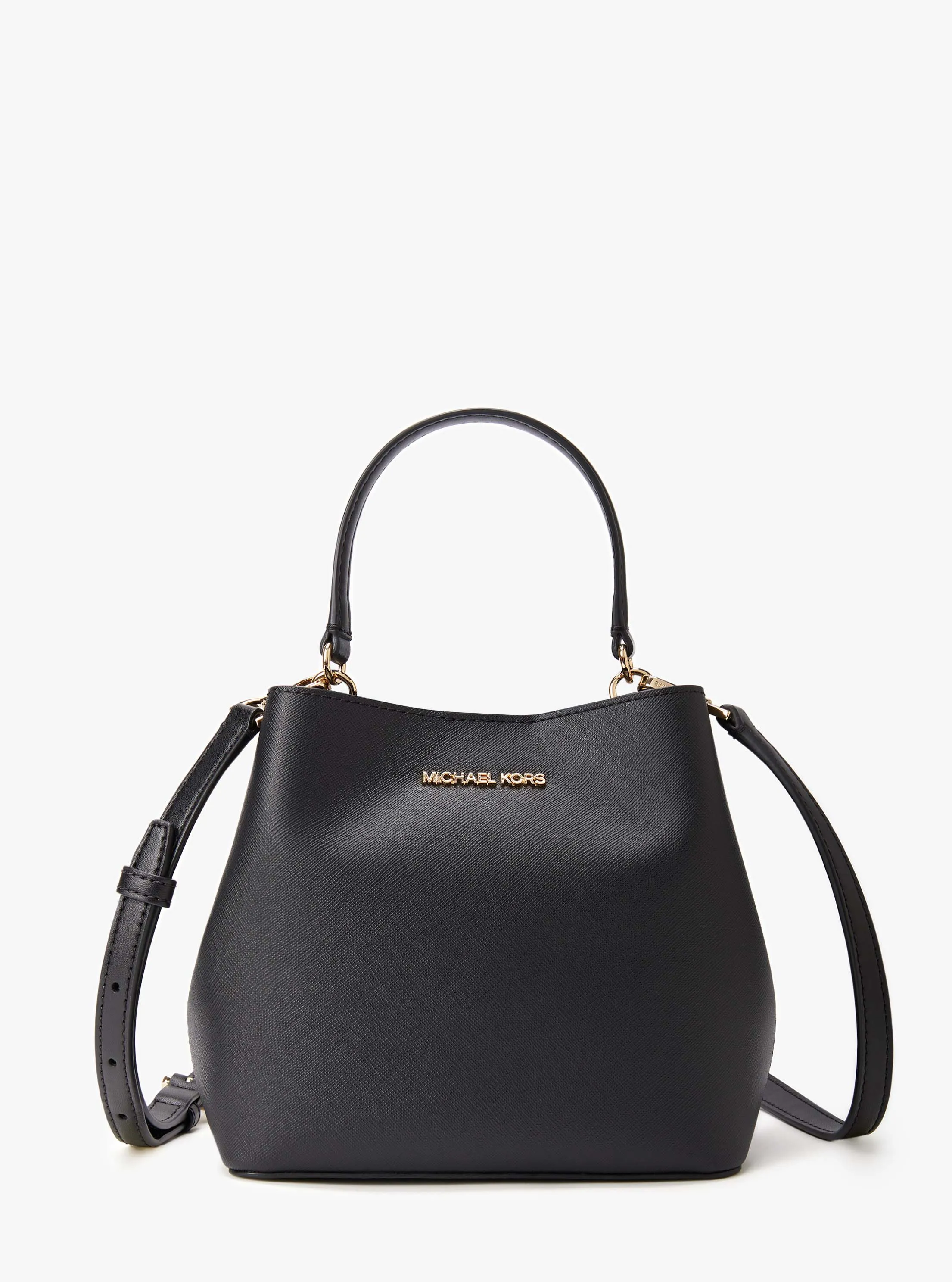 此款 Pratt 小号双肩包,采用经典黑色材质打造立体包身,复古且经典。上缀小巧 MICHAEL KORS Logo 金属件,细节处彰显品牌质感。设有手提柄和背带,可手提也可以肩背,随心切换携带方式。实用的大空间设计,内部设有拉链隔层,可收纳手机、衣物和鞋履等随身物品,是您旅行出游的上佳之选。大方简约的外形,透露着年轻活力。不妨带上它,魅力出行。