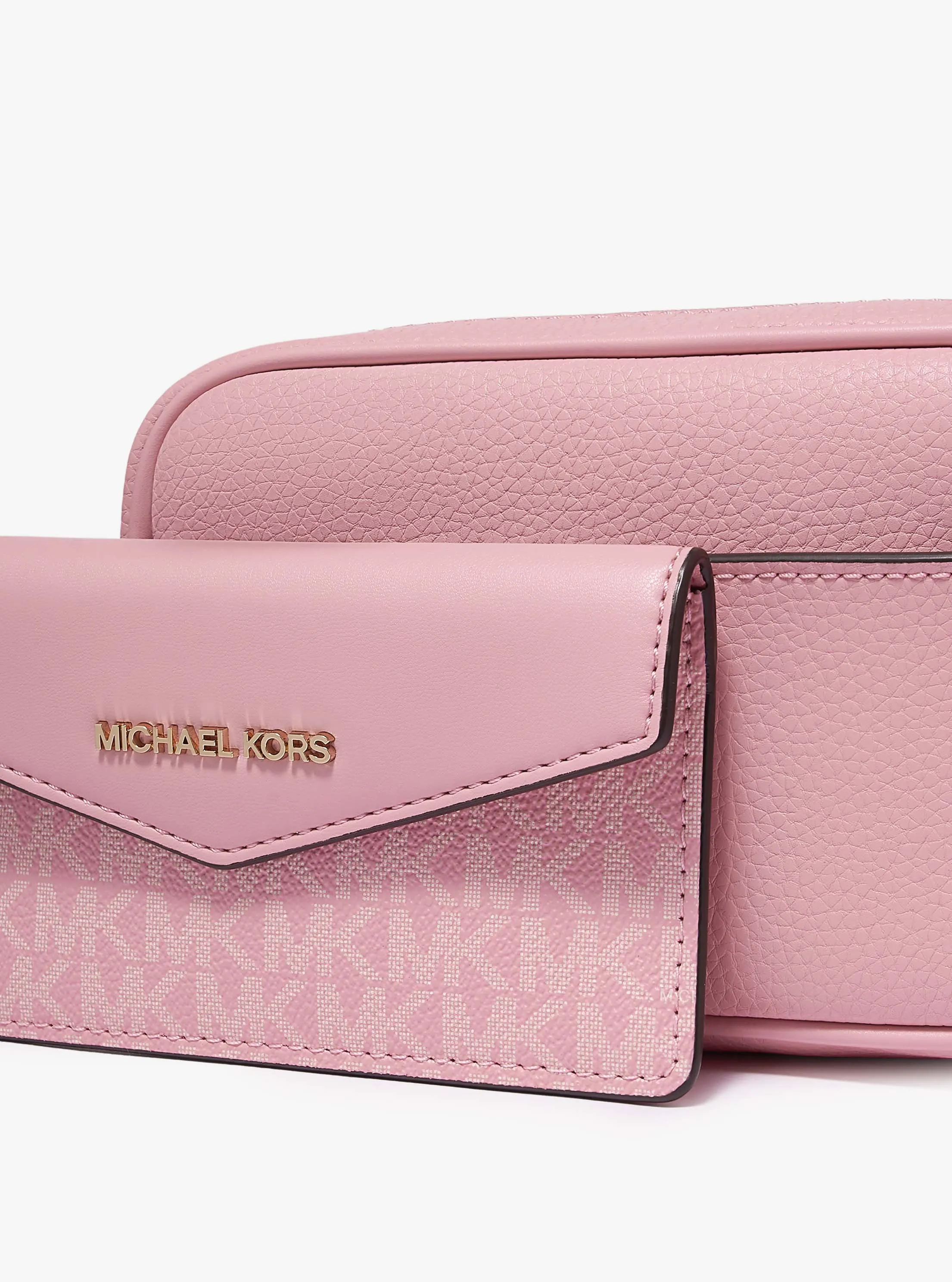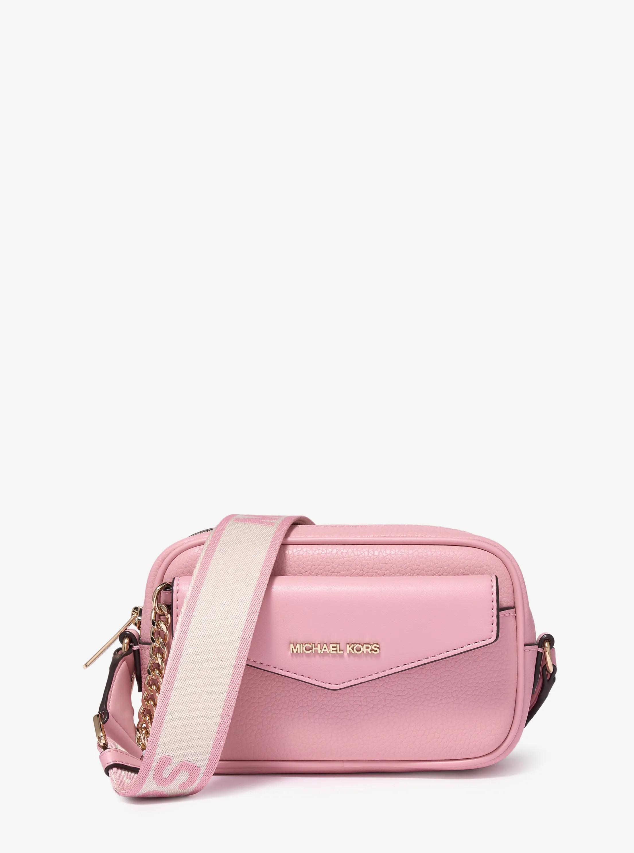 此款 Maisie 小号斜挎包在个性中尽显奢华。造型简约,设计灵巧,采用柔美粉色材质打造,上缀同色翻盖信封造型贴袋,为单品注入灵动气息。搭配金属链条装饰,拉链开合,字母印花可调节肩带增加单品实用性。轻松提升日常穿搭的时尚气质。不妨带上它,尽享假日愉悦时光。