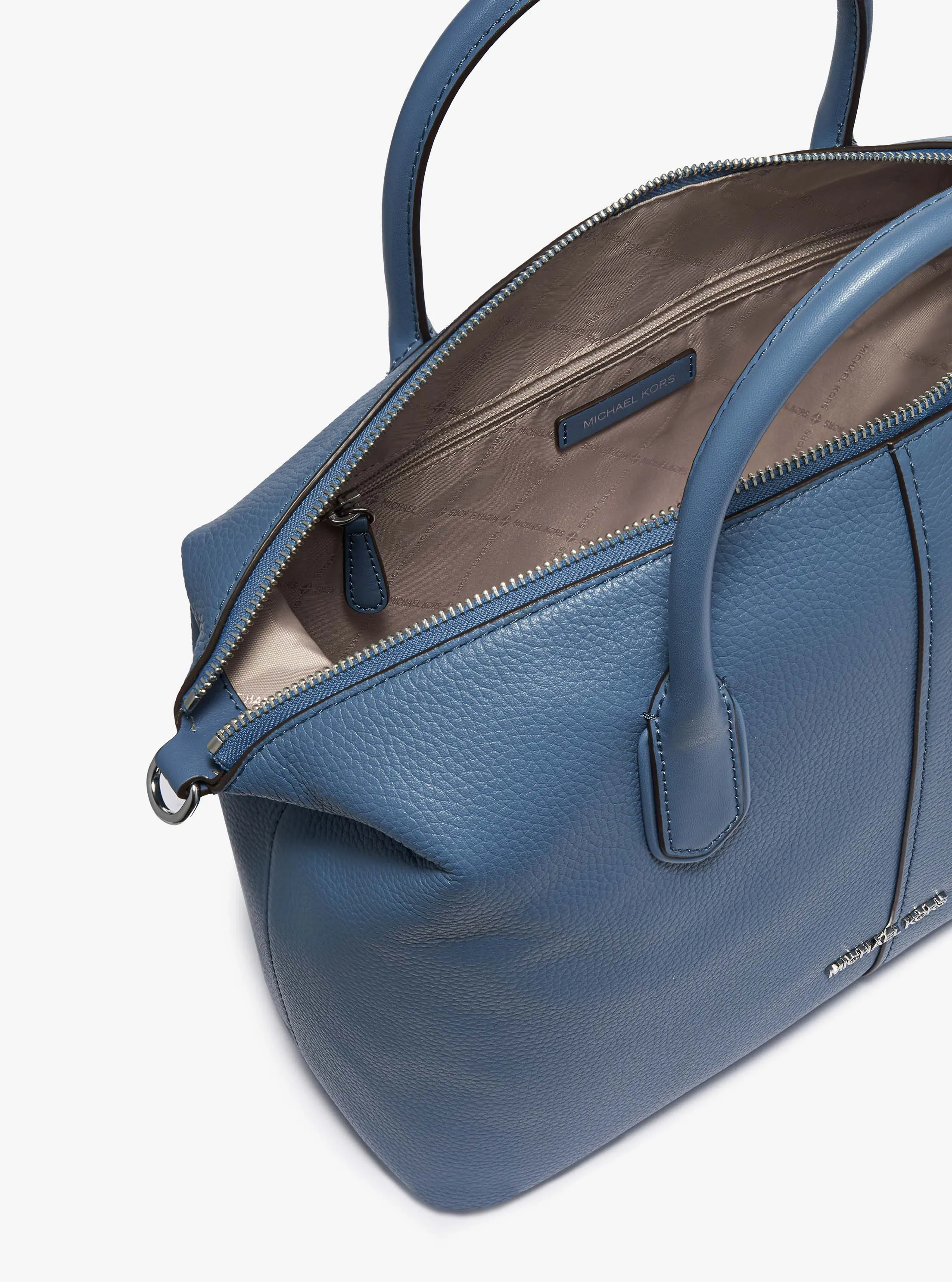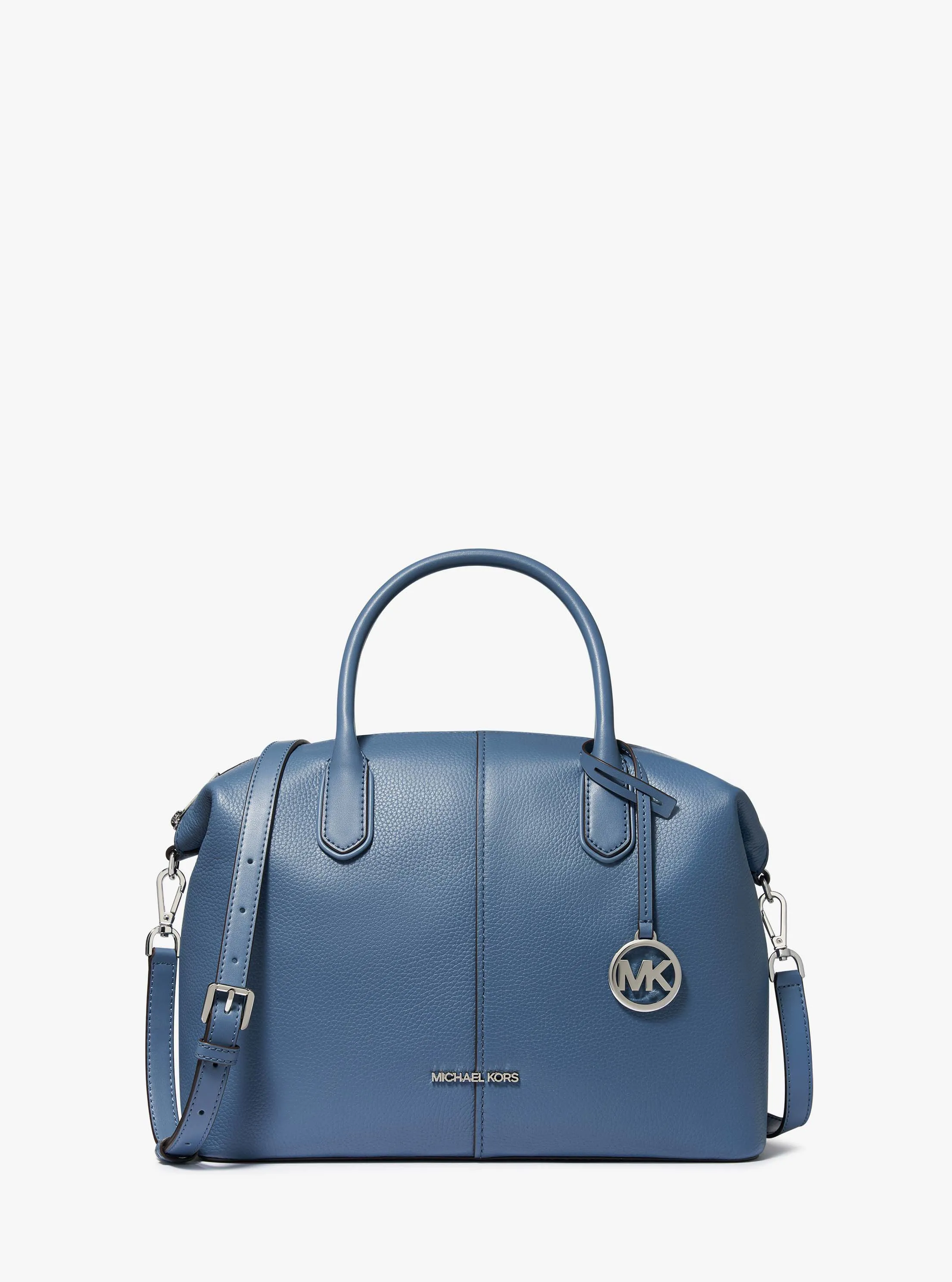 此款 Hyde 大号手提包,采用沉稳蓝色材质打造包身,灵动优雅。包面设有低调 MICHAEL KORS Logo 金属件装饰,搭配圆形 MK Logo 挂饰,细节处彰显品牌质感。配有手提柄和可调节肩带,便于随心切换携带方式,增添单品实用性。内部空间充裕,可以轻松容纳您的随身物品。不妨搭配本季新款简约套装,打造优雅个性通勤造型。
