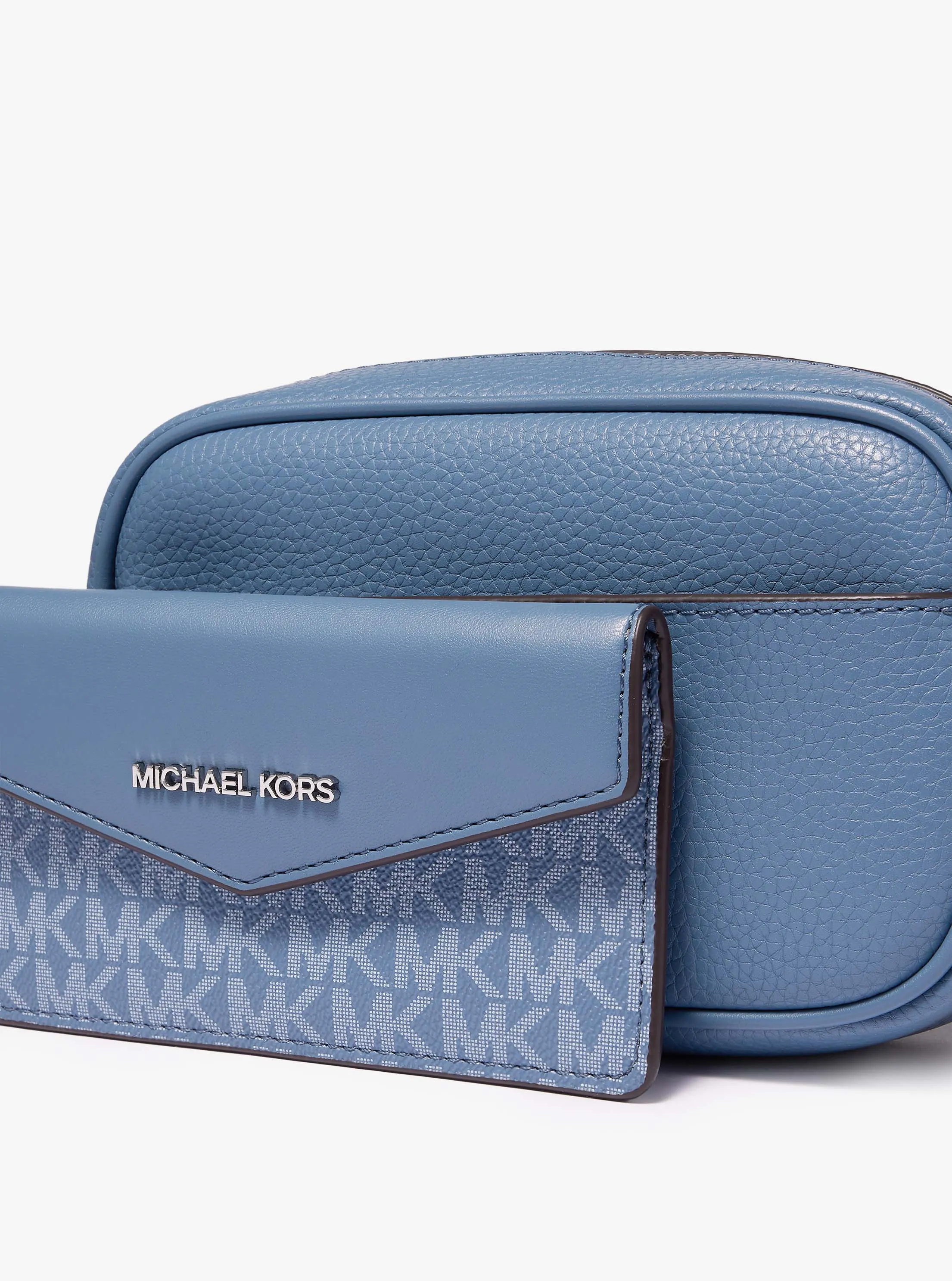 此款 Maisie 小号老花斜挎包在个性中尽显奢华。造型简约,设计灵巧,采用沉稳蓝色材质打造,上缀同色信封造型翻盖贴袋,为单品注入灵动气息。搭配金属链条装饰,拉链开合,字母印花可调节肩带增加单品实用性。轻松提升日常穿搭的时尚气质。不妨带上它,尽享假日愉悦时光。