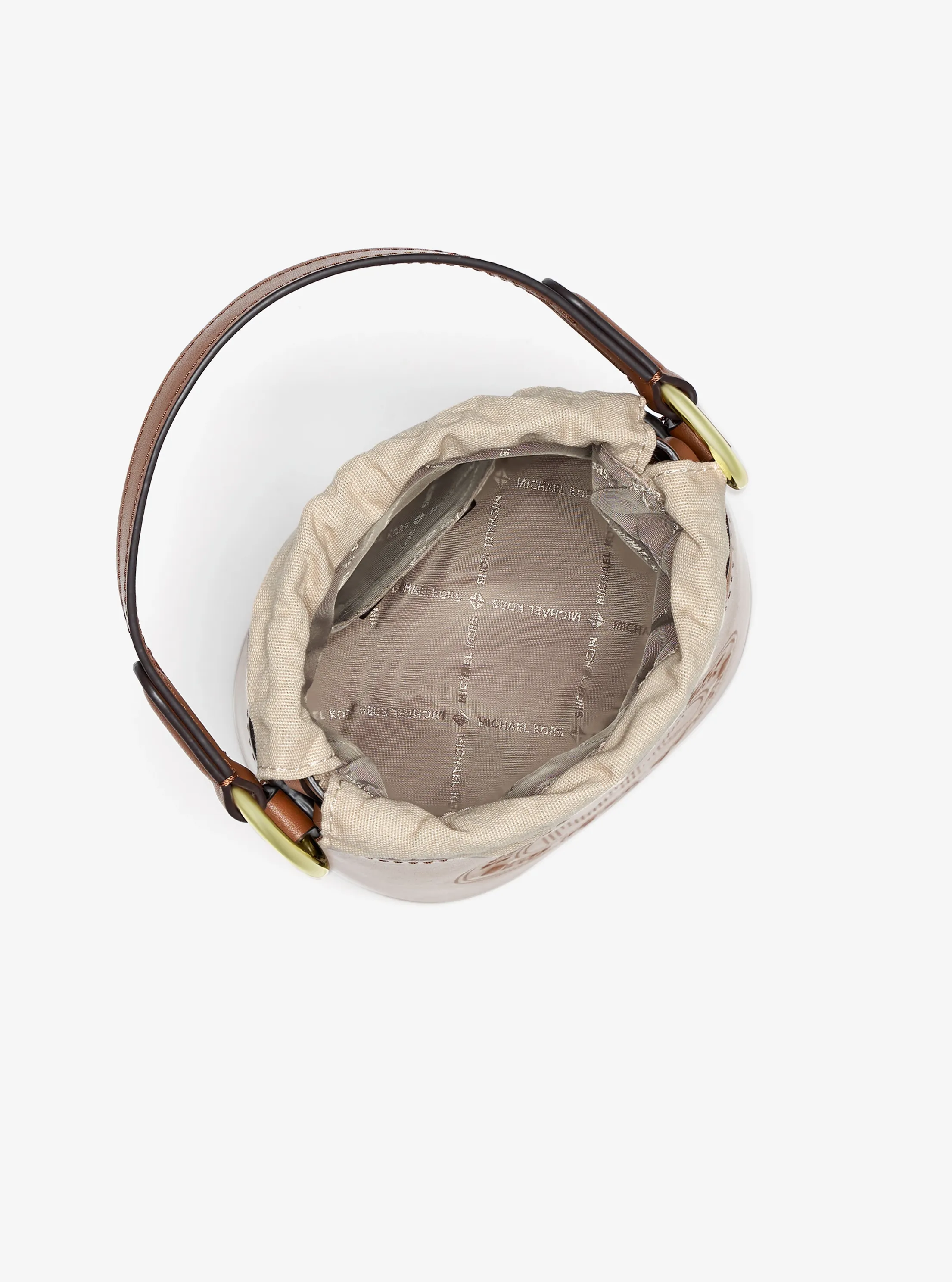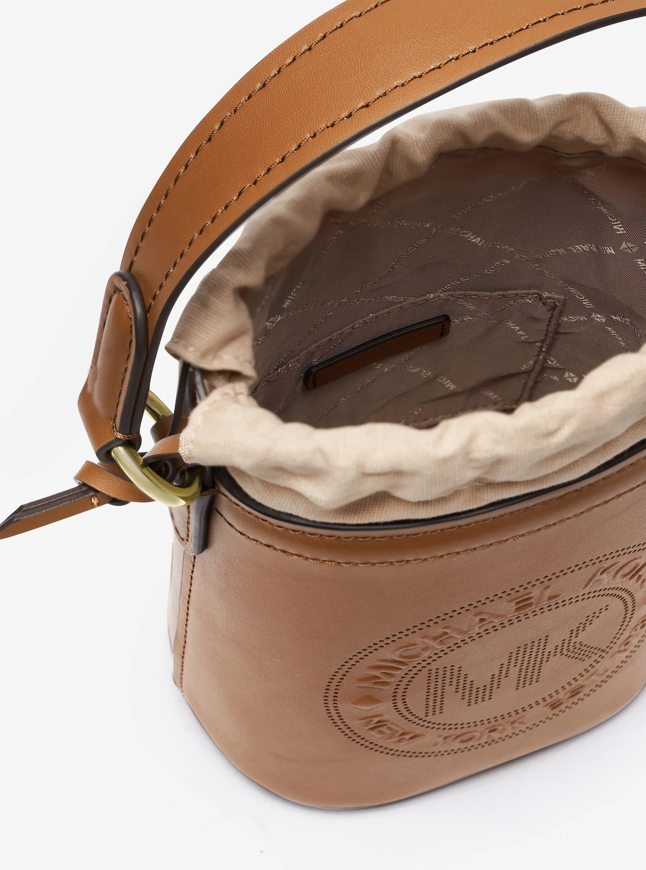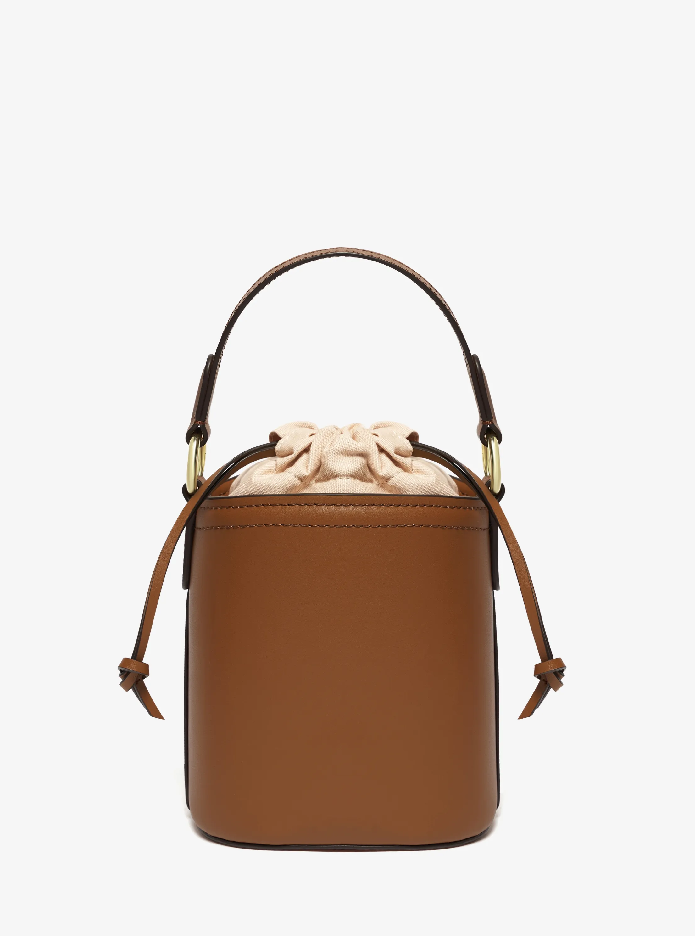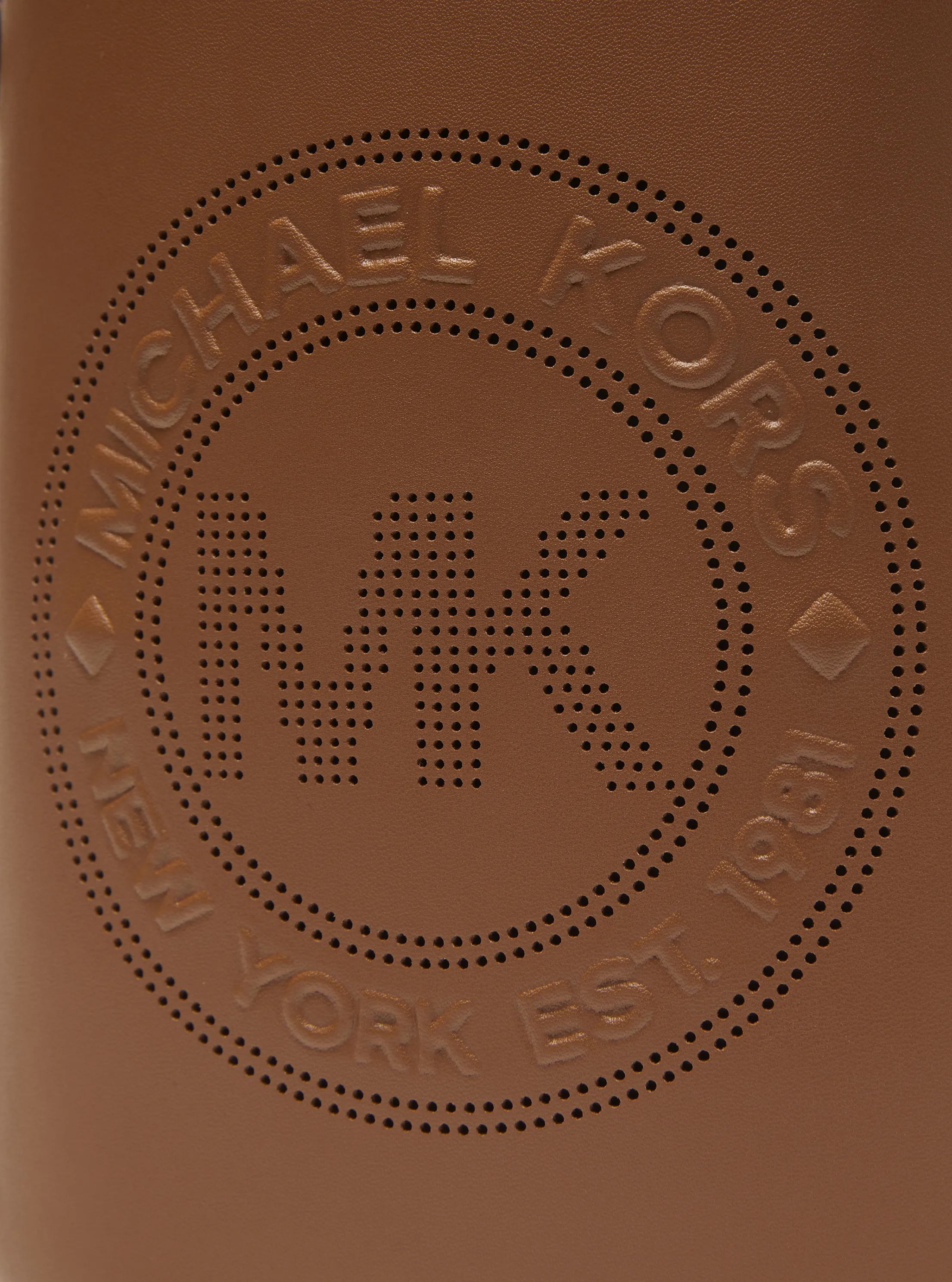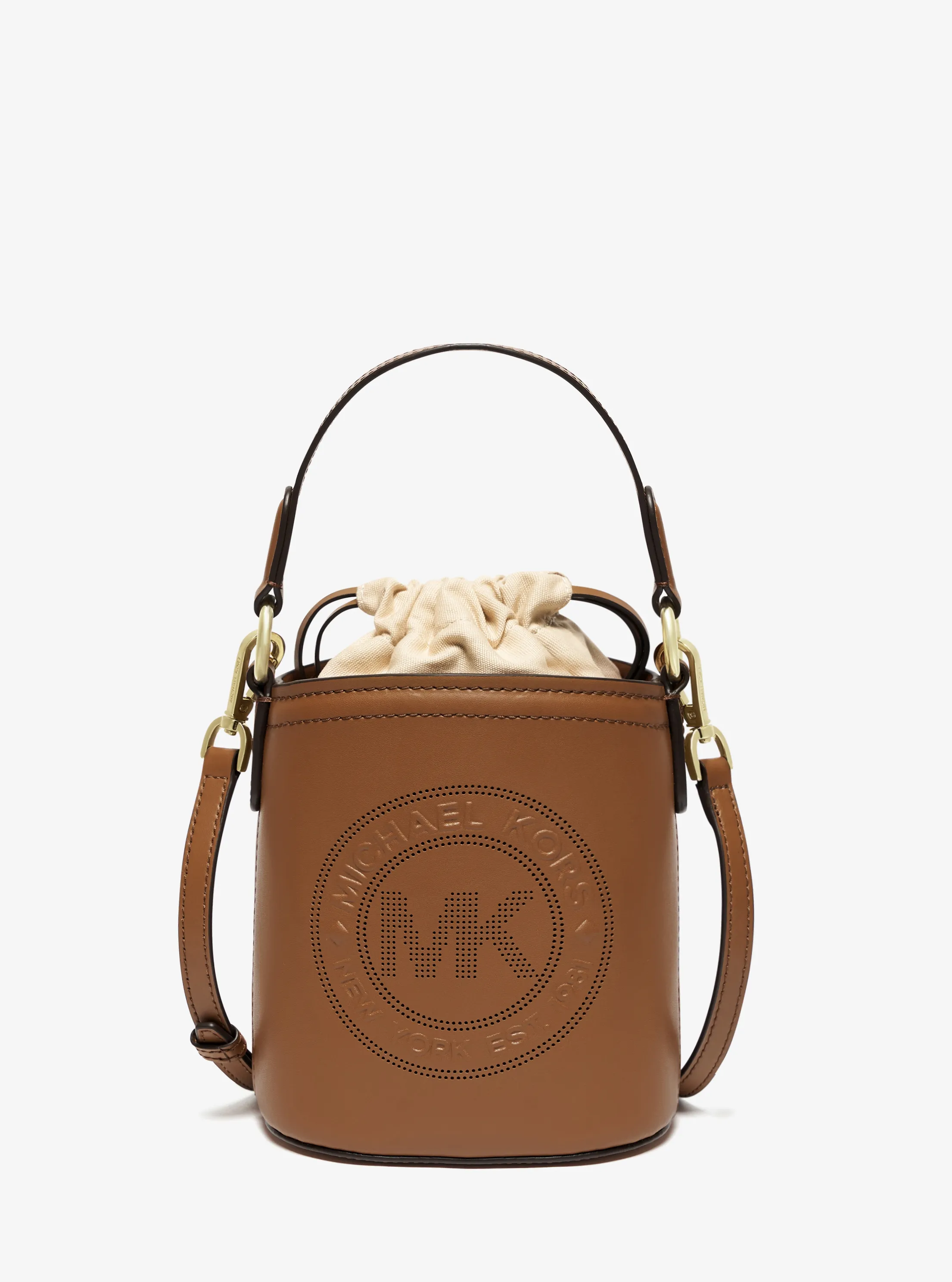 此款 Aidy 小号皮质水桶斜挎包,采用精美纯棕色皮革制成,大方简约的外形,包面采用别出心裁的镂空设计打造圆形图案,透露着年轻活力。实用的大空间设计,可收纳手机、长款钱包和日记本等随身物品。夏季旅行度假不妨带上它,魅力出行。