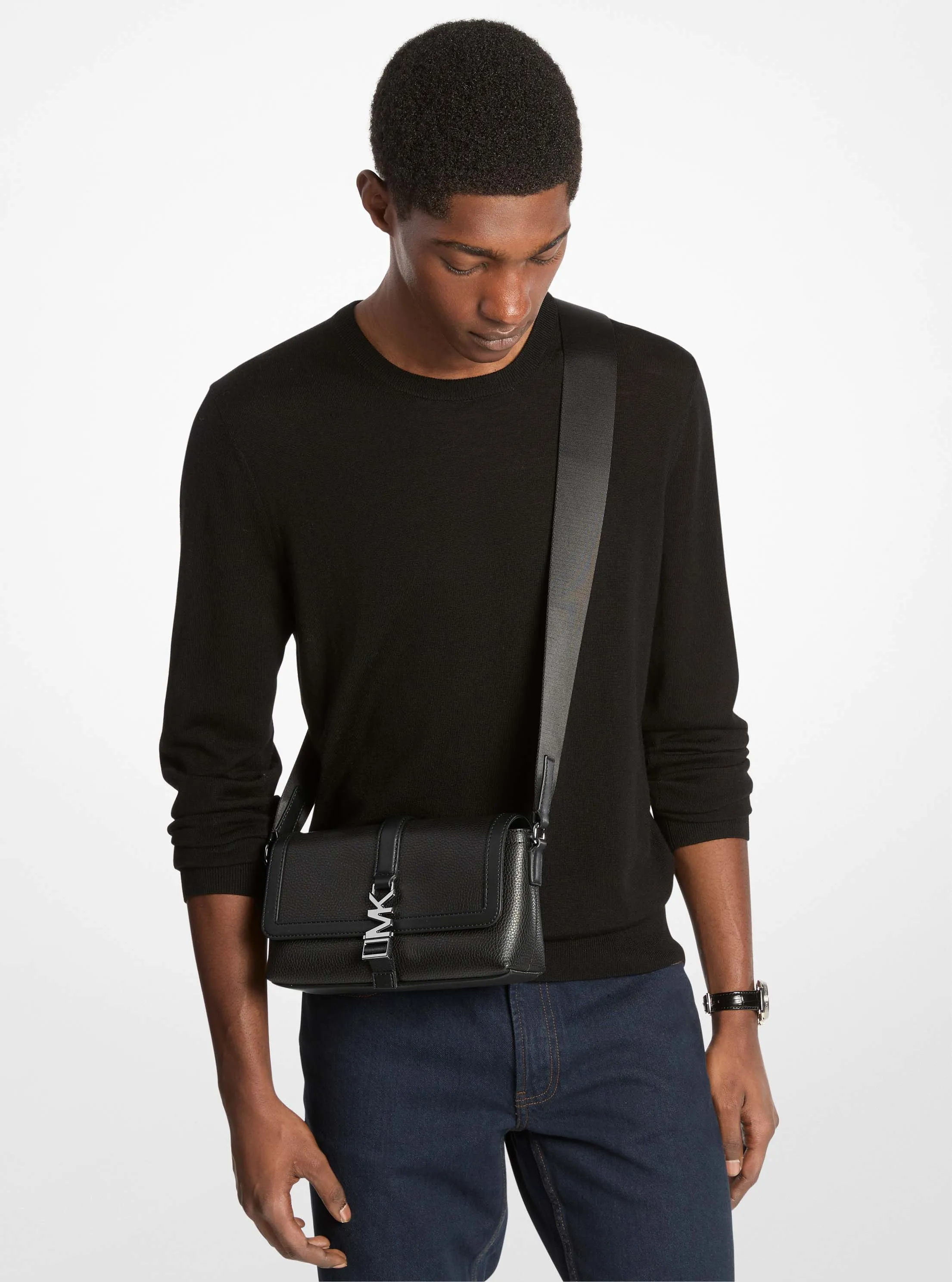 此款男士 Cyrus 斜挎包,包身采用纯净黑色材质打造,翻盖开合设计,上缀 MK Logo 字母点缀,个性潮流。硬朗简约包型,小巧包身,是您出行的轻便之选。设有宽肩带,增添单品实用性。不妨搭配休闲套装,打造质感潮流造型。