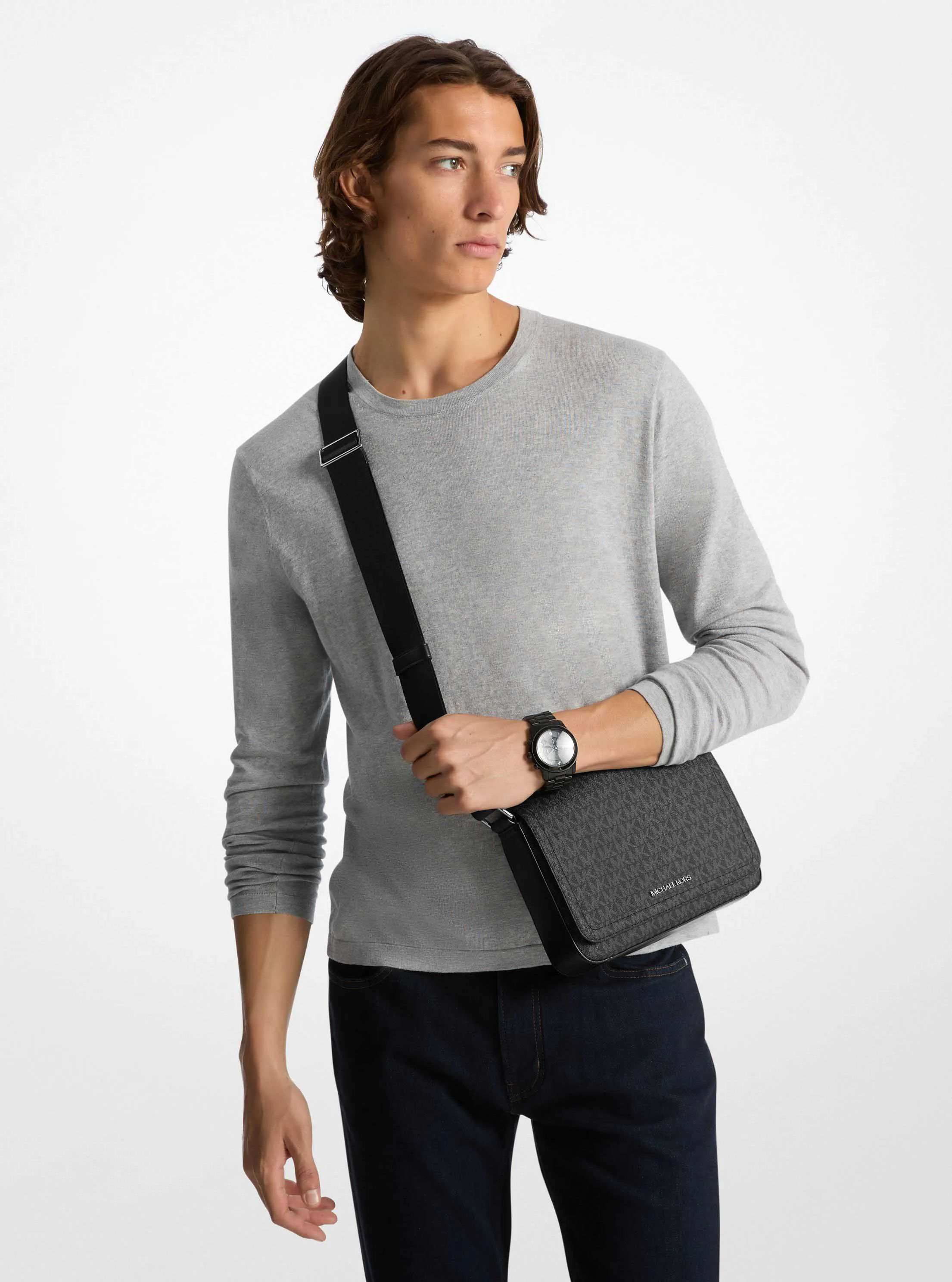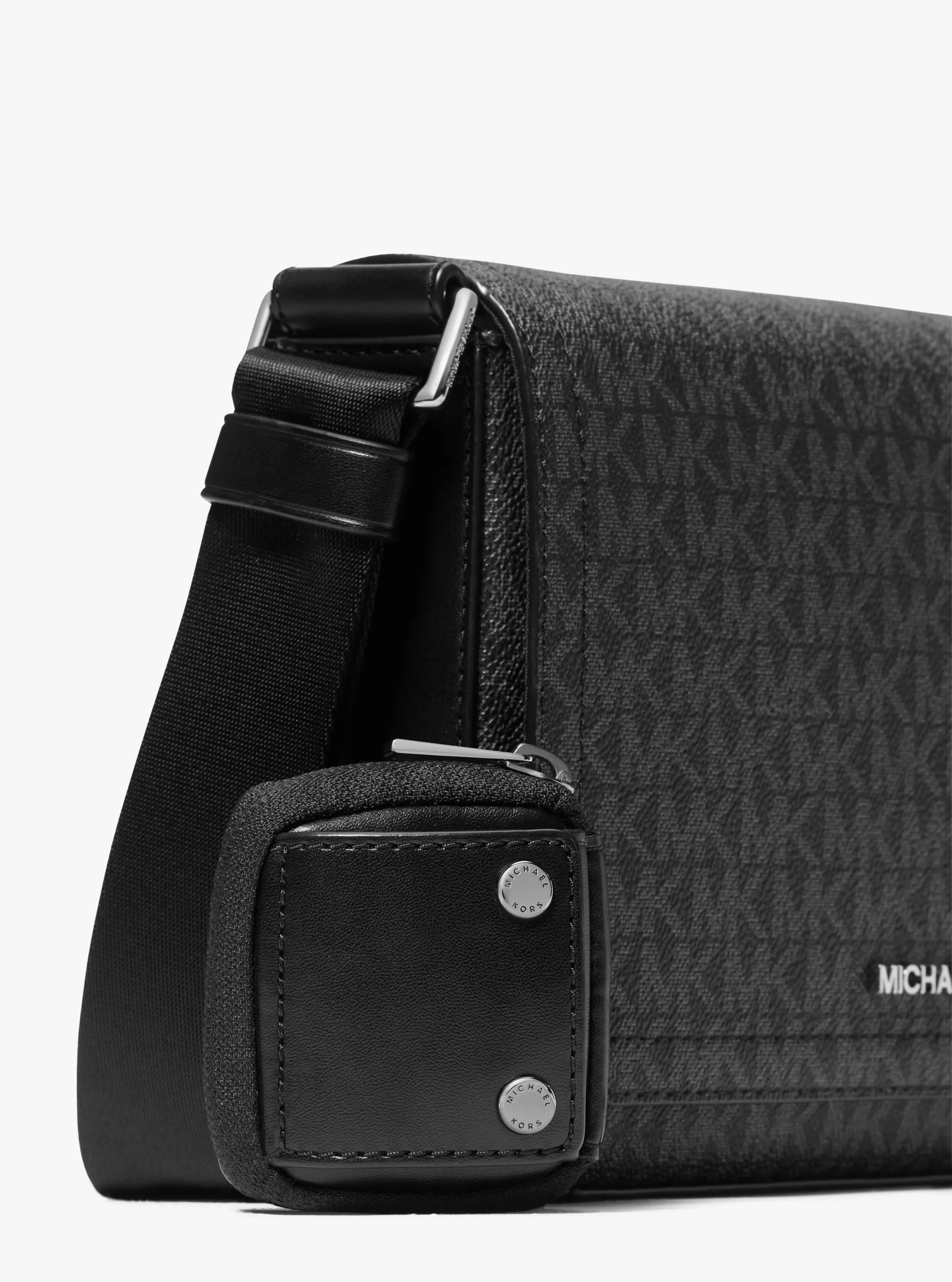 此款男士 Cooper 迷你老花斜挎包,包身采用经典黑色品牌标志性 Logo 印花材质打造,翻盖开合设计,上缀 MICHAEL KORS 金属件点缀,个性潮流。硬朗简约包型,小巧包身,是您出行的轻便之选。不妨搭配休闲套装,打造质感潮流造型。