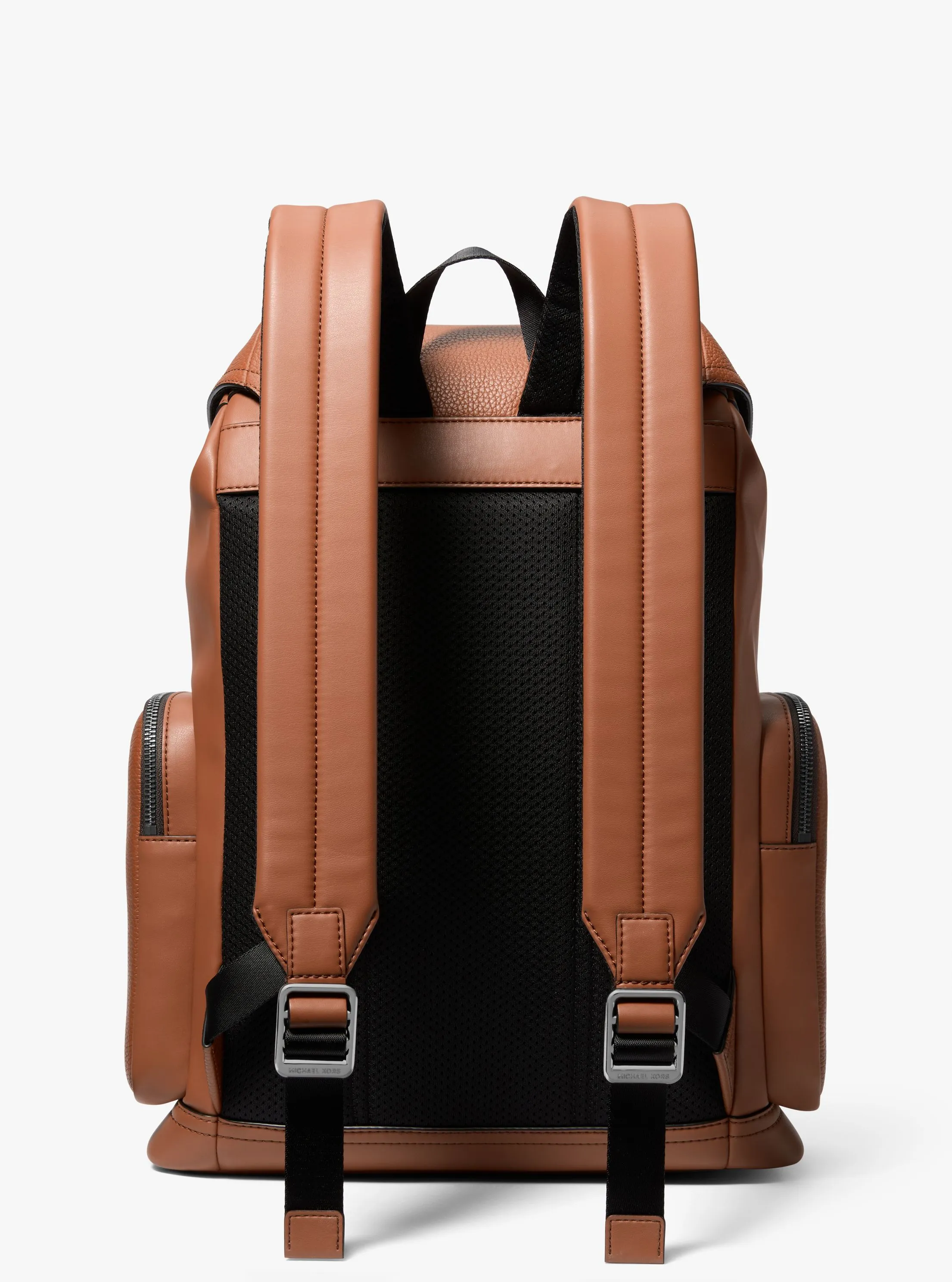 此款男士 Cooper 休闲双肩包,采用经典牛皮棕色材质打造,翻盖设计,包侧搭配拉链贴袋,方便存放随身小物,增添单品实用性;内部空间充裕,可以轻松容纳您的随身物品。整体经典大气而不失运动感,是您出行的上佳之选。