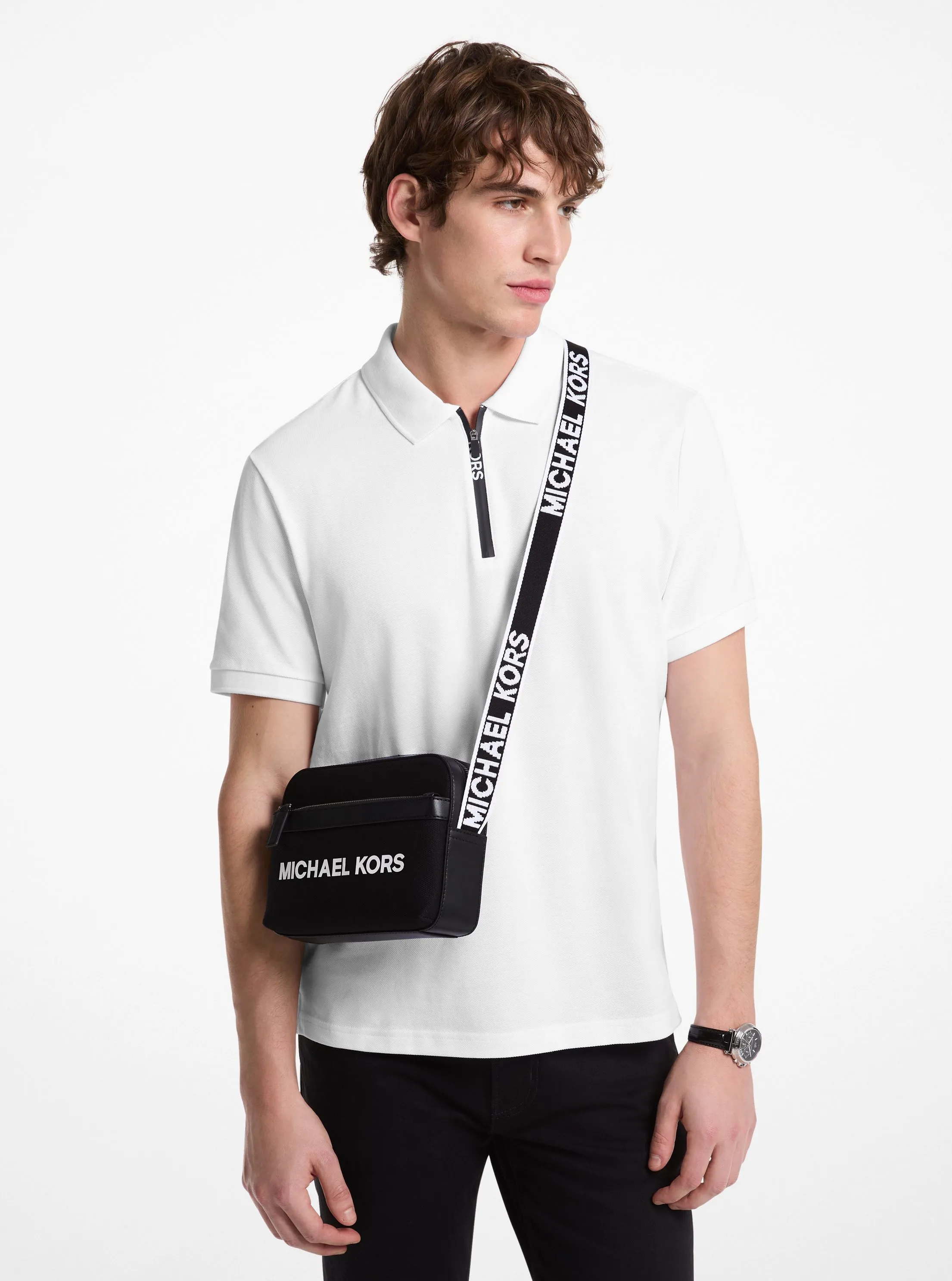 此款男士 Cooper 通勤斜挎包,采用经典黑色材质打造包身,经典大气。包身上缀白色 MICHAEL KORS 字母印花点缀,细节处彰显品牌质感。硬朗简约包型,是您出行的轻便之选。拉链开合设计,包面额外设有拉链贴袋,字母印花可调节长肩带增添单品实用性。不妨搭配休闲套装,打造质感潮流造型,日常通勤和外出旅行两相宜。