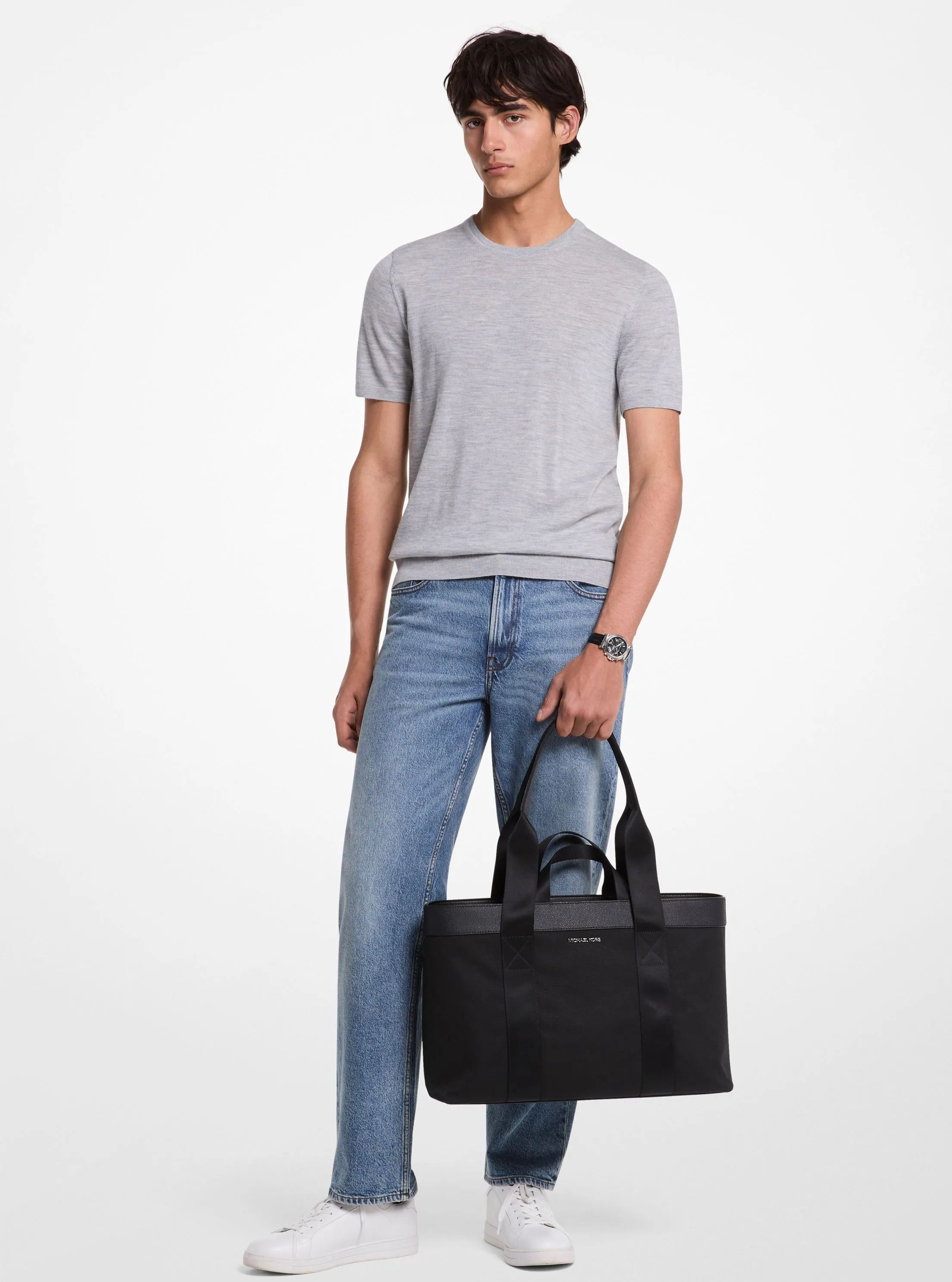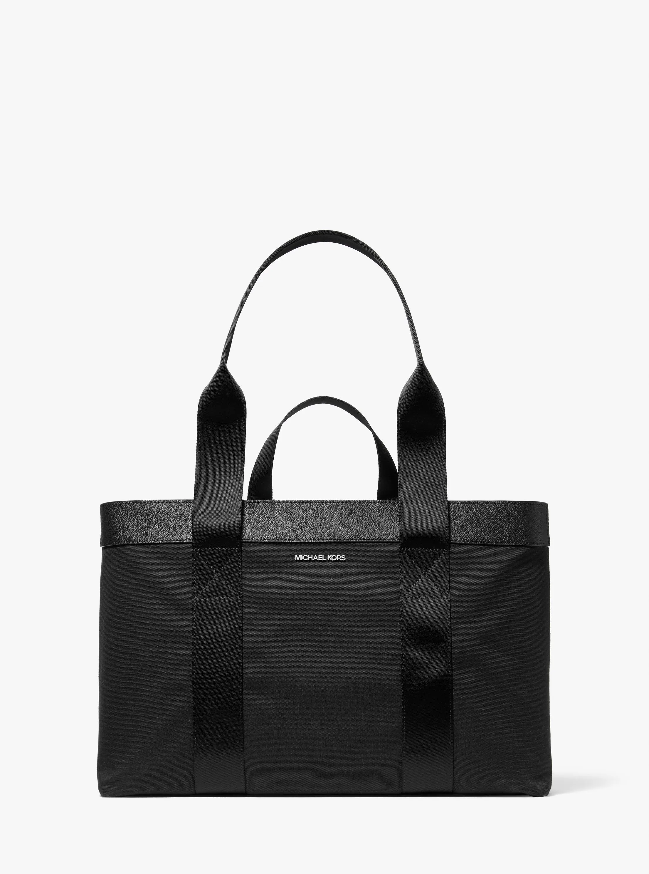 此款男士 Cooper 托特包,简约挺括包型,采用经典黑色材质打造包身,上缀小巧 MICHAEL KORS Logo 金属件,稳重大气。包内空间充裕,可以轻松容纳您的文件、笔记本等办公用品。设有长短不一的两条手提柄,随心切换携带方式,满足不同场合需求。不妨搭配本季新款休闲套装,打造干练潇洒通勤造型。