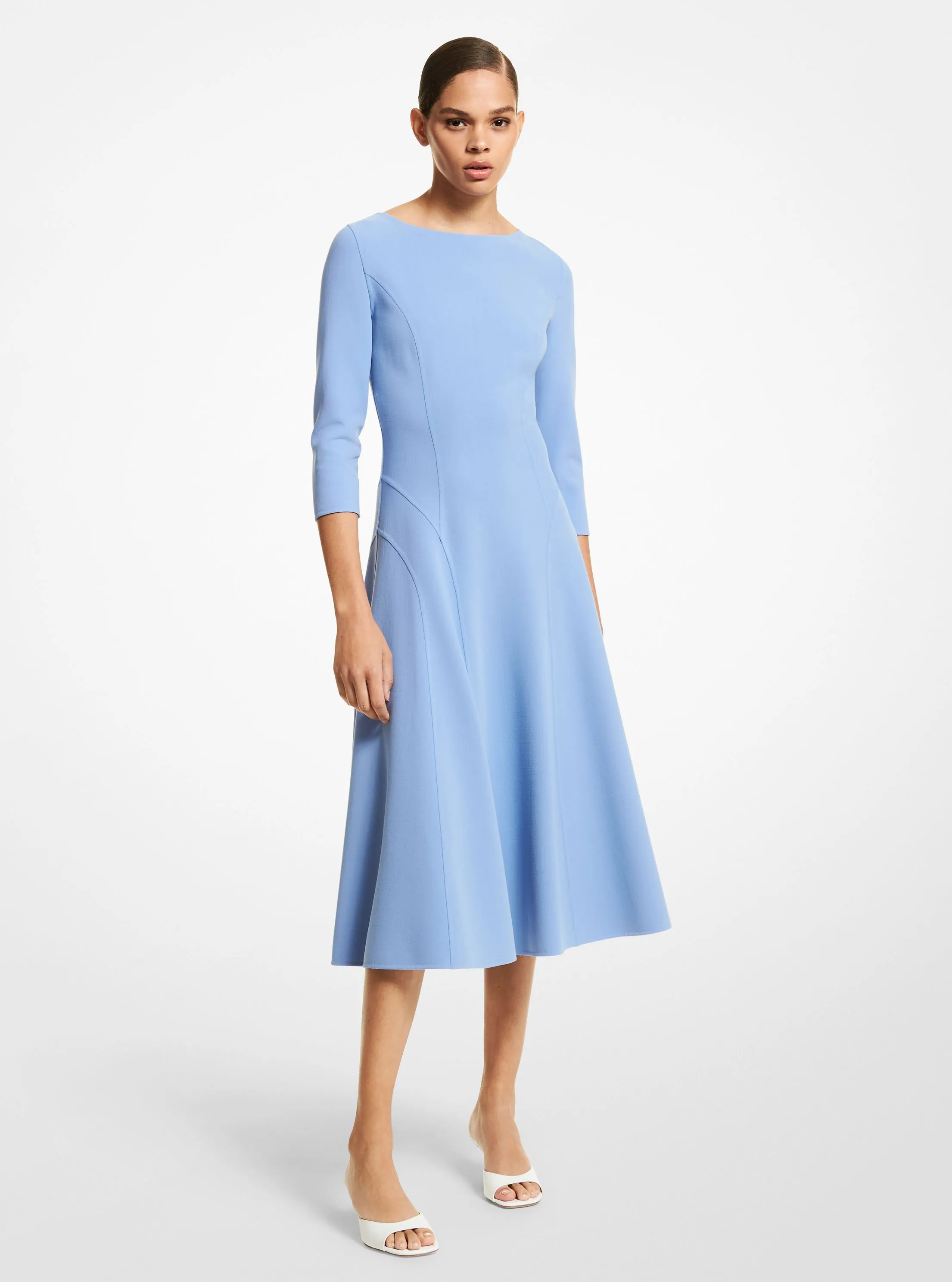 此款羊毛圆领连衣裙源自MICHAEL KORS COLLECTION,精致天蓝色羊毛面料打造衣身,无一丝多余缀饰,营造简约高级质感。中袖修身设计,展露您的曼妙身姿。不妨搭配本季新款高跟凉鞋,彰显优雅动人风情。