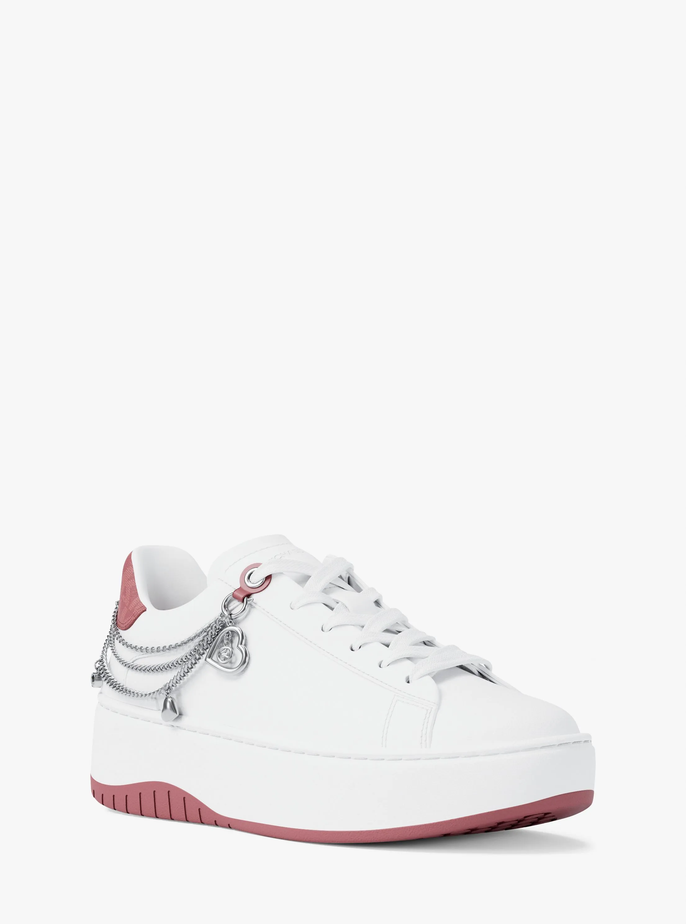此款女士 Dottie 系带休闲鞋,可以搭配多种风格服饰。采用白色材质打造鞋身,鞋尾玫红色材质拼接,鞋身上缀爱心金属链条挂饰,悠闲的系带单鞋魅力十足。加厚橡胶鞋底让你整日都有舒适的脚感。不妨搭配本季新款上衣和牛仔裤,扎起丸子头,呈现休闲时髦的假日状态。