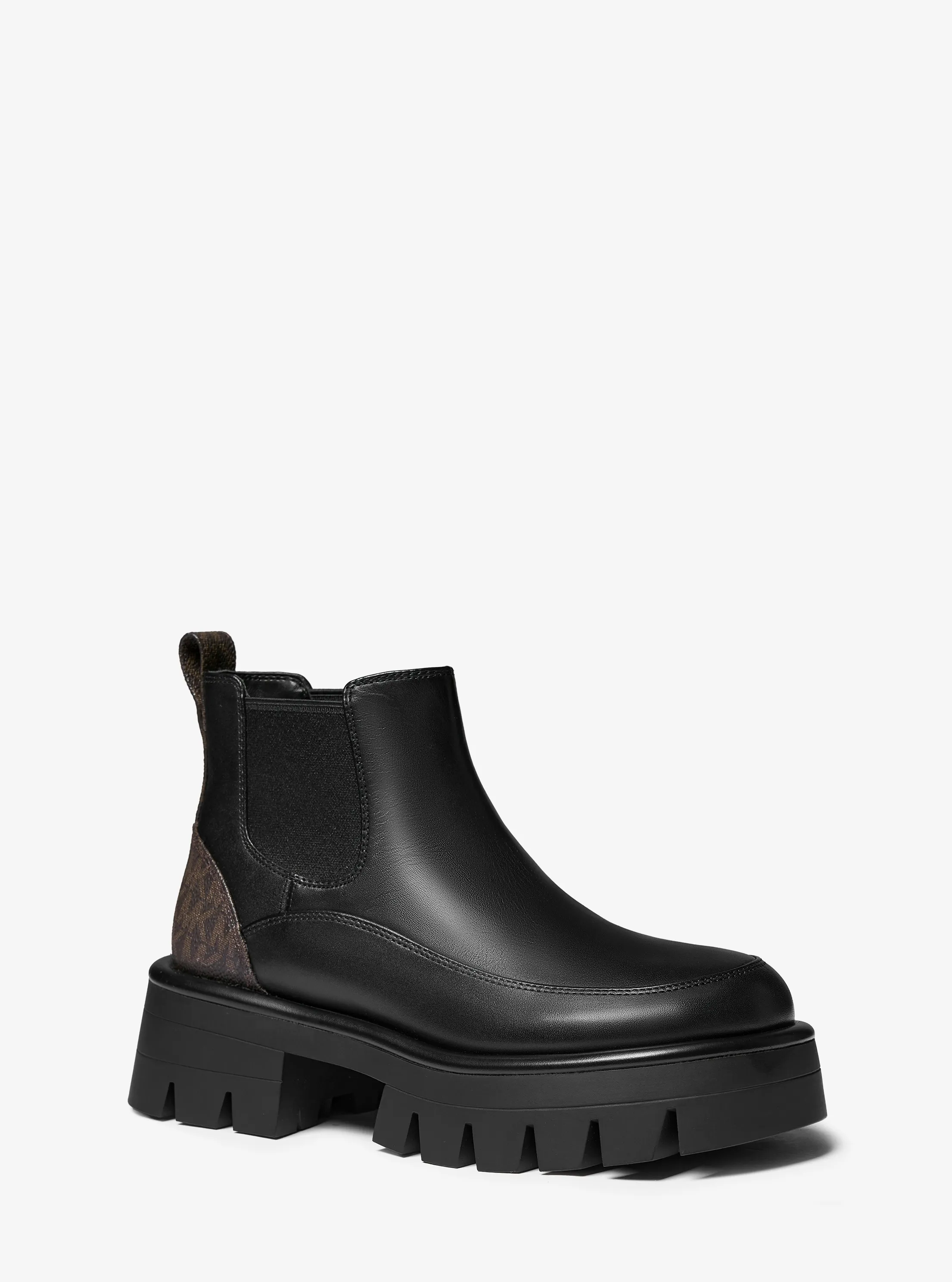 此款女士 厚底锯齿短靴,选用经典黑色材质打造一体式造型,鞋侧设有黑色松紧带,鞋跟深棕色品牌标志性 Logo 印花材质拼接,彰显潮流态度。厚底锯齿设计,修饰腿部线条的同时不失穿着舒适性。无论是搭配连衣裙或者是干练裤装,都相得益彰,是您秋冬造型的点睛之笔。