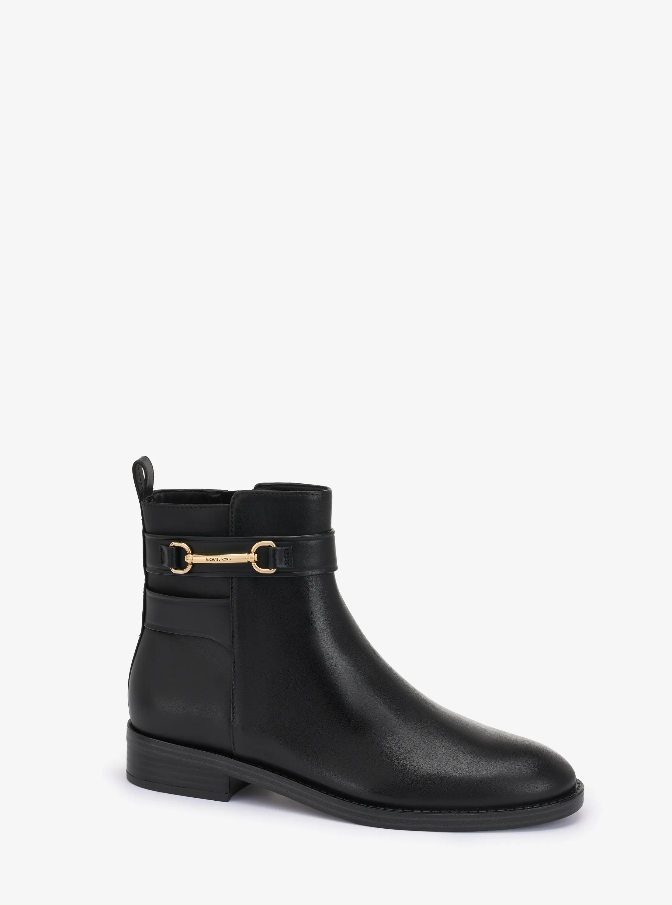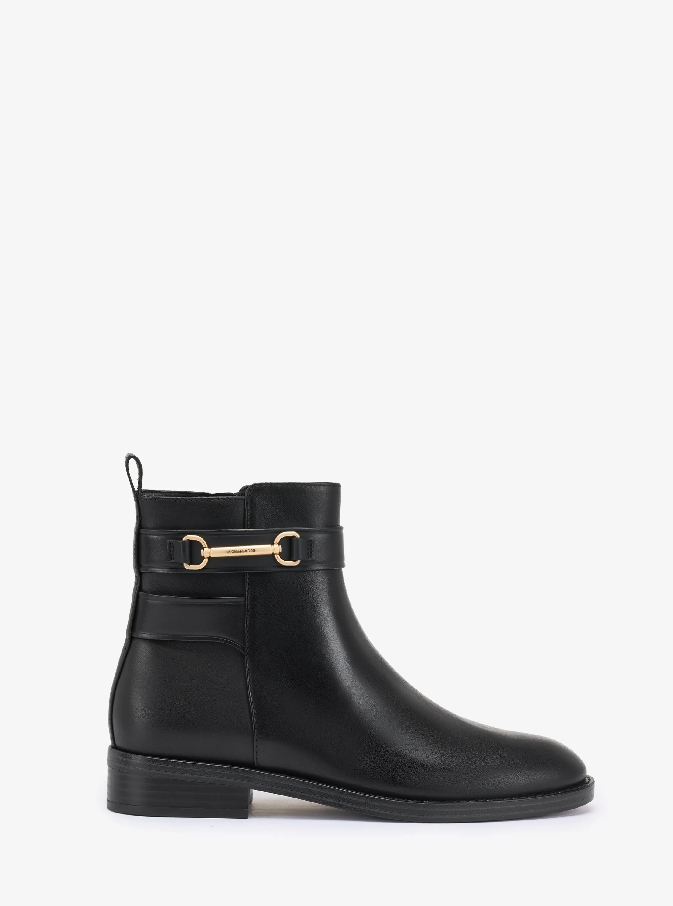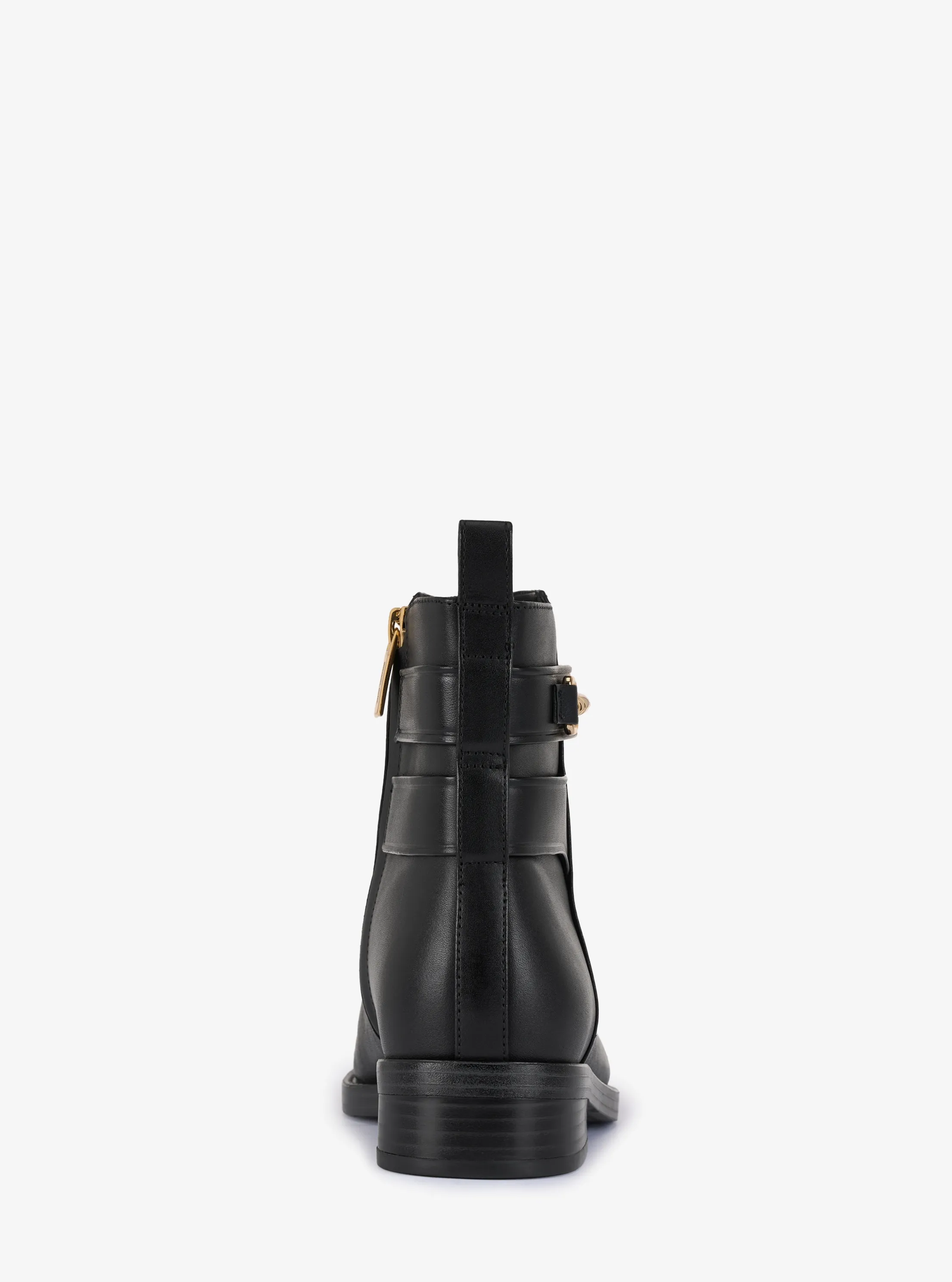 此款女士 Bootie 短靴,选用经典黑色材质打造,上缀金属搭扣袢带装饰,彰显潮流态度。平底设计,修饰腿部线条的同时不失穿着舒适性。无论是搭配连衣裙或者是干练裤装,都相得益彰,是您春秋造型的点睛之笔。