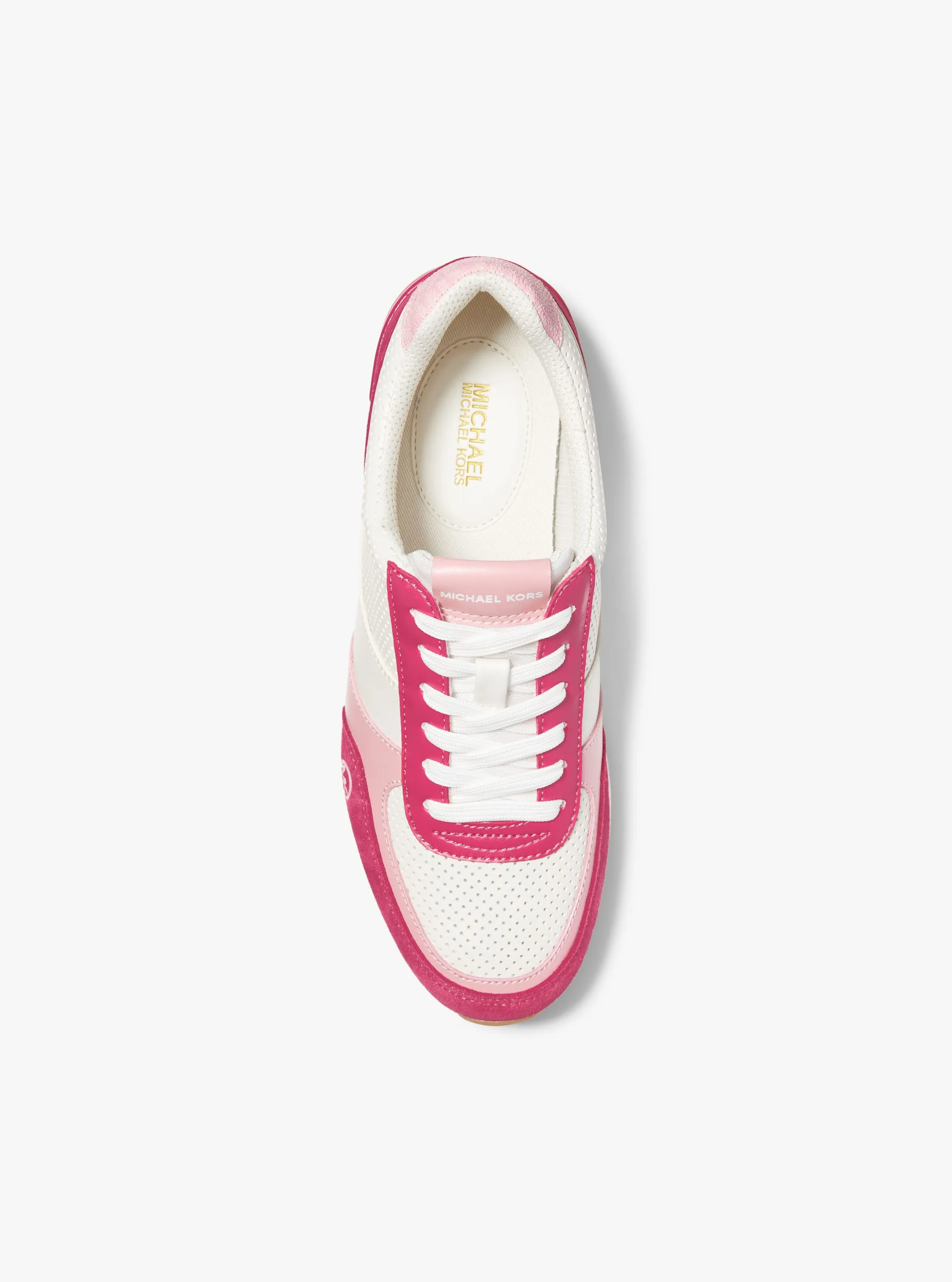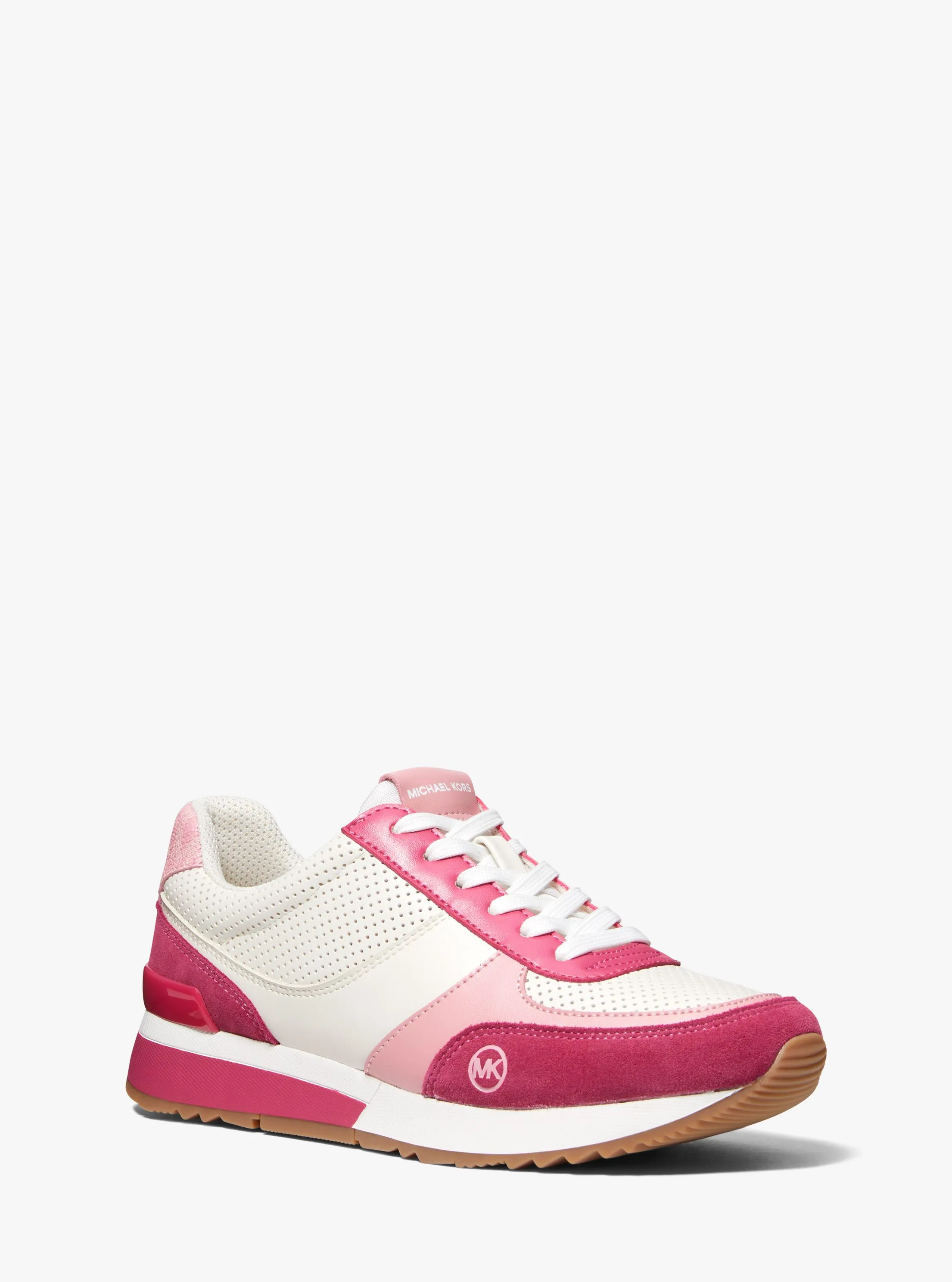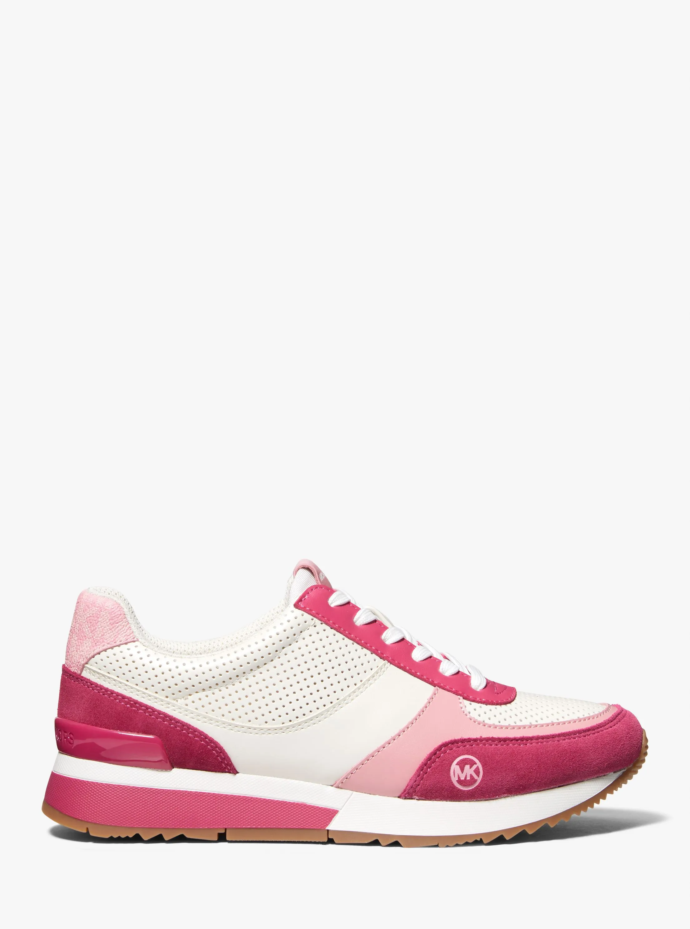 此款Andi 系带运动鞋,采用白色、洋红色和粉色等多色材质拼接打造,质感丰富,搭配造型时尚前卫的鞋底设计,诠释本季备受青睐的运动风尚。不妨搭配运动裤打造运动风装扮,亦可搭配印花连衣裙,彰显运动范的同时,融入柔美气质。
