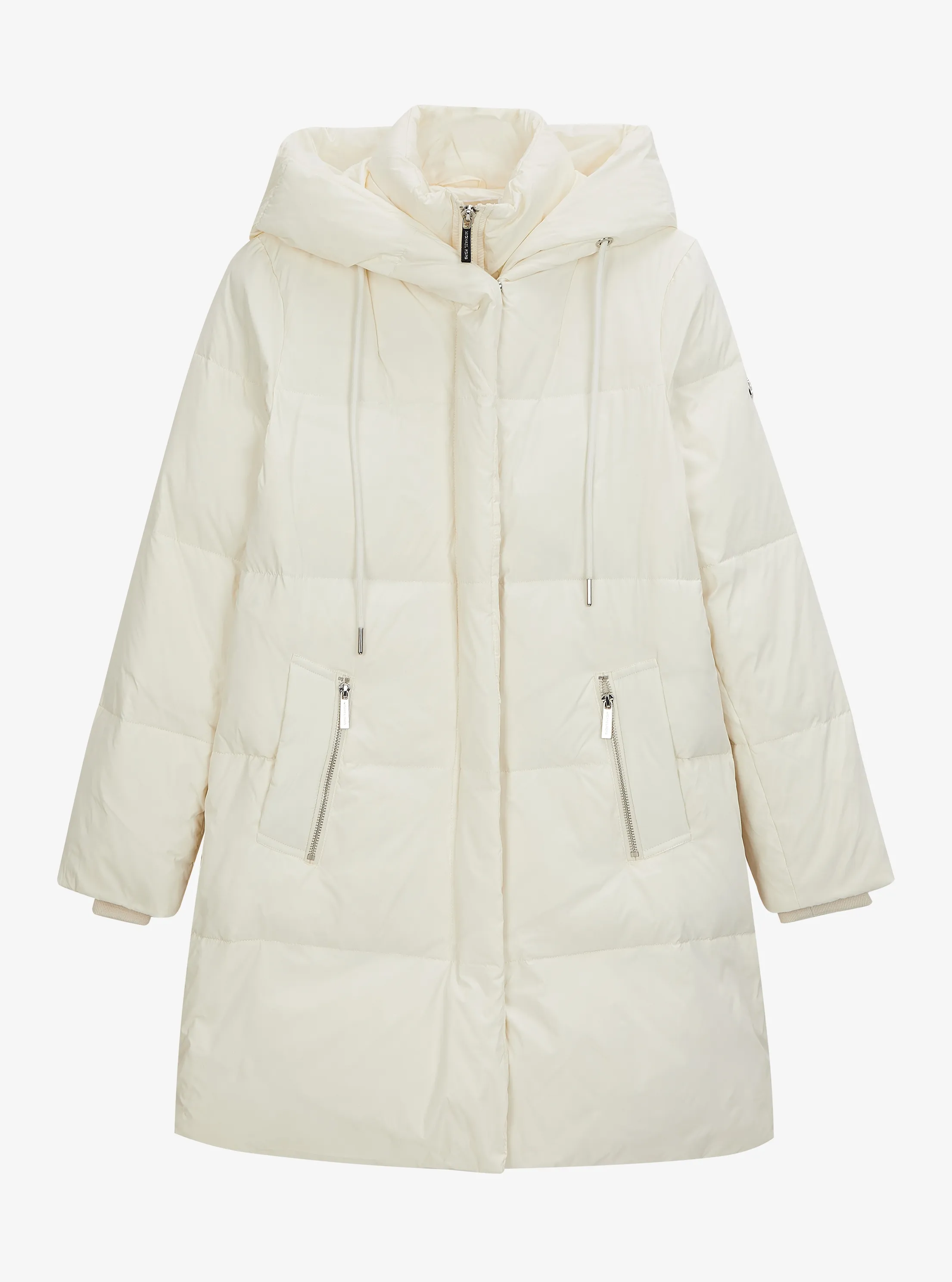 此款女士长款连帽棉服采用轻盈白色面料裁制,蓬松柔软,是您冬季衣橱不可缺少的基础单品。衣身设有拉链贴袋,连帽设计,增添单品实用性,是您冬季出行的上佳之选。一改冬装的厚重沉闷,演绎优雅别致。不妨搭配本季新款牛仔裤,打造休闲保暖造型。