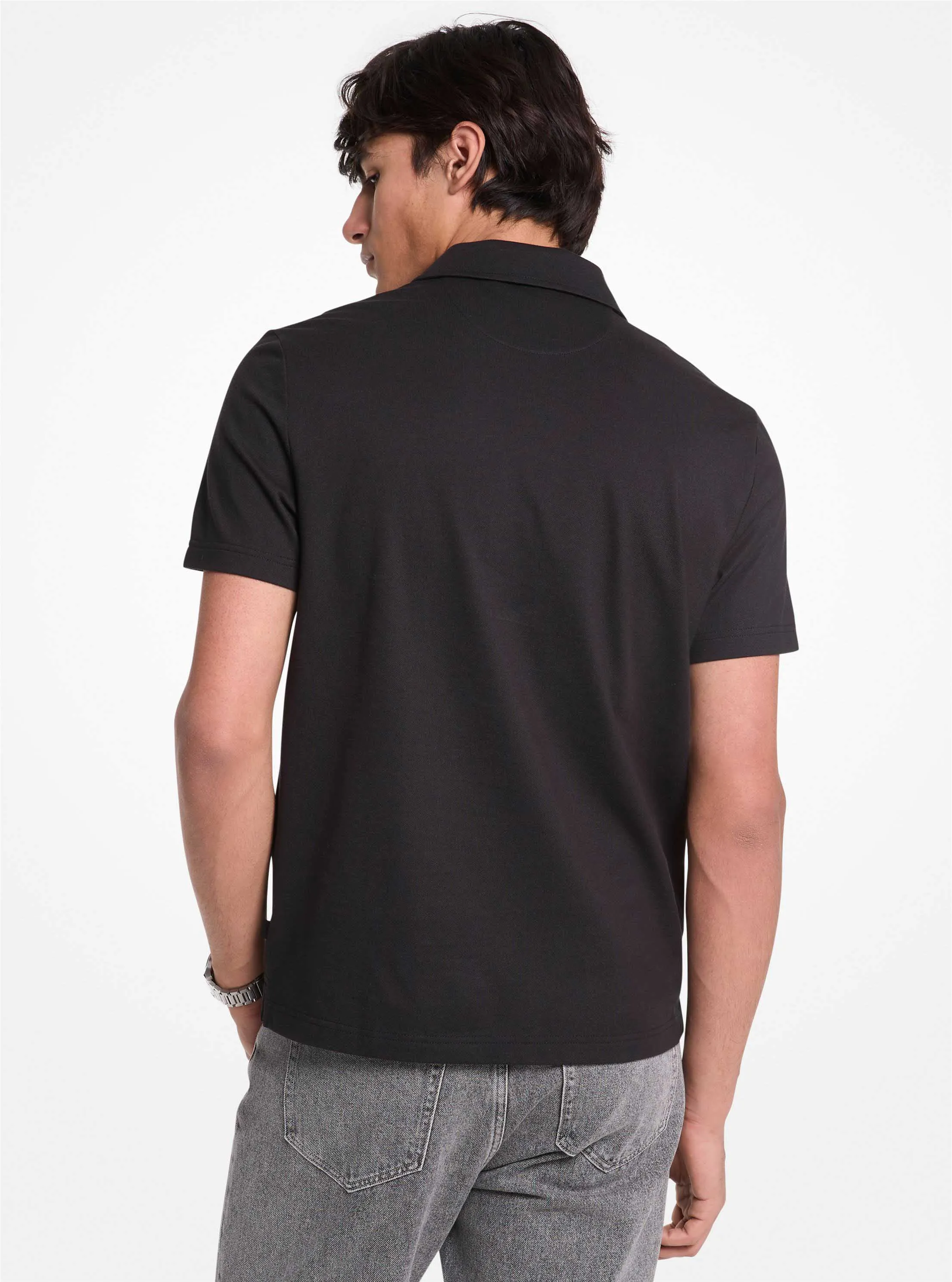 此款男士休闲拉链 Polo 衫,选用经典黑色面料打造经典 Polo 衫廓形,领部拉链设计,不经意间流露品牌质感。不妨搭配本季休闲长裤和公文包,打造夏季质感通勤造型。