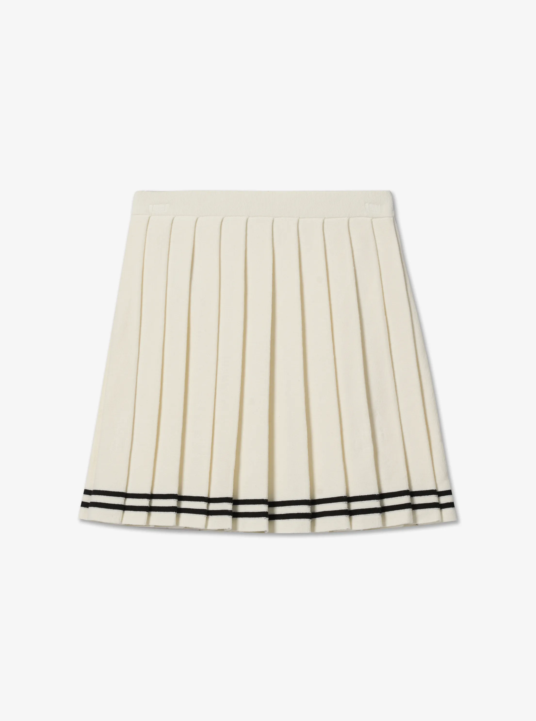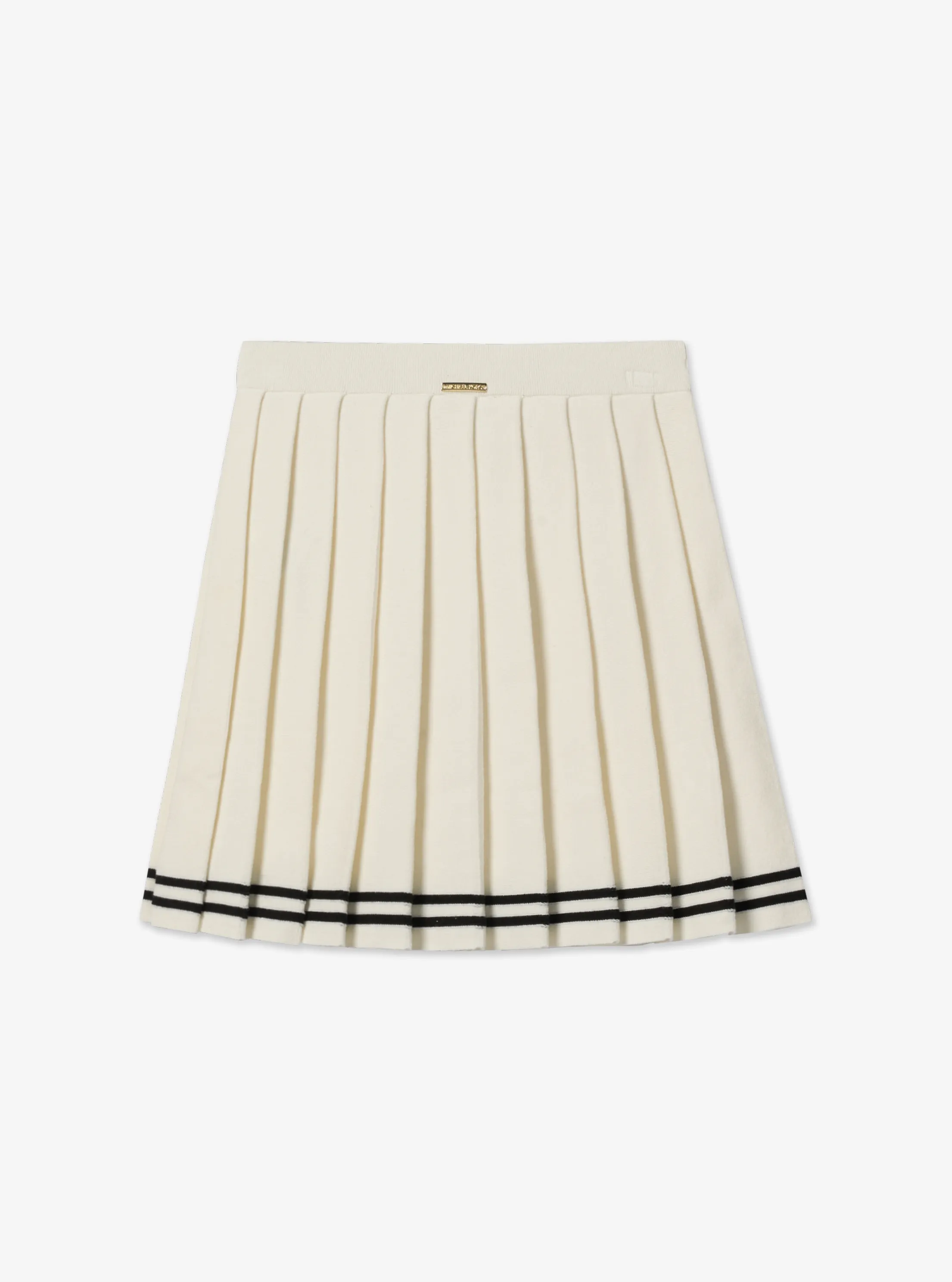 此款网球胶囊系列百褶半身裙,采用精美米白色材质打造简约廓形,考究针织工艺,颇具精致魅力。百褶裙摆俏丽灵动,上缀黑色双条纹装饰。不妨搭配本季新款 T恤,甜美减龄的同时,亲肤舒适度爆棚,尽享愉悦的假日时光。