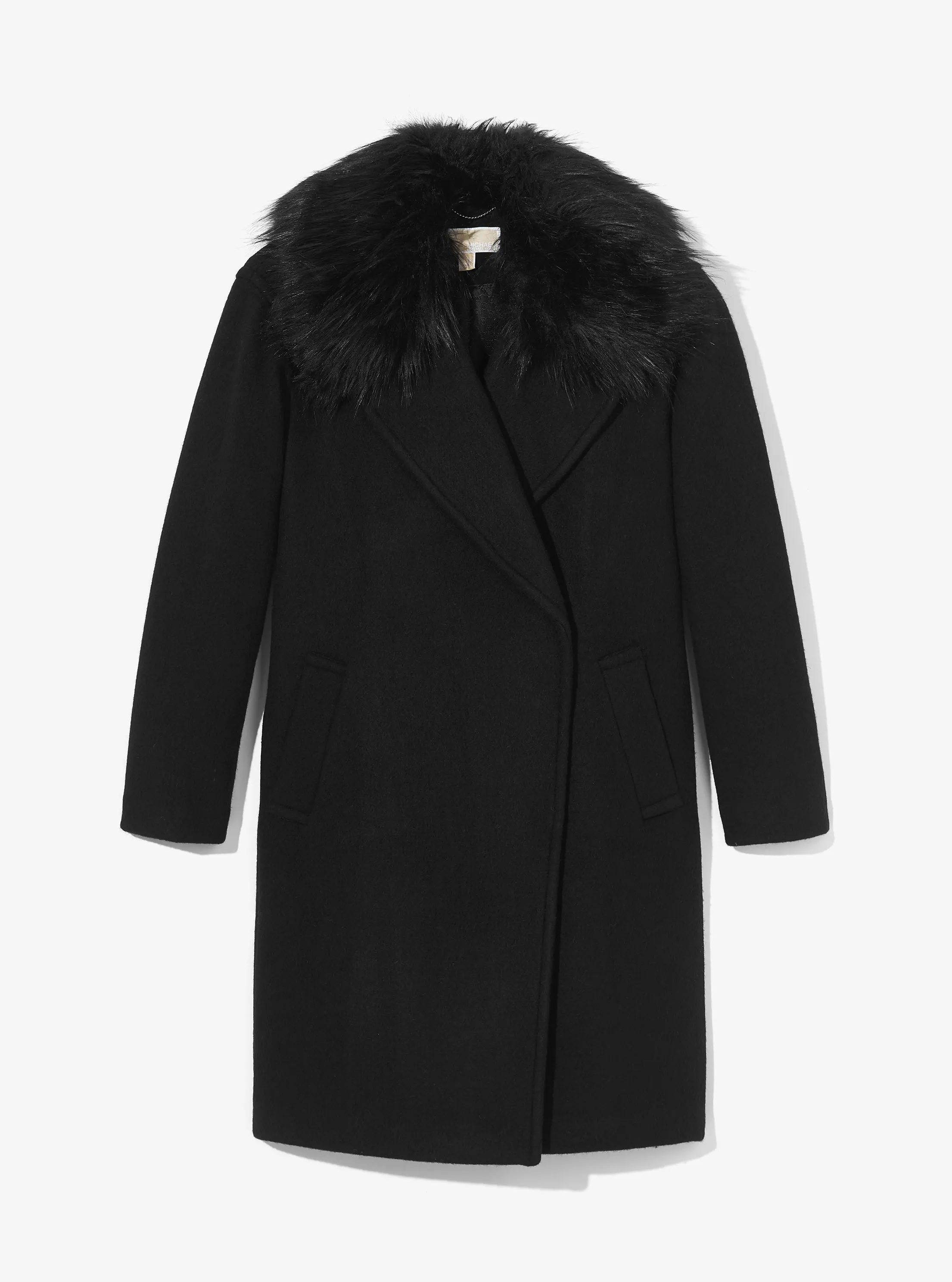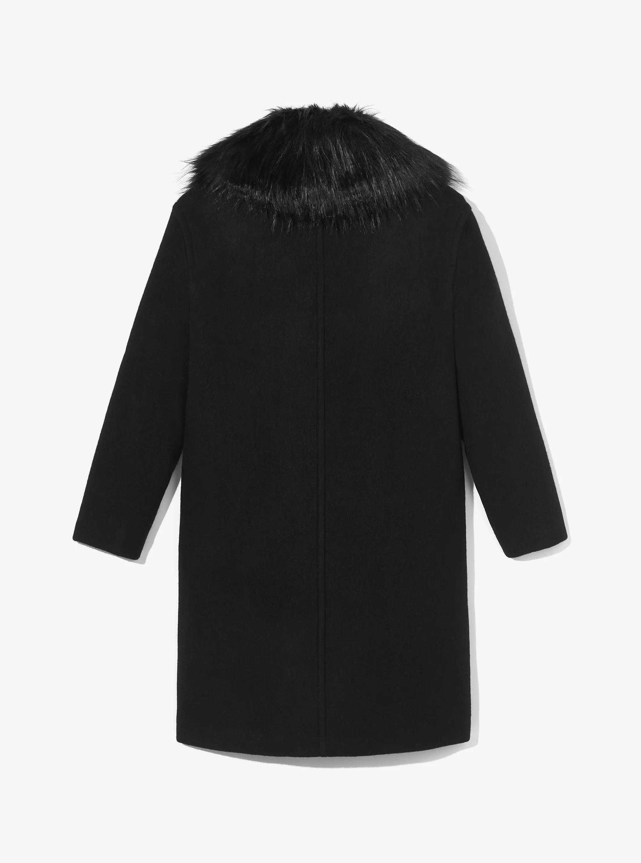 此款女士休闲羊毛大衣,采用经典纯黑色面料打造,配有奢华同色毛领,让您的秋冬造型焕然一新。长款宽松造型,防风的同时带来温暖的穿着体验。不妨搭配本季新款连衣裙和手袋,打造休闲质感通勤造型。