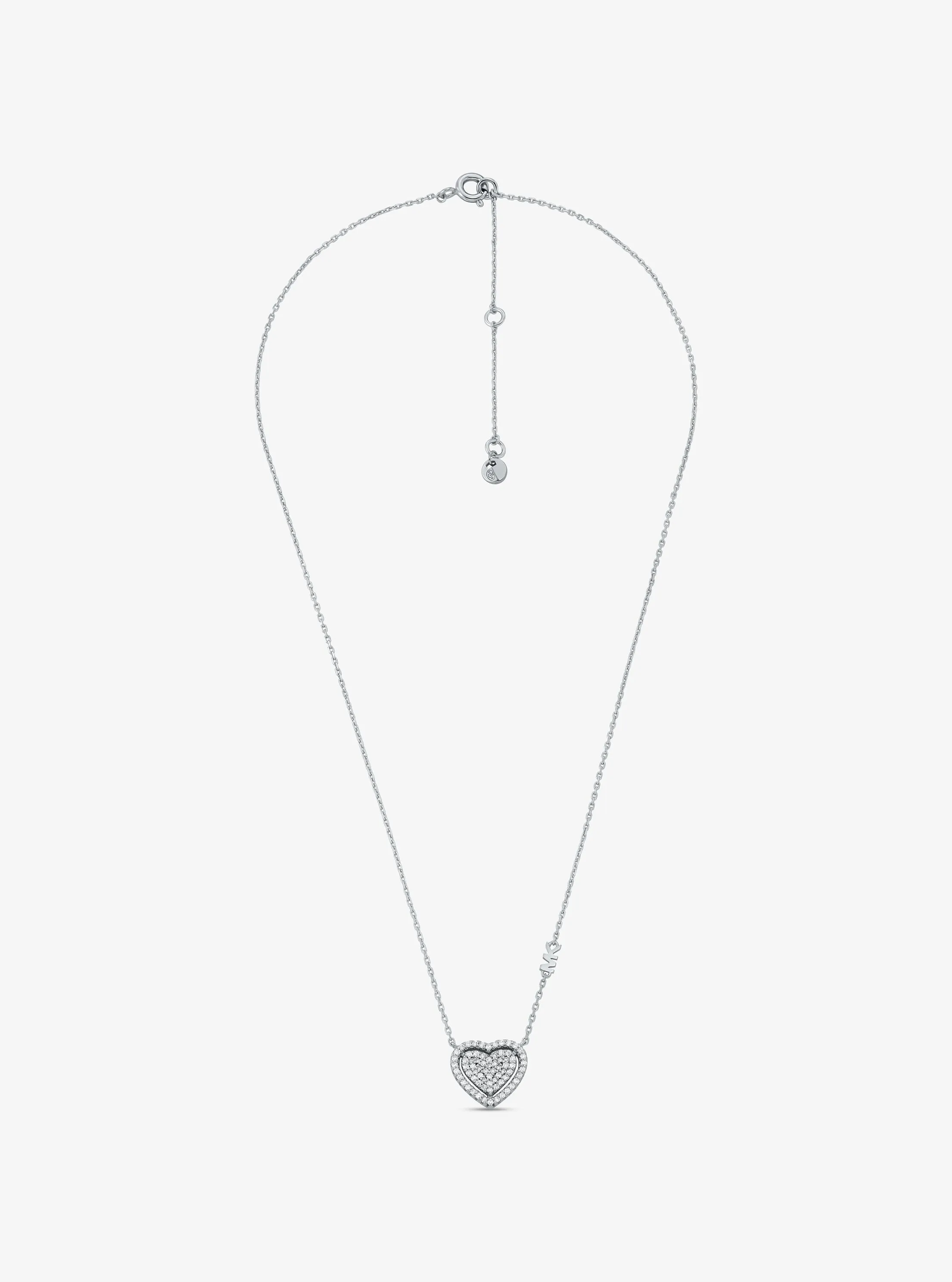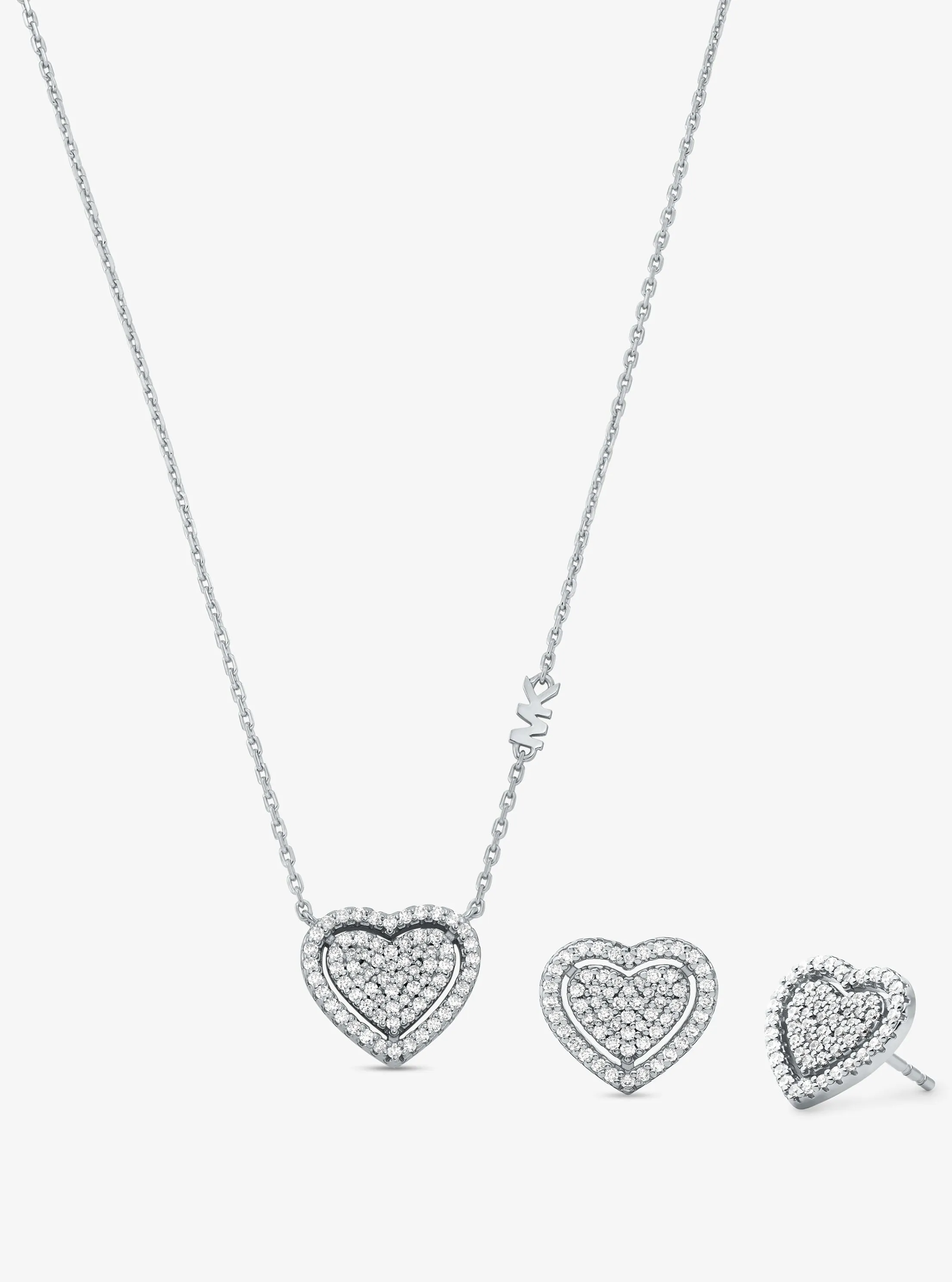 本季全新推出此款银色项链耳环套装,单品采用小巧精致的心形 MK Logo 坠饰,轮廓密镶钻饰,柔美轻盈,完美诠释奢华质感,为您颈间增添风采和个性。搭配同色系闪耀钻饰耳钉,无论是出席派对或是日常通勤,不妨搭配简约套装或是优雅连衣裙,彰显迷人气质。