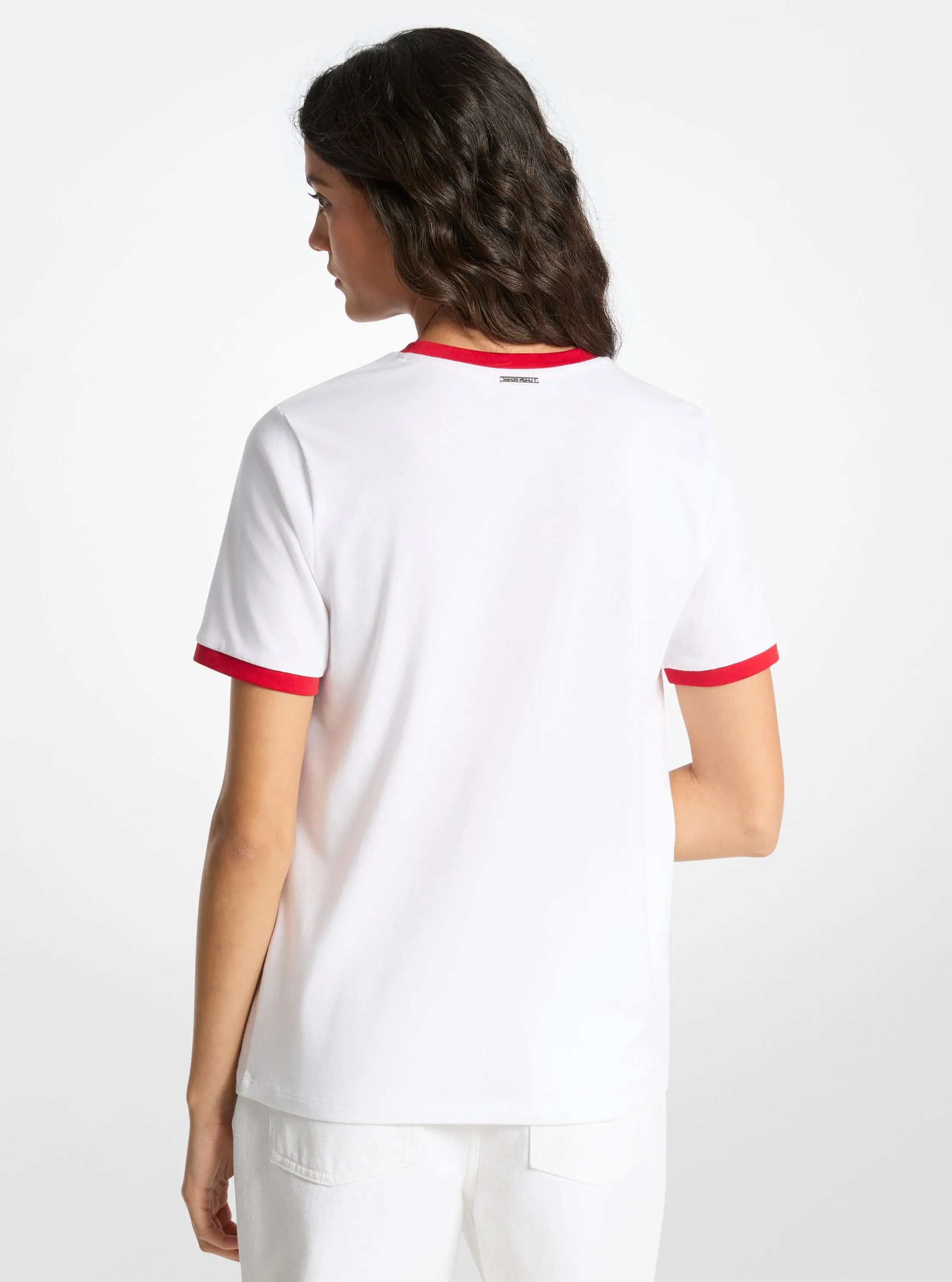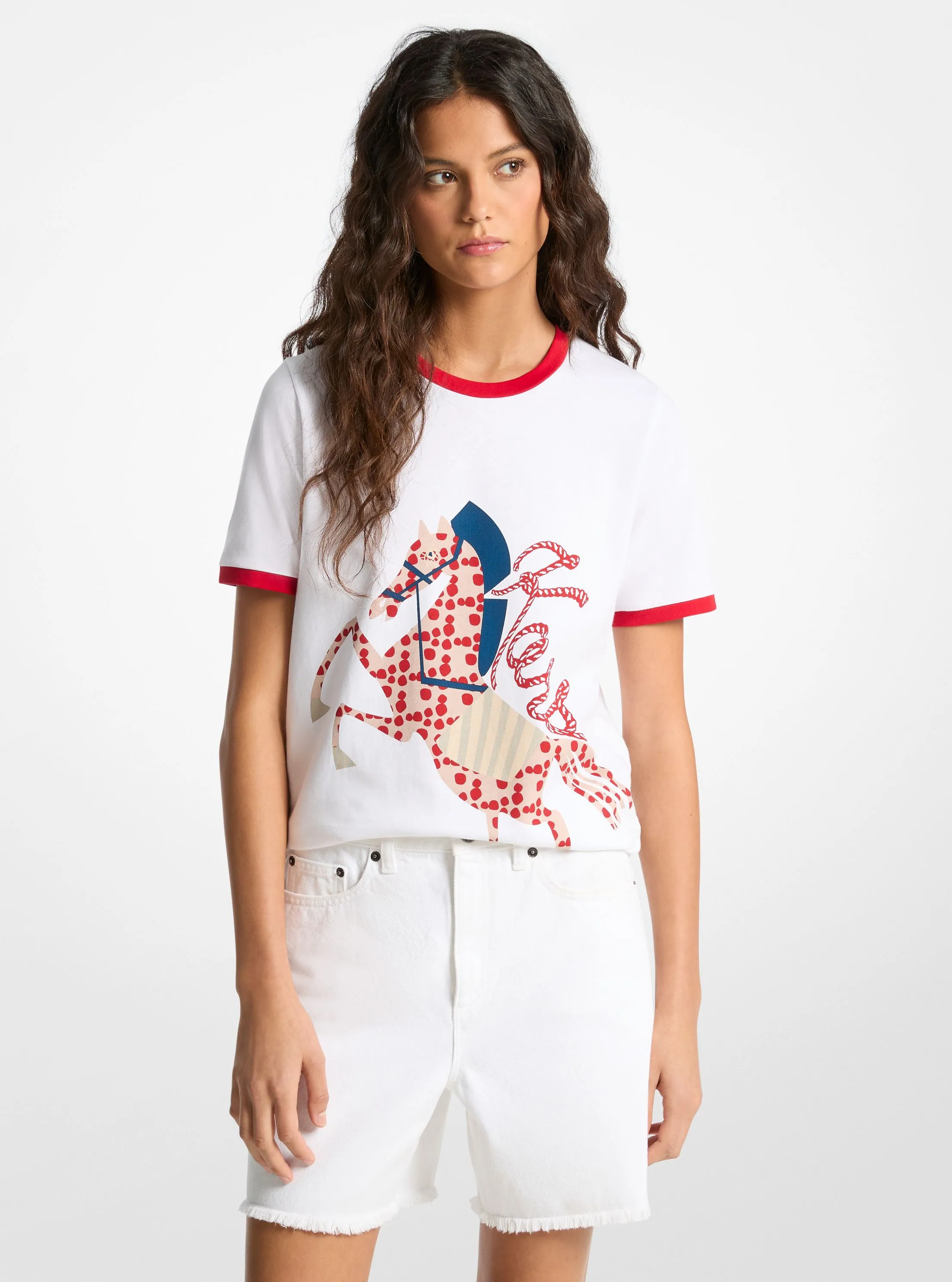 此款棉质印花圆领短袖T恤,简约廓形。精选亲肤舒适的白色面料打造,上缀马年图案装饰。休闲短袖圆领剪裁,领口和袖口采用红色饰边点缀,彰显品牌质感,是您夏日衣橱中不可或缺的基础单品。不妨搭配本季新款运动鞋,尽情享受假日时光。