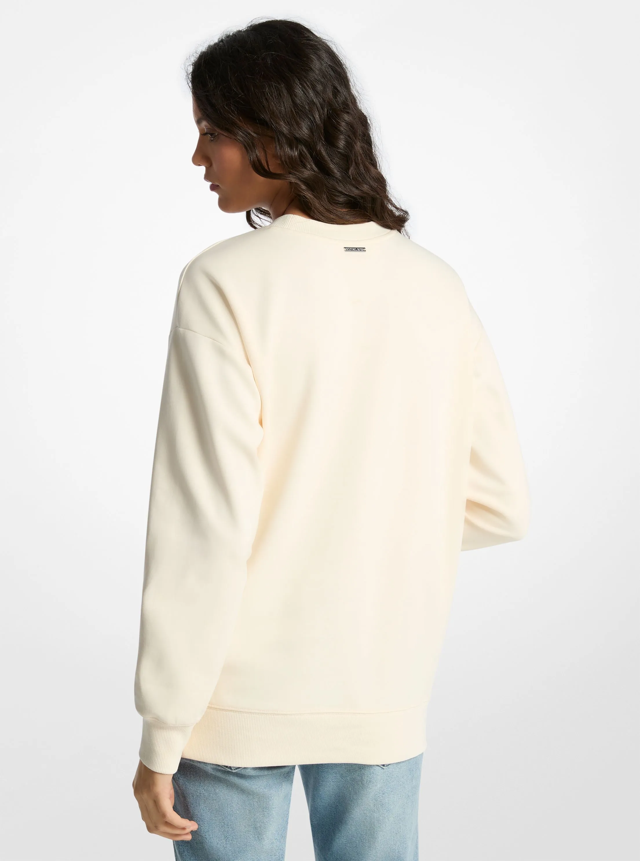 此款贴布绣圆领套头上衣,采用米黄色材质打造运动风衣身,衣身上缀同色系KORS和马年图案贴布装饰,增添单品休闲感和个性风范。不妨搭配本季新款运动裤和运动鞋,短暂逃离朝九晚五的桎梏,带着一身舒适的行头出游,享受轻松愉悦的假日时光。