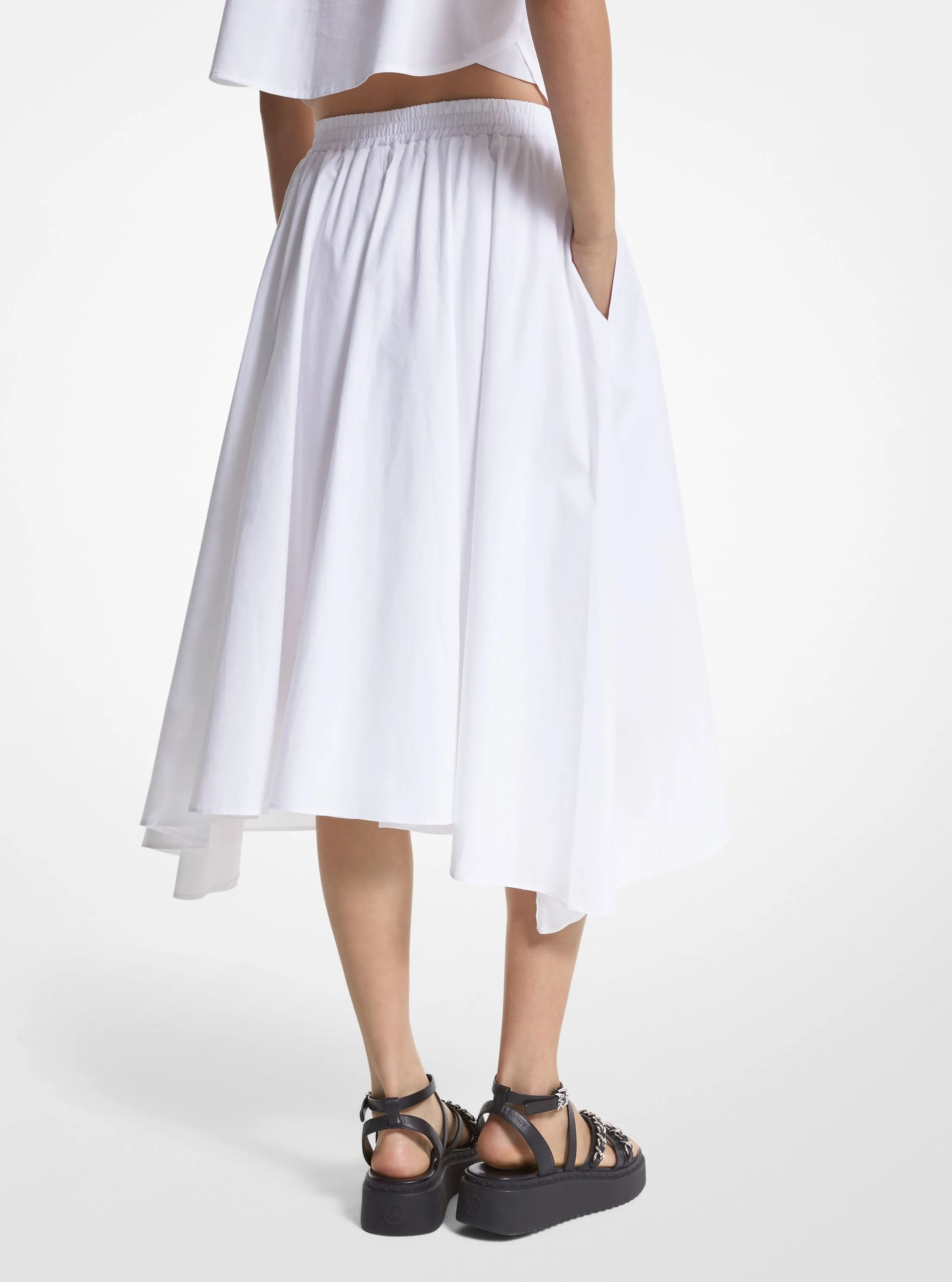 此款休闲宽松半身裙,采用纯净白色精致面料打造而成,长款设计,不规则造型轻盈下摆,增添优雅随性气息。不妨搭配同系列上衣,短暂逃离朝九晚五的桎梏,带着一身优雅的行头,享受轻松愉悦的假日时光。