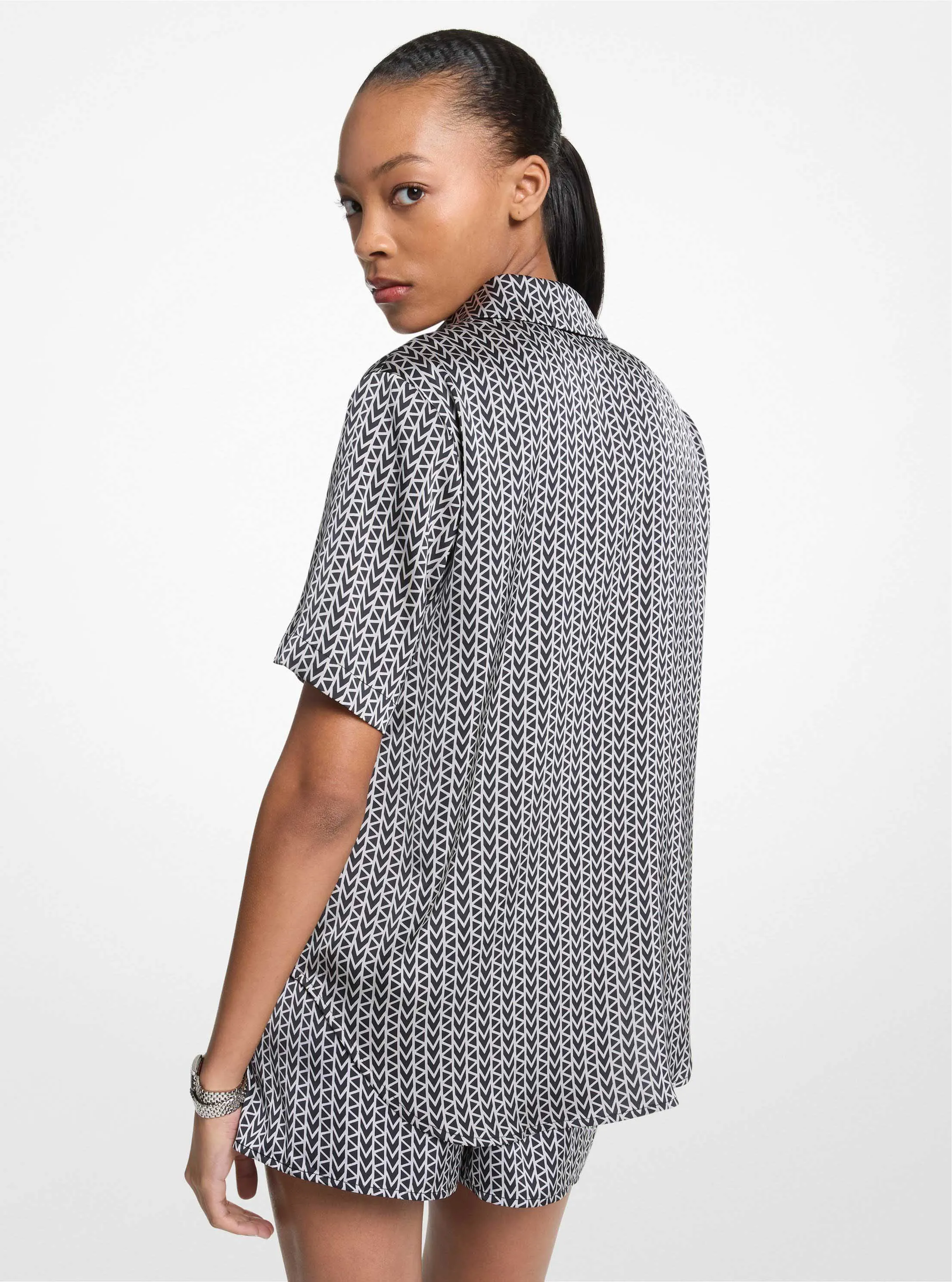 此款女士缎面休闲衬衫,休闲而不失实用性。采用镍灰和黑色几何图案印花面料打造短袖衬衫廓形,细节处彰显品牌质感。日常通勤时,不妨穿上它,搭配本季同系列短裤和新款手袋,打造优雅魅力造型。